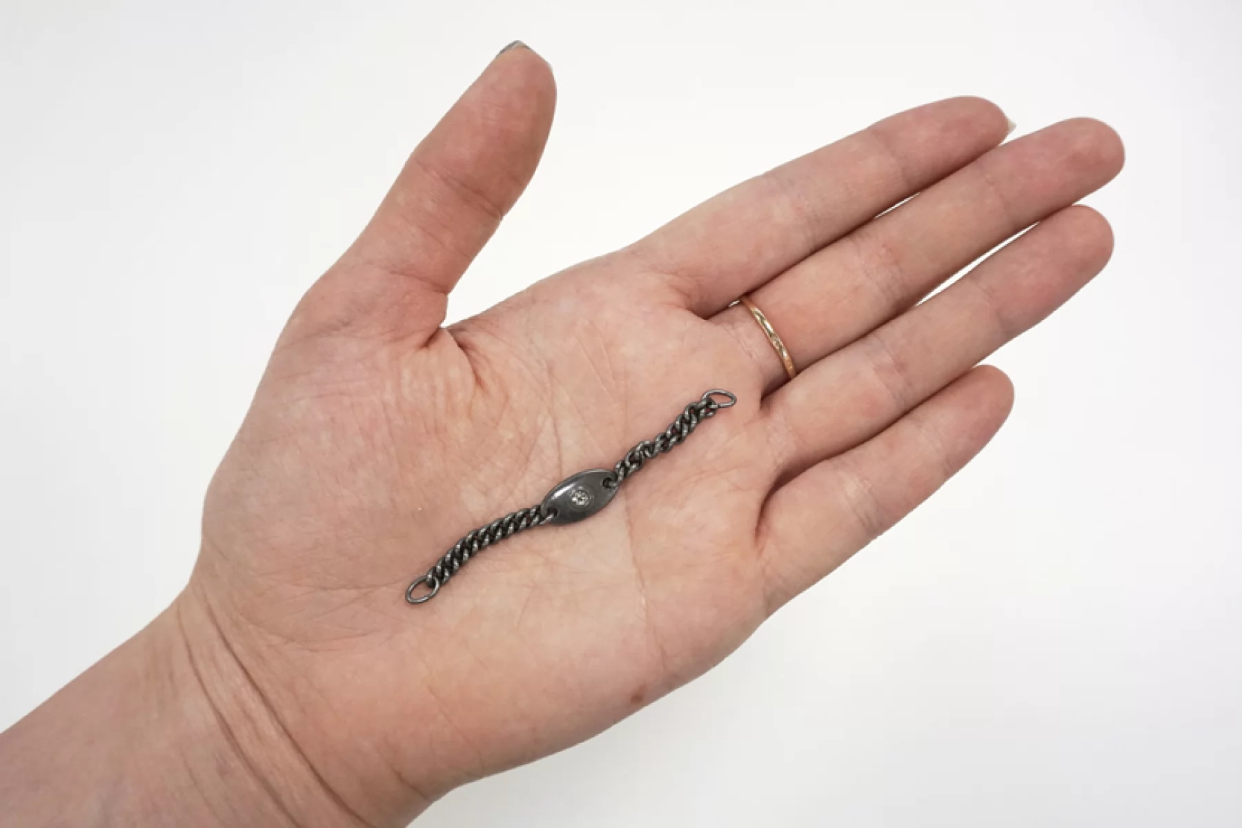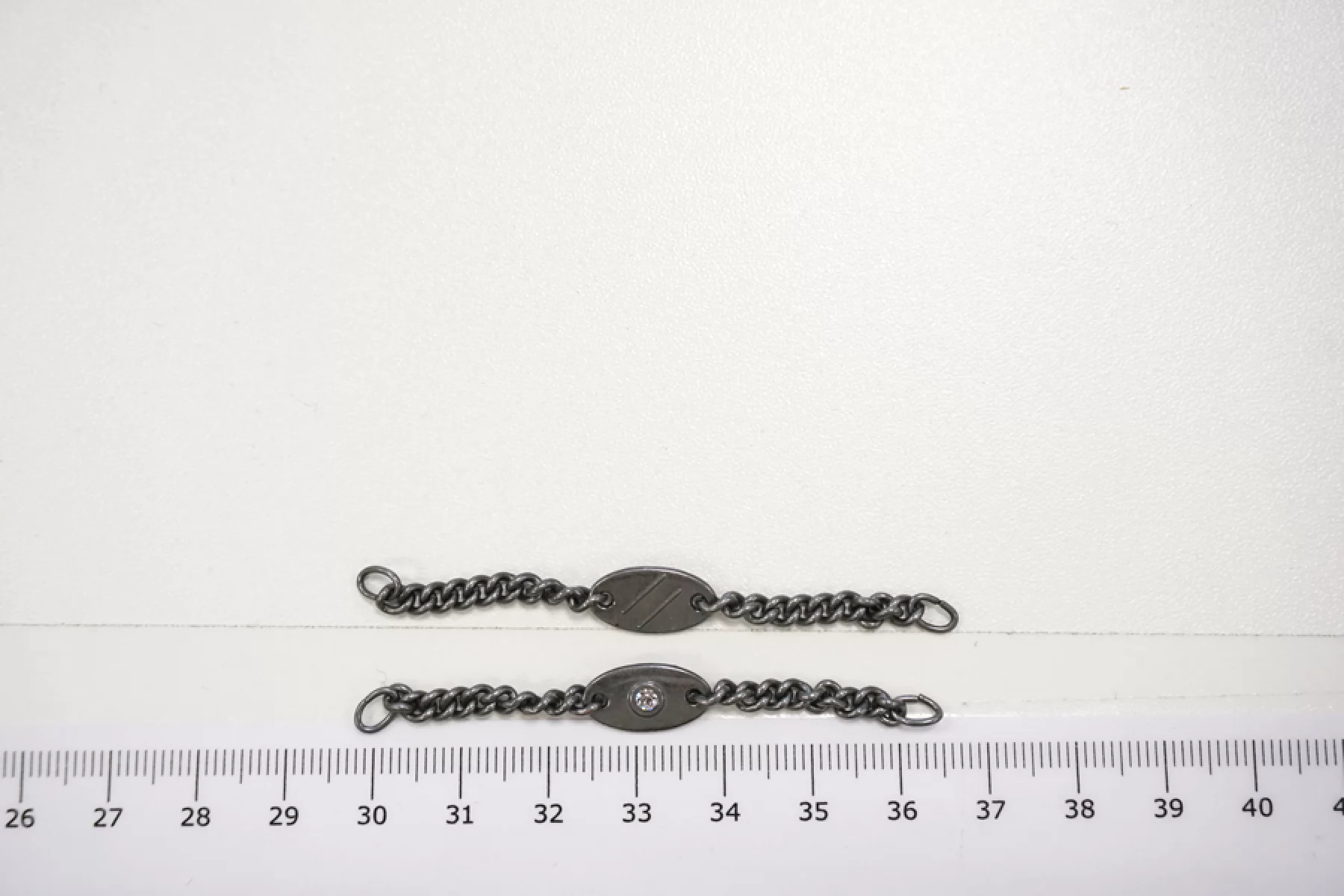 Пришивная вешалка-цепочка из серебристого металла, со стразой. Длина цепочки - 6,5 см. Предназначена для хранения курток, пальто, тренчей и другой верхней одежды на крючках.