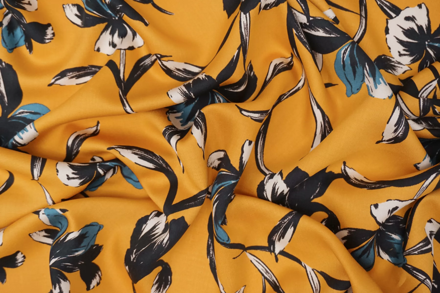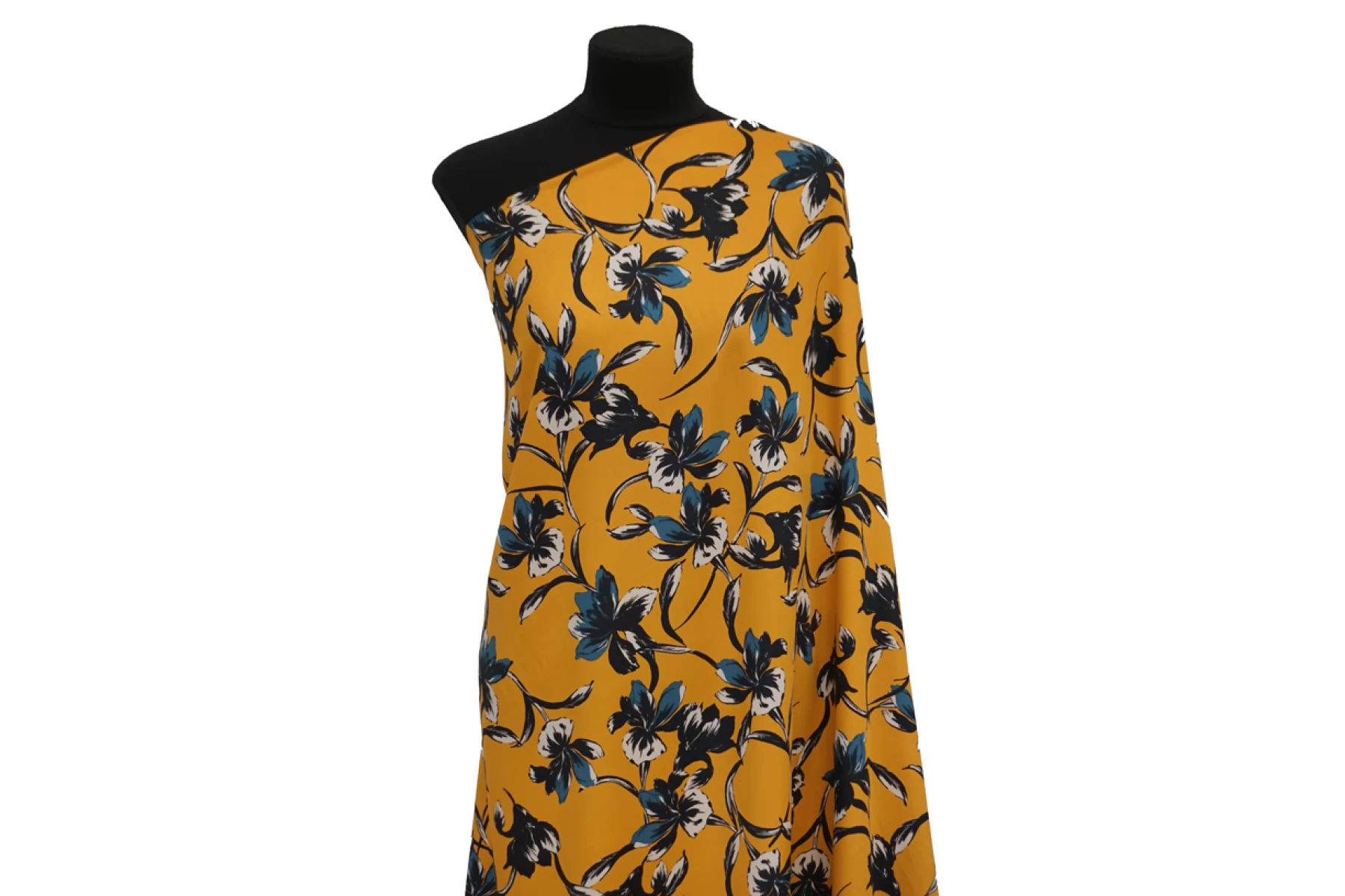 Вискоза блузочная сатиновая Цветы на желтом FRM H21/2 H30 27032314