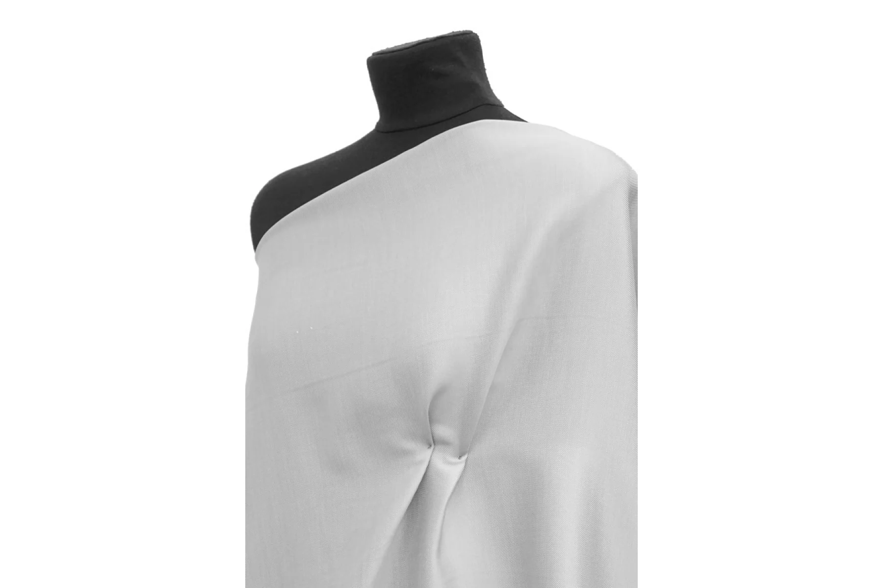 Внимание!! По всей ткани, от кромки , встречаются стрелочки, длинной от 5 до 15 см. При покрое можно обойти! Костюмно-плательная вискоза двустороння, с ацетатом, диагонального плетения, одна сторона серебряного оттенка., вторая сторона - белого. Обе стороны рабочие. Тактильно приятная, мягкая, гладкая, блестящая. Не тянется, не просвечивает. Плотная, тяжеленькая. Красиво смотрится в складках, форму не держит. Немного мнется, частично восстанавливается. Шьем платья, костюмы, юбки. Обязательно учитывайте усадку 5-10%.