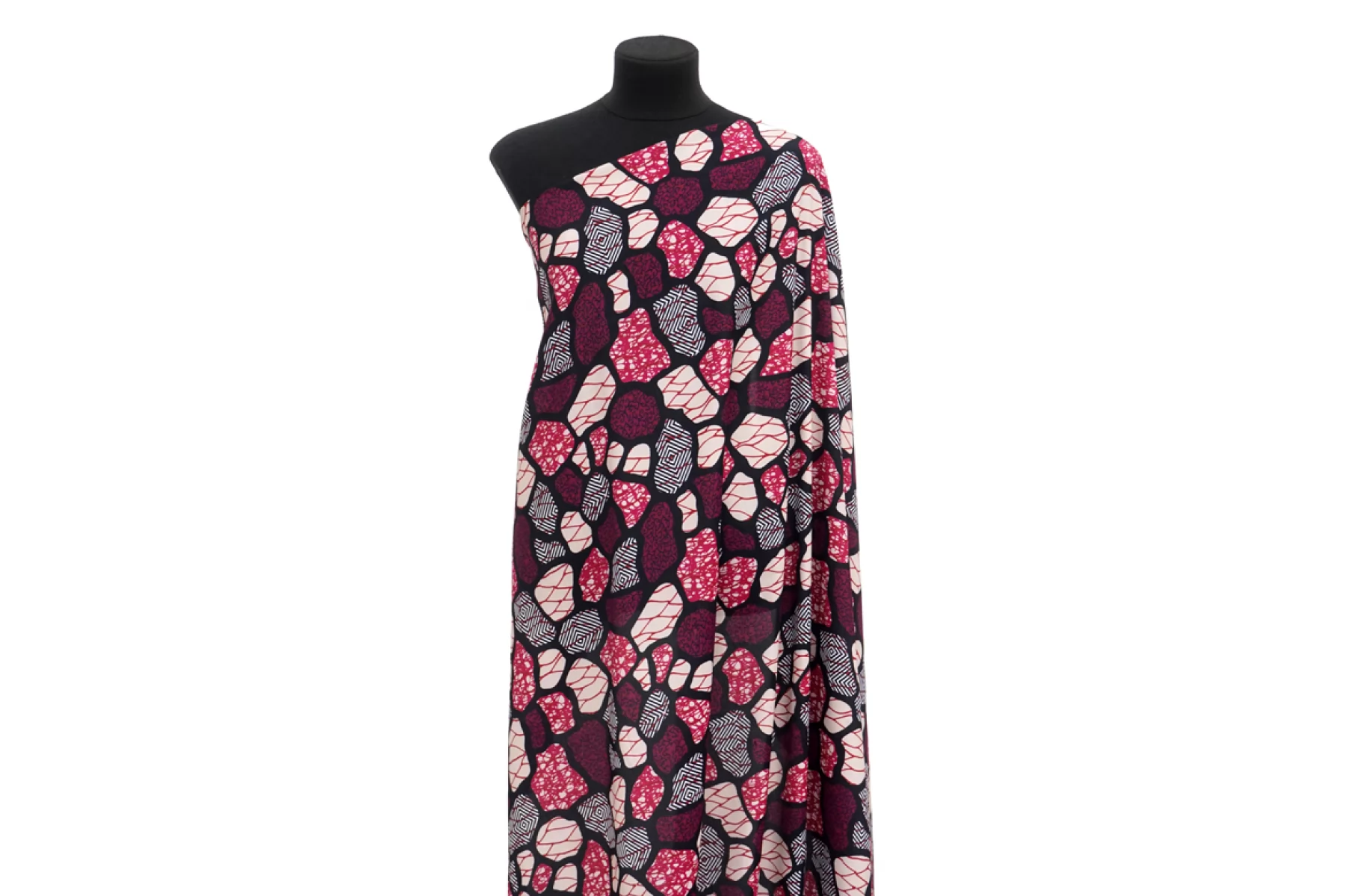 Прекрасная креповая вискоза с абстрактным принтом в черно-розовой цветовой гамме. Материал тактильно мягкий и приятный, слегка шероховатый. Обладает пластикой как у органзы с округлой складкой. Тонкий, не мнется. Просвечивает силуэт. Не тянется. Немного держит форму. Шьем платье, блузку или юбку. При необходимости используйте подкладочный материал. Обязательно учитывайте усадку 5-10%.
