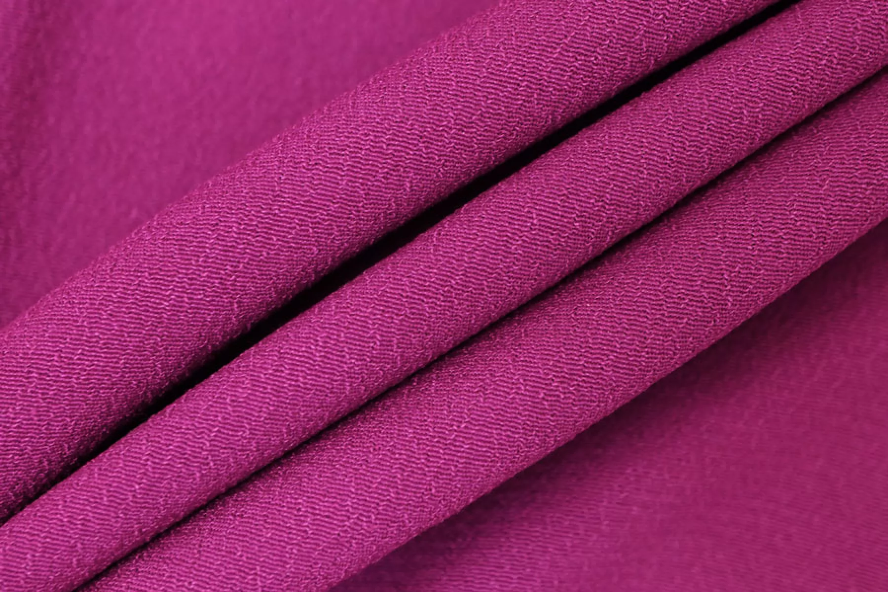 Внимание! Рабочая ширина ткани 115 см! Надорванная кромка, не вхоит в указанную ширину! Шикарная креповая вискоза в оттенке фуксия. Приятная и шероховатая наощупь. Тонкая, пластичная, красиво драпируется, форму не держит. Немного просвечивает силуэт. Тянется. Не мнется. Отличный вариант на платья, юбки, блузки. Учитывайте возможную усадку.