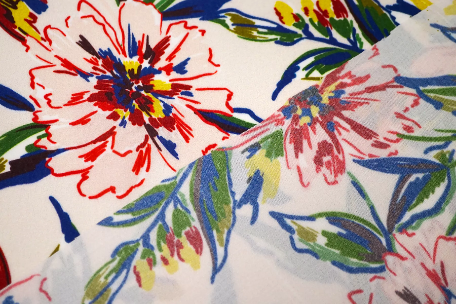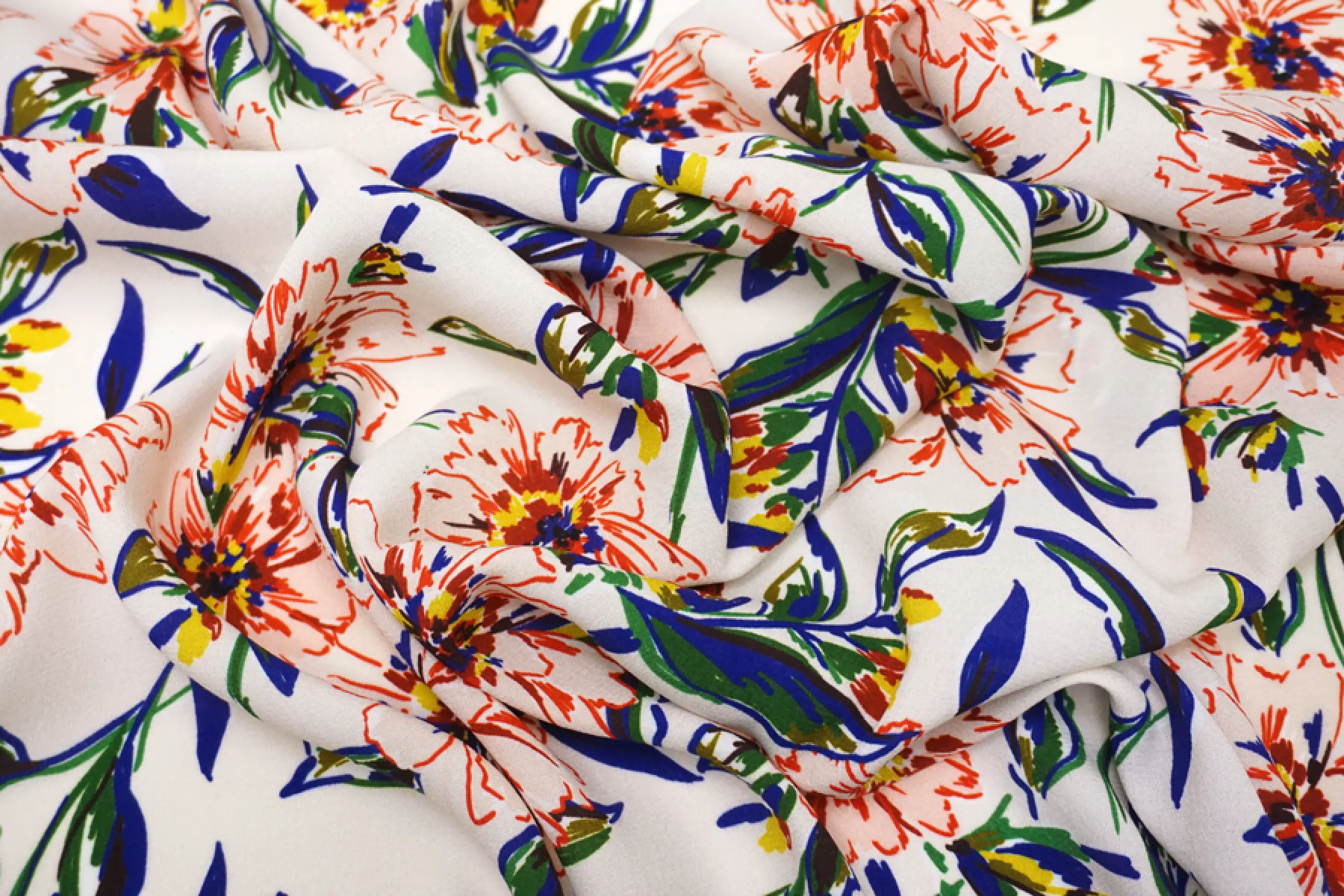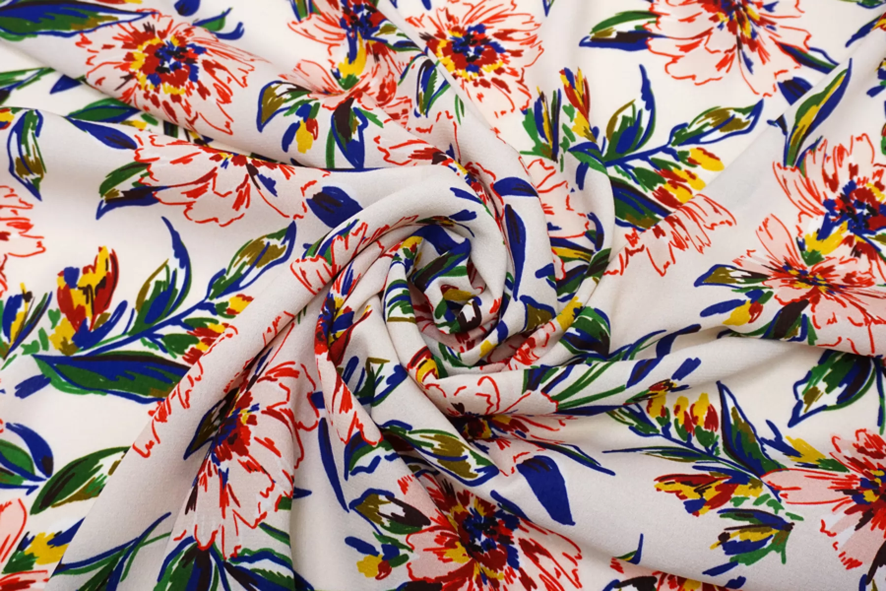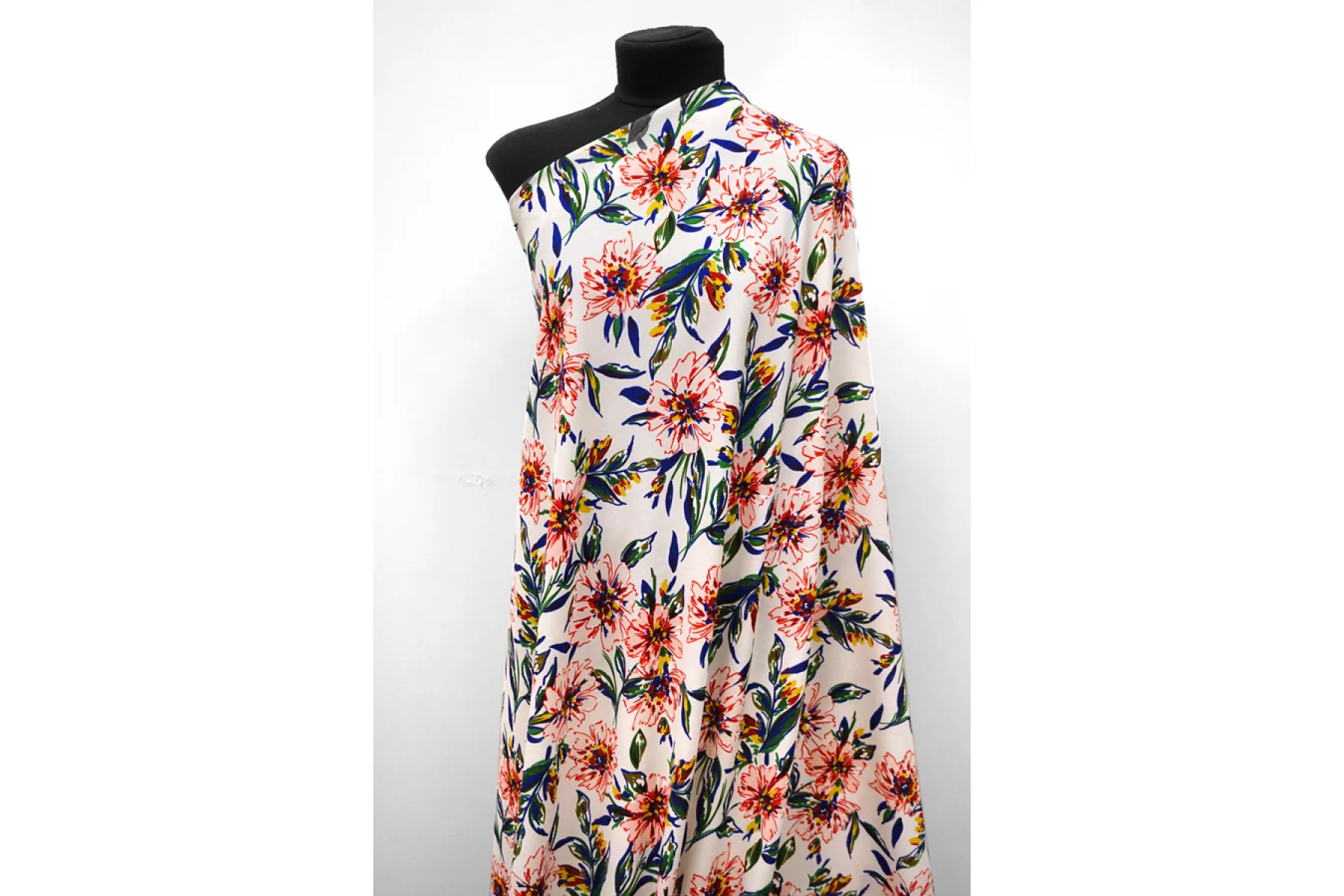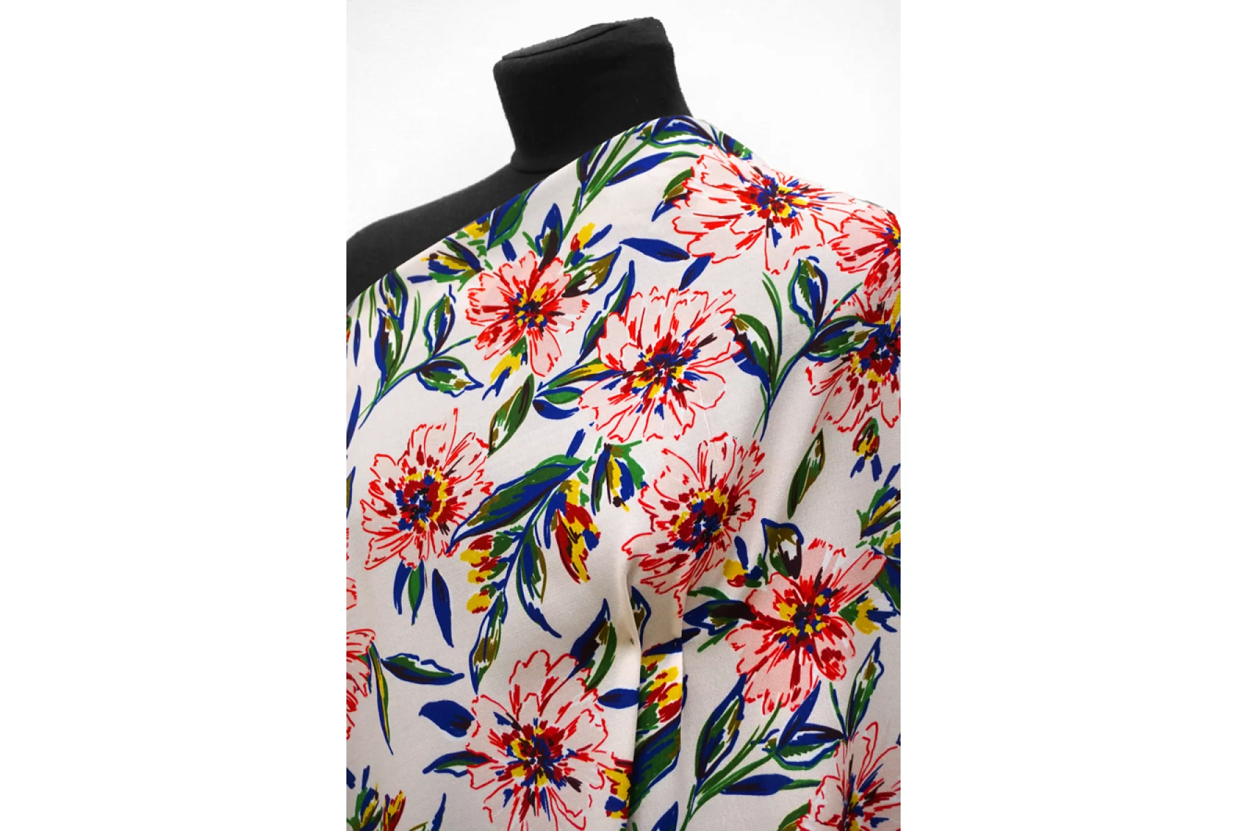 Вискоза креповая плательная Цветы на бежевато-белом KZ H21/6 H50 18022598