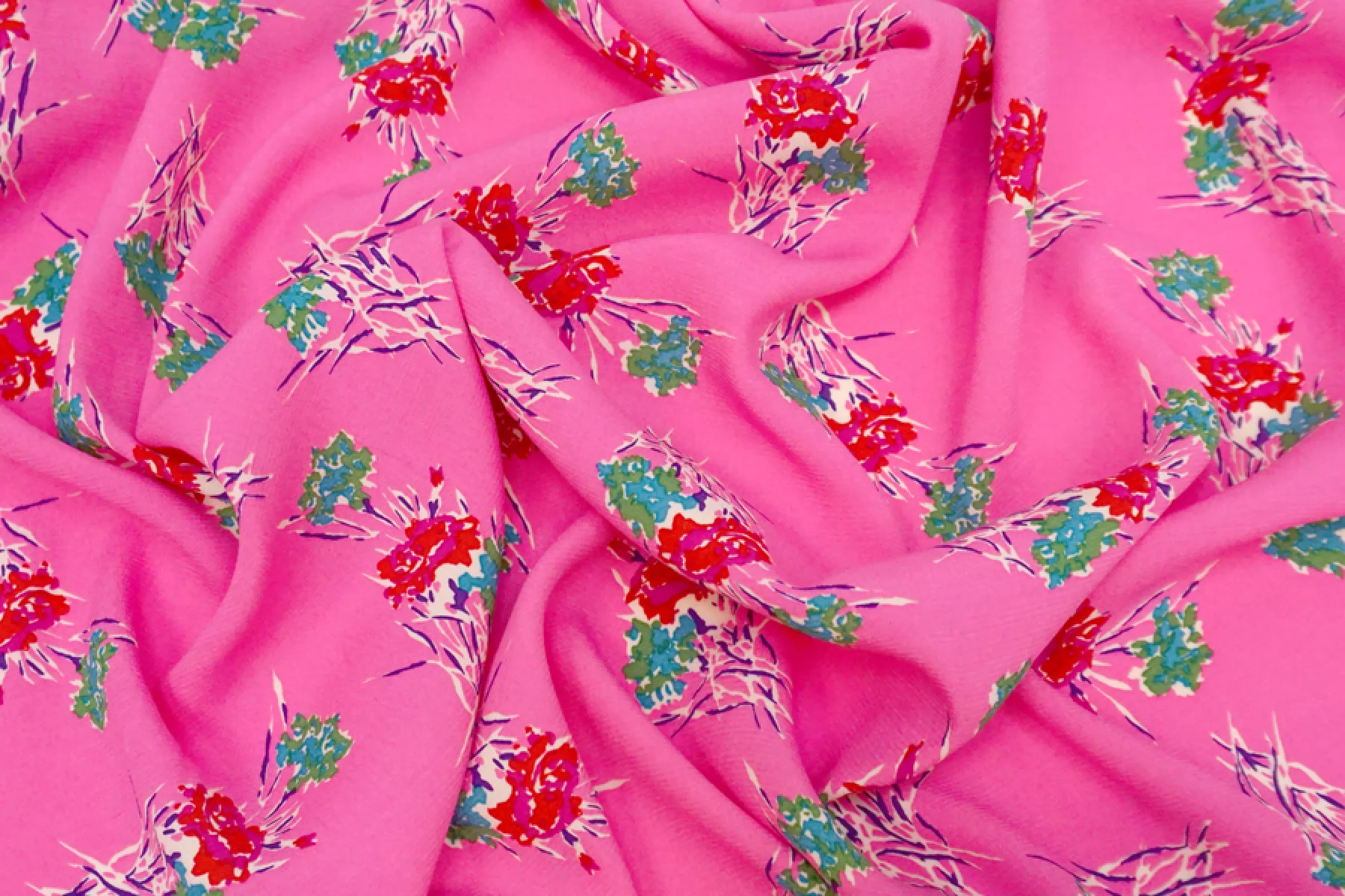 Вискоза креповая плательная Цветы на розовом KZ H21/11 H50 19022508