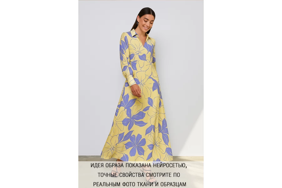 ВНИМАНИЕ!! Встречаются хаотично расположенные синии и красные точки/пятна каждый 1 м. см. фото. Дополнительные фото и видео по ткани категории "Уценка" не делаются! Креповая вискоза с принтом на светло-желтом фоне. Приятная и шероховатая наощупь. Тонкая, пластичная, красиво драпируется, форму не держит. Плетение немного пружинит. Немного просвечивает в один слой. Слегка мнется. Отличный вариант на платья, юбки, блузки. Учитывайте усадку.