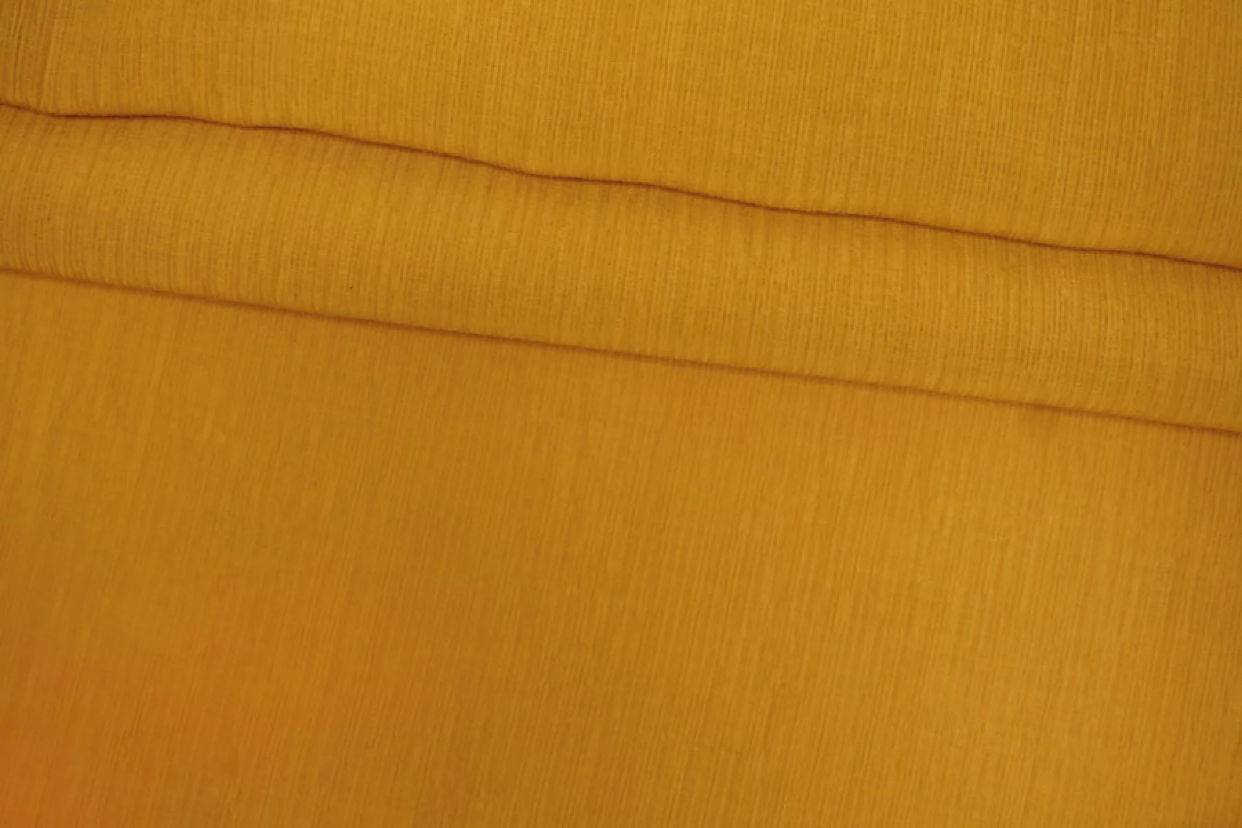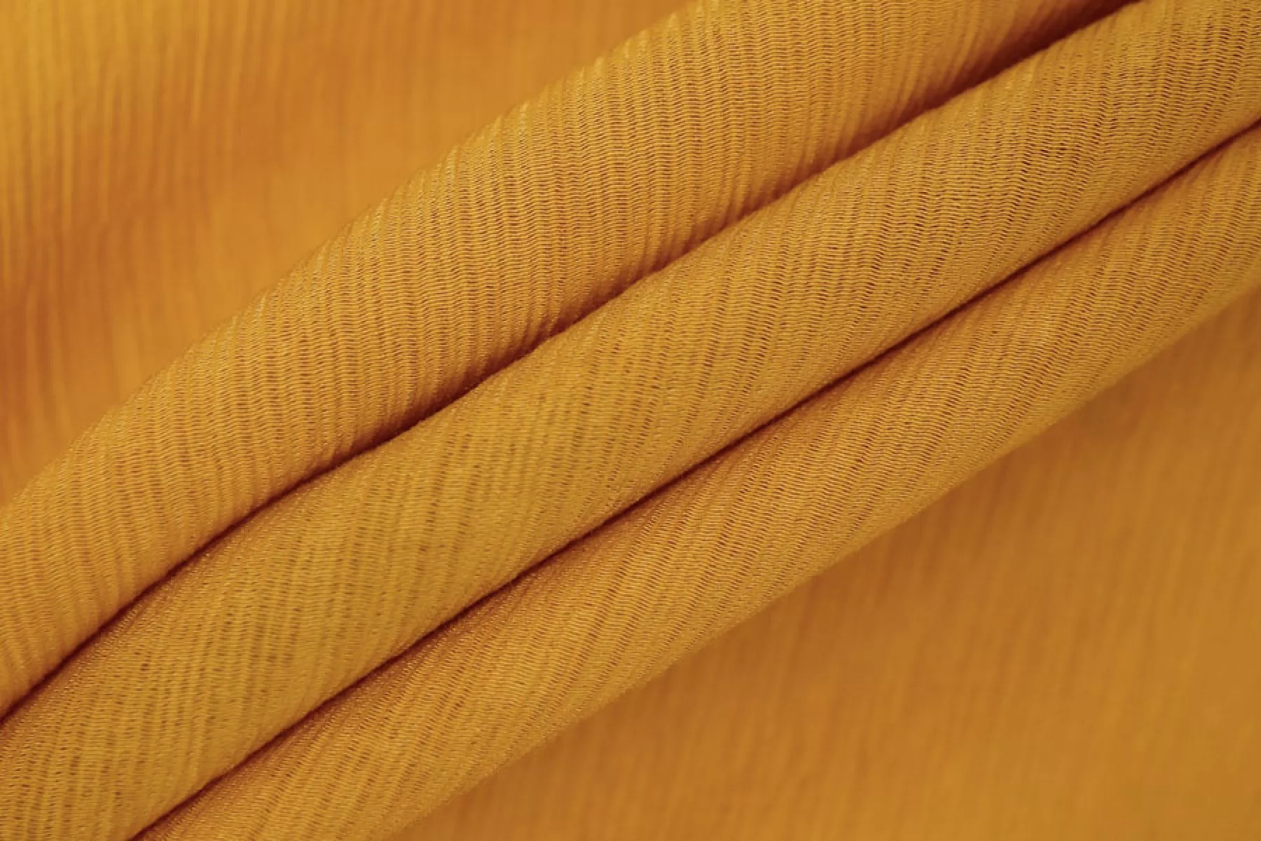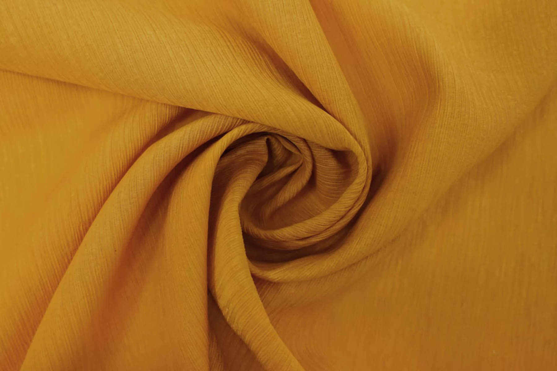 Шикарная плательная вискоза с эффектом креширования горчичного оттенка. Тактильно приятная, мягкая, со слегка шероховатой и слегка жатой поверхностью. Обладает красивой пластикой, красива в складках. Форму не держит. Просвечивает. Немного тянется. Несильно сминается. С легким приятным лоском. Прекрасный вариант на платья, блузки, юбки и не только. Обязательно учитывайте возможную усадку 5-10%