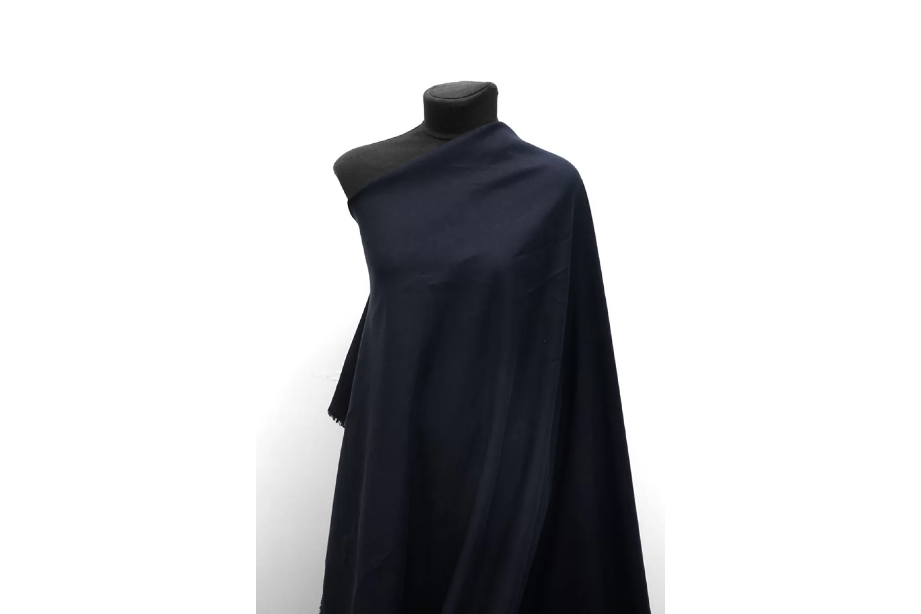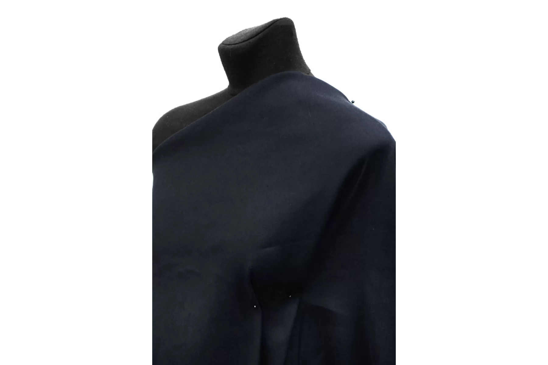 Внимание!!! Присутствуют зацепки частые по всему полотну см. фото! Прекрасная вискоза плательной плотности диагонального плетения в темно-синем оттенке. Тактильно приятная, мягкая, немного суховатая. Не просвечивает. С легким лоском. Очень хорошо тянется. При растяжнии просвечивает. Красиво смотрится в складках, нисподающая. Сминается. Очень пластичная, немножко держит форму. Шьем платья, юбки, брюки, мягкие жакеты. При необходимости используйте подкладочный материал. Обязательно учитывайте усадку 5-10%.