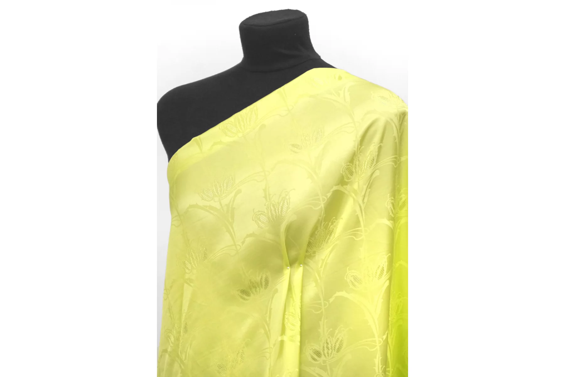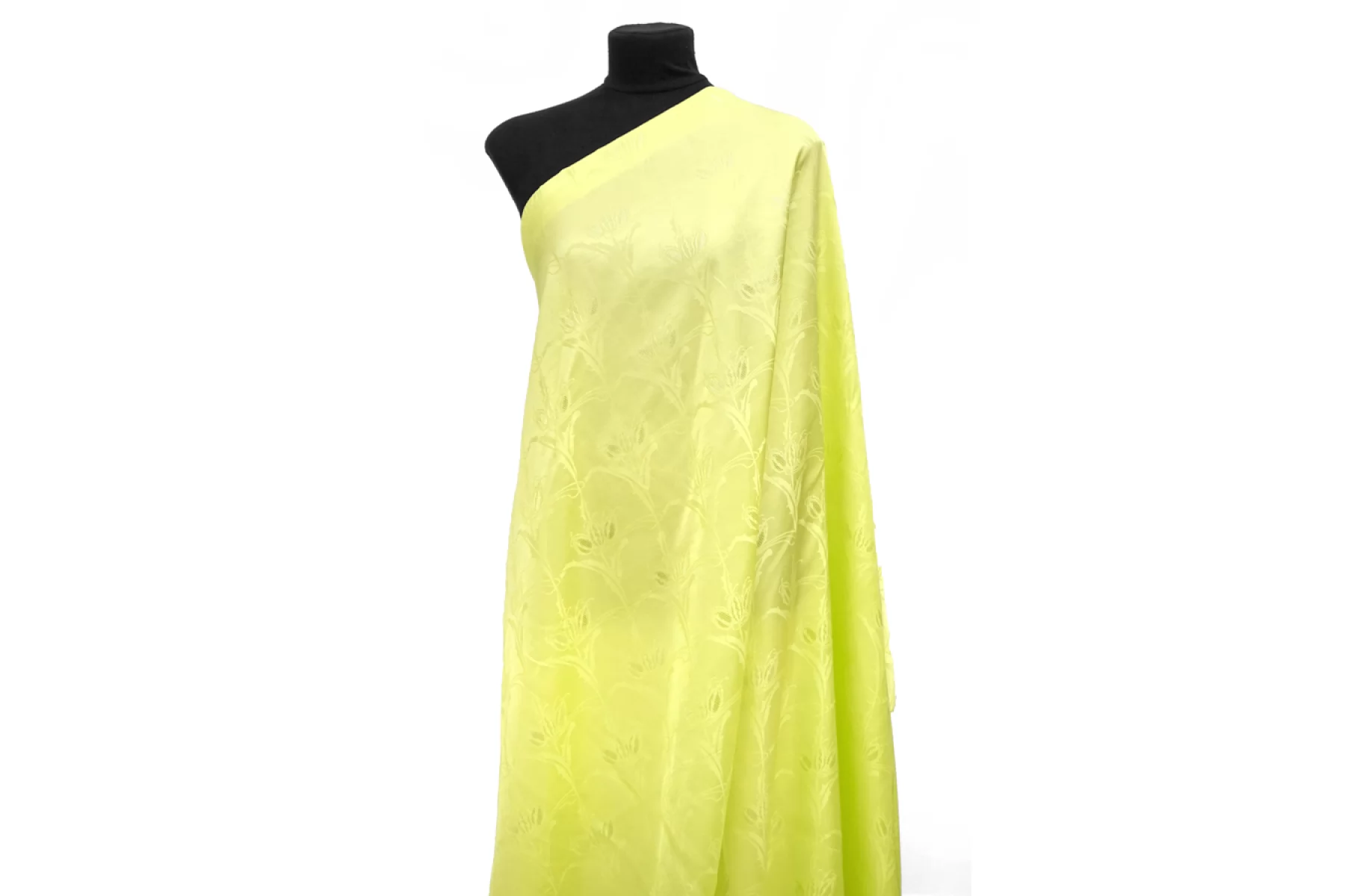 Великолепная жаккардовая вискоза от GUCCI в оттенке желтый лайм с выработкой цветочного узора. Очень приятная, мягкая, пластичная и скользящая. Обратная сторона шероховатая. Не просвечивает. Не тянется. С приятным лоском. Слегка сминается. Красива в складках. Подойдет на платья, юбки, кимоно и одежду в пижамном стиле. Уход за материалом деликатный. При необходимости используйте подкладочный материал. Учитываем усадку порядка 5-10%.