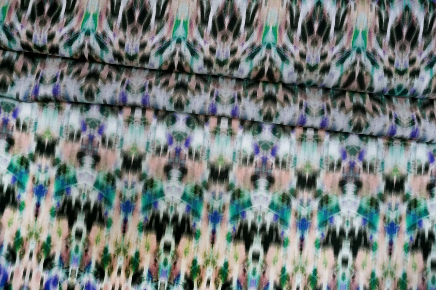 Прекрасная плательно-блузочная вискоза с размытым орнаментальным принтом принтом. Тактильно гладкая, приятная. Сминается, не тянется. Просвечивает немного в один слой. Красиво струится и смотрится в складке и пластике, форму не держит. Отлично подойдет на платья, юбки, блузки, топы, сарафаны. При необходимости используйте подкладочный материал. Обязательно учитывайте усадку 5-10%.