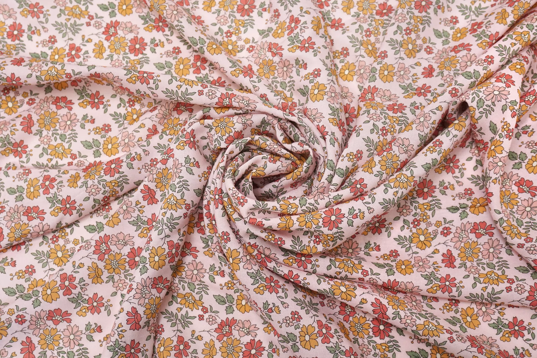 Итальянская плательно-блузочная вискоза от Liberty с мелким цветочным принтом на нежно-розовом фоне. Тонкая, пластичная, не тянется. Немного просвечивает в один слой. Подойдет для пошива платья, юбки, туники, блузки, рубашки. При работе с этой тканью советуем использовать тонкие иглы и нитки.