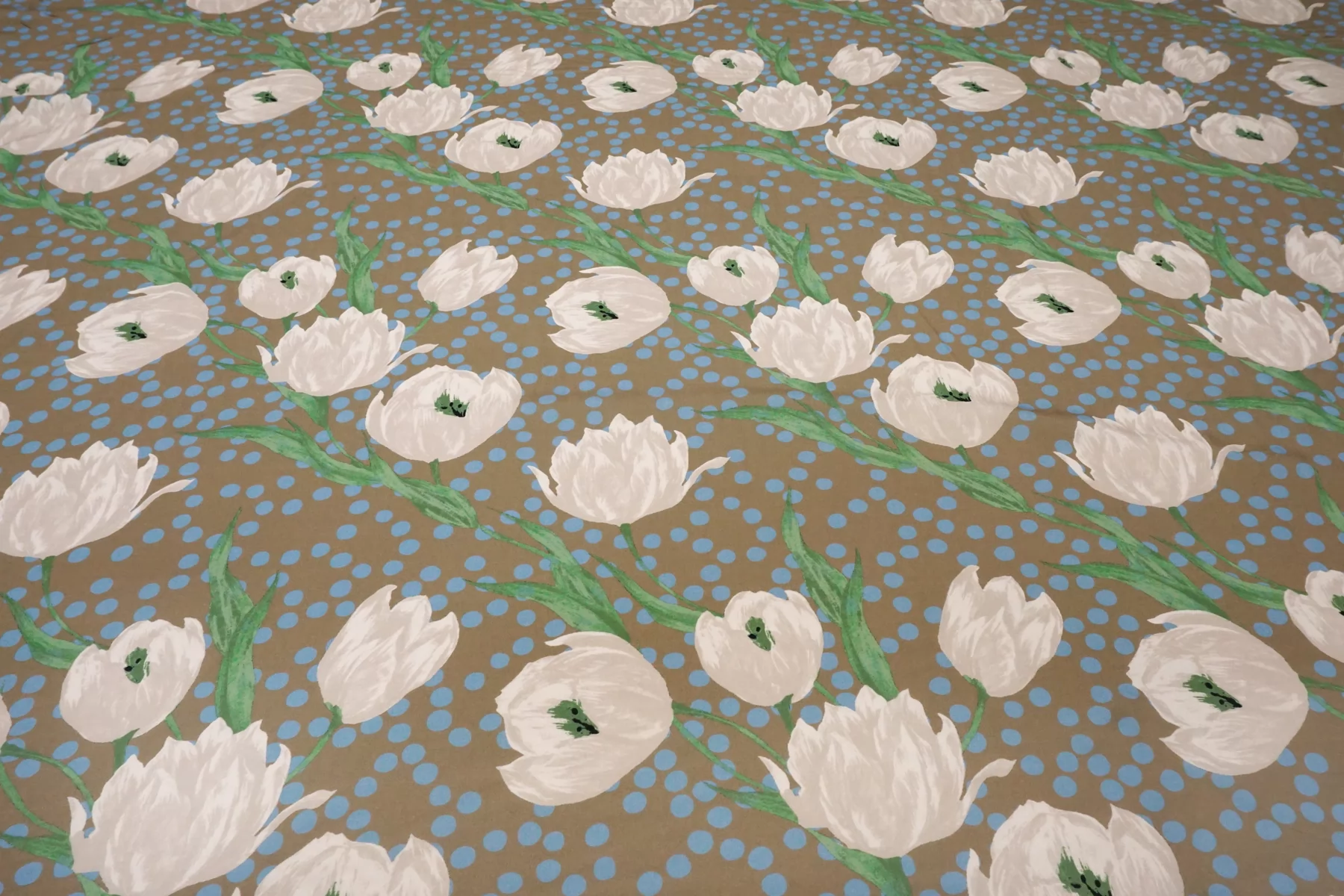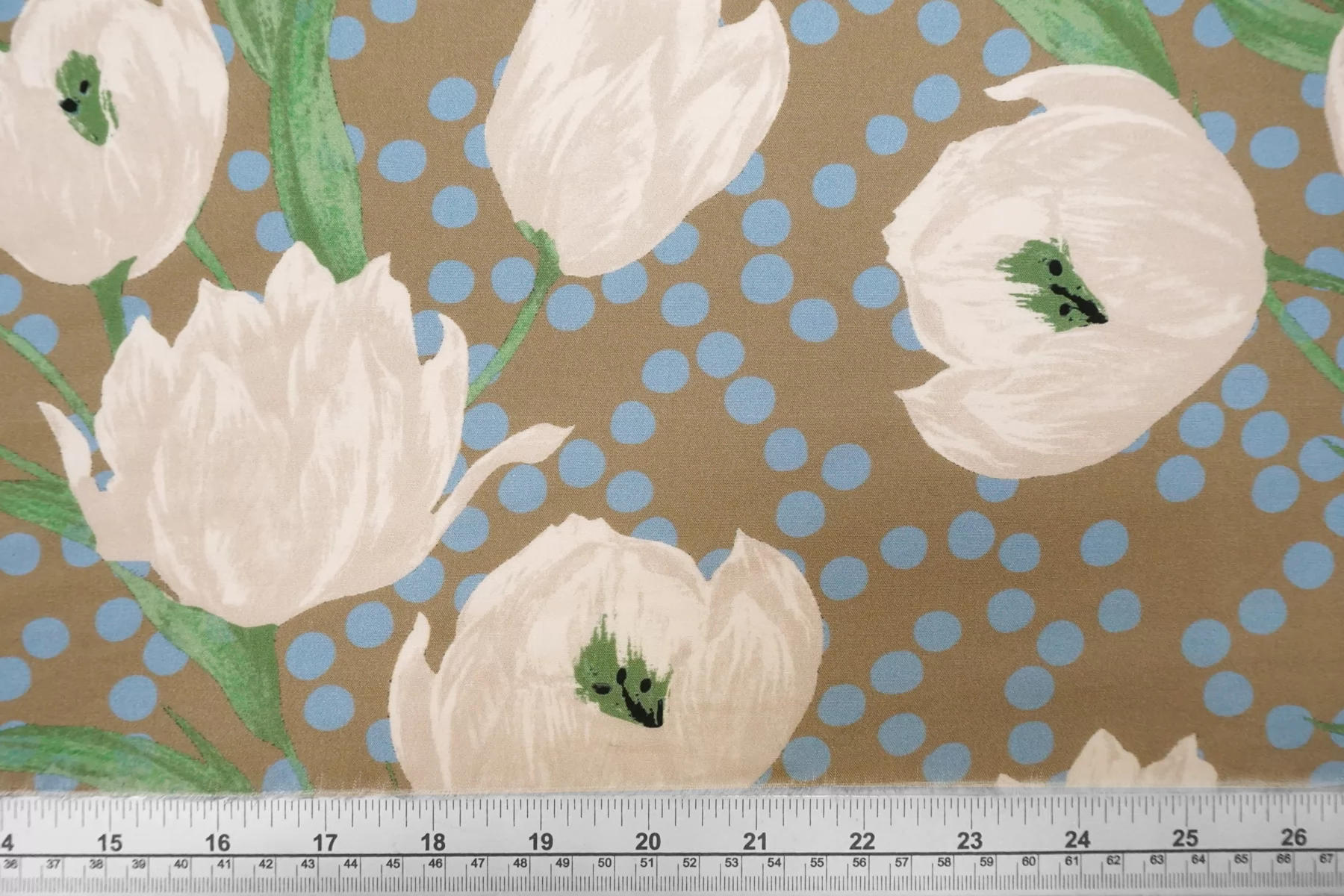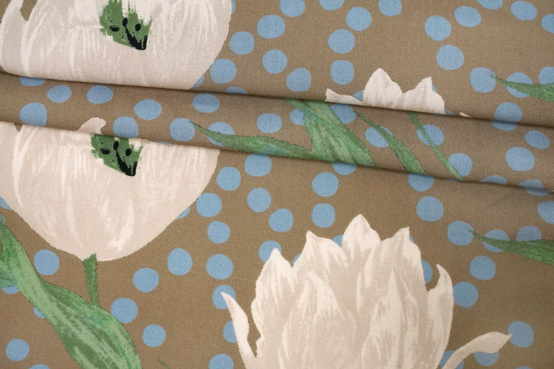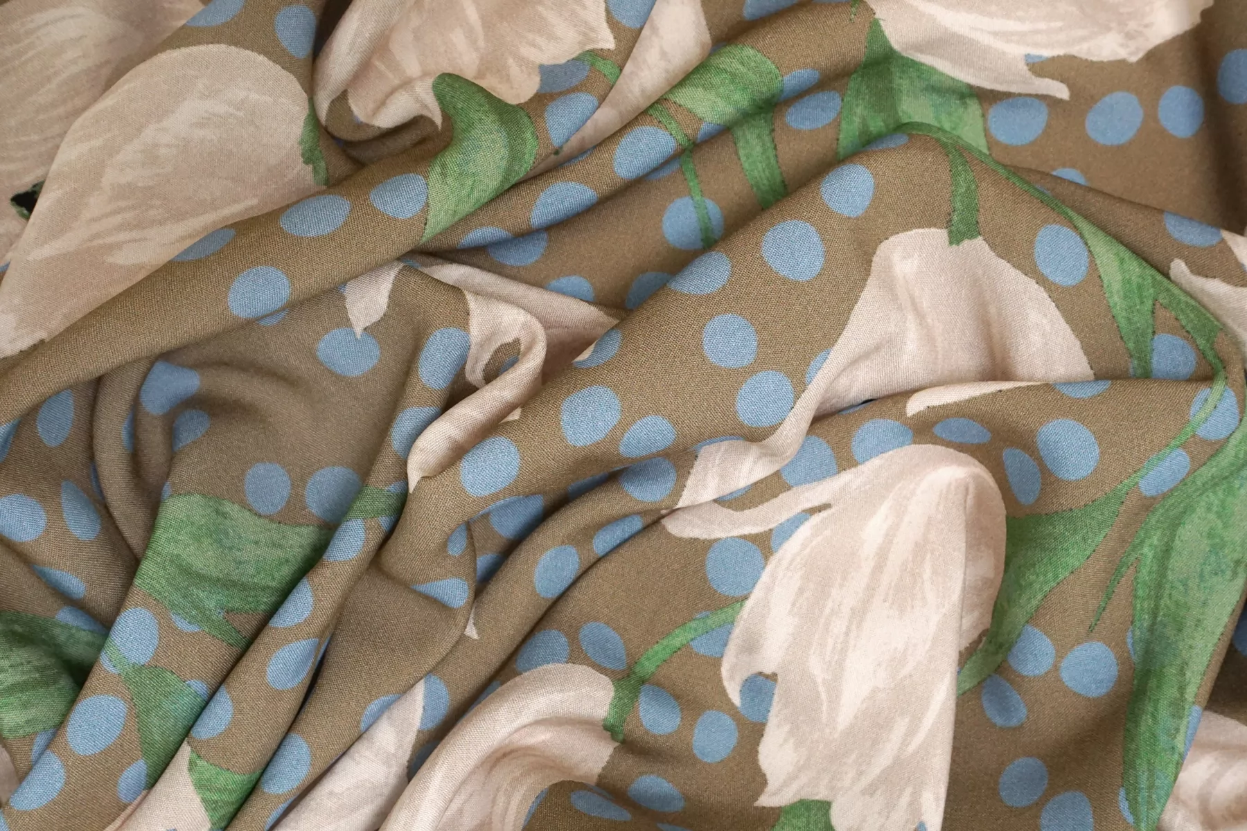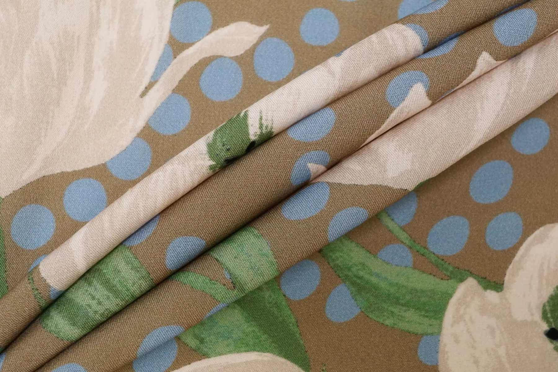 Вискоза плательно-блузочная в горошек Бежево-голубая CVC H00 EE11 21112559