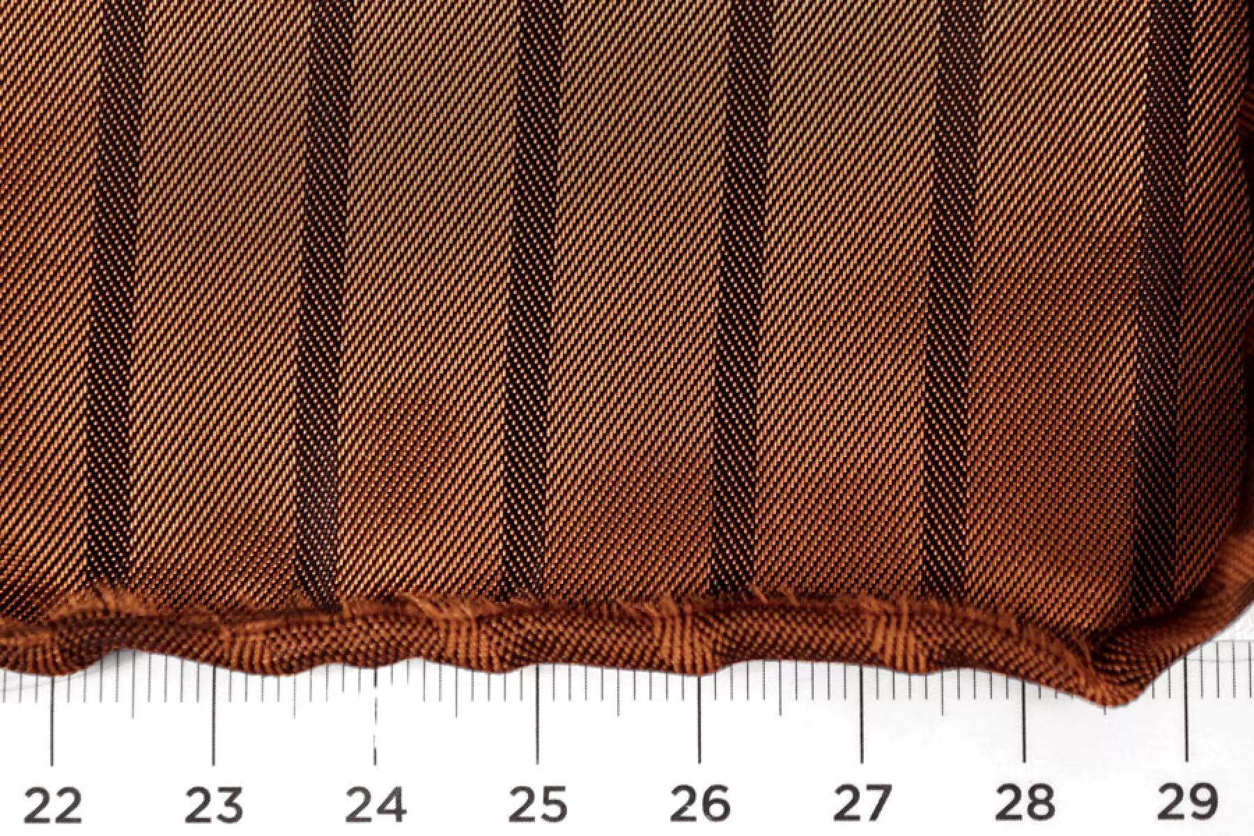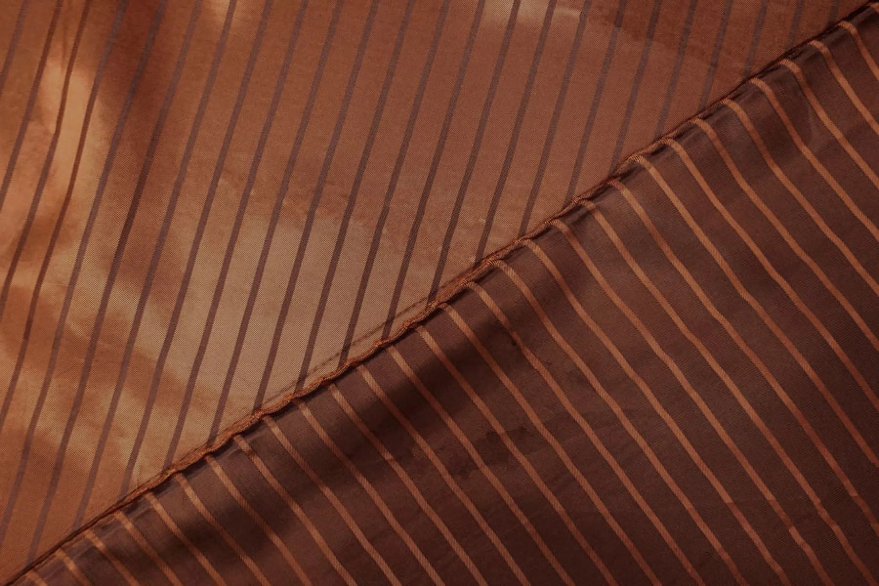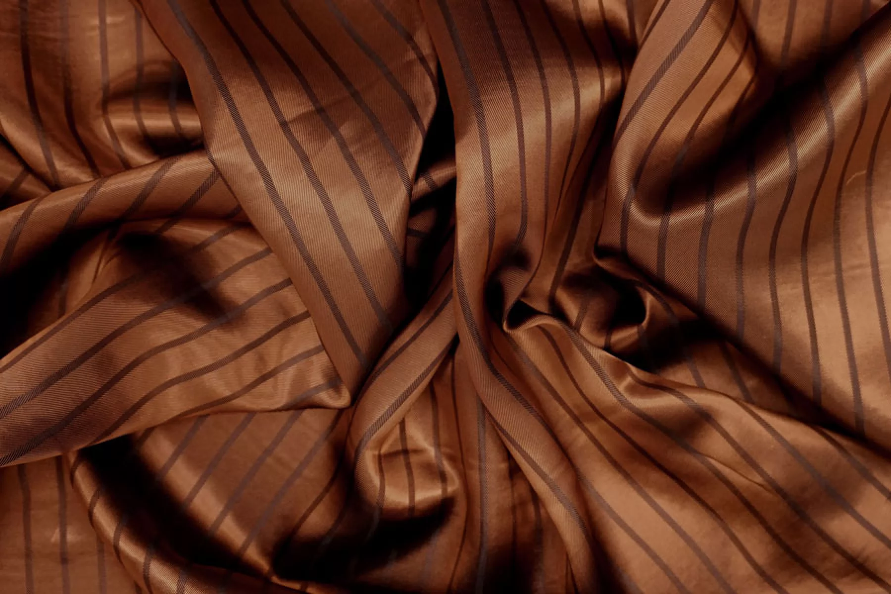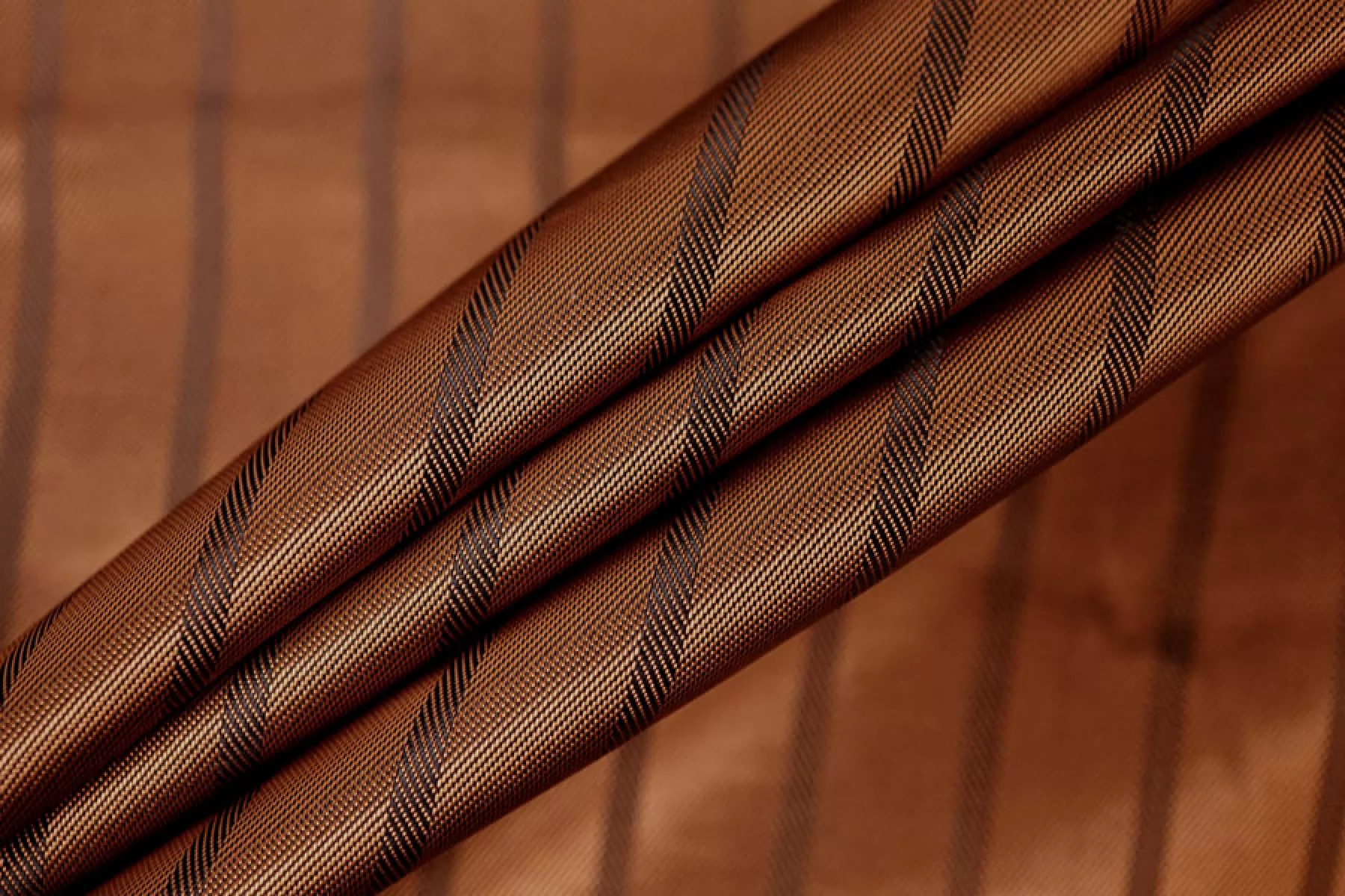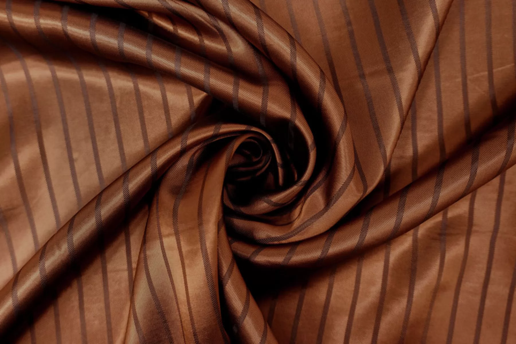 Прекрасня подкладочная вискоза с жаккардовой выработкой в виде полос в медном оттенке, переливается как хамелеон. Гладкая, шелковистая, обладает легким блеском. Подойдет на подклад к пиджакам, жилеткам, юбкам, пальто.
