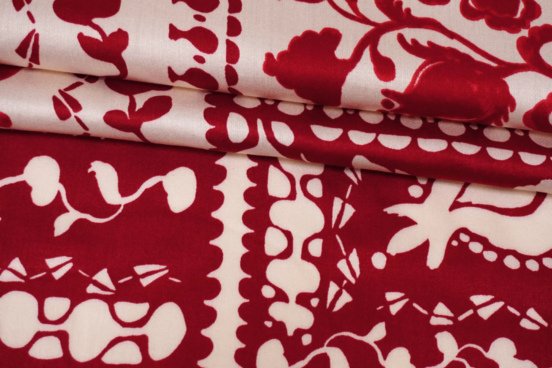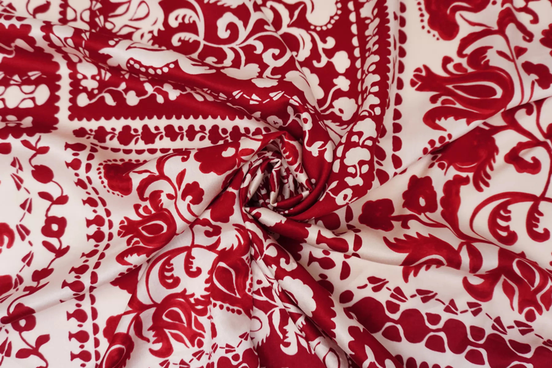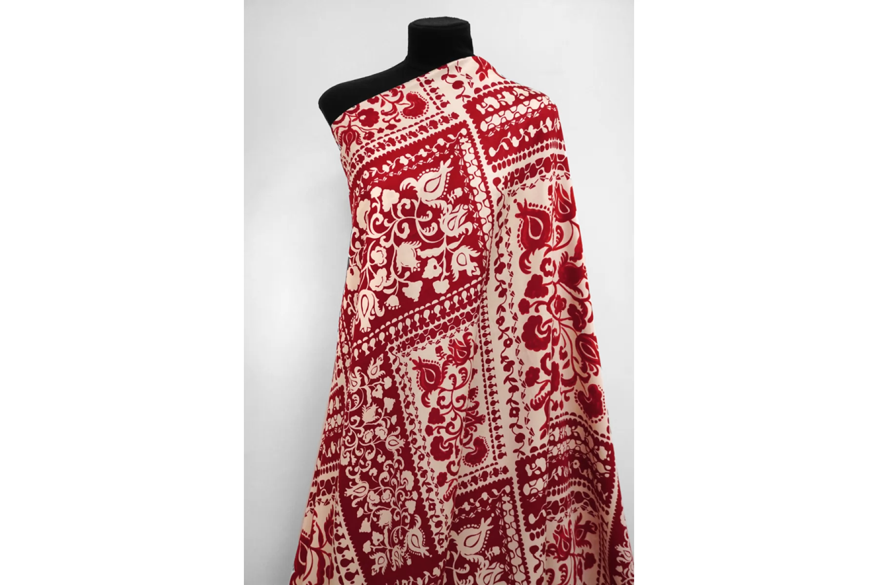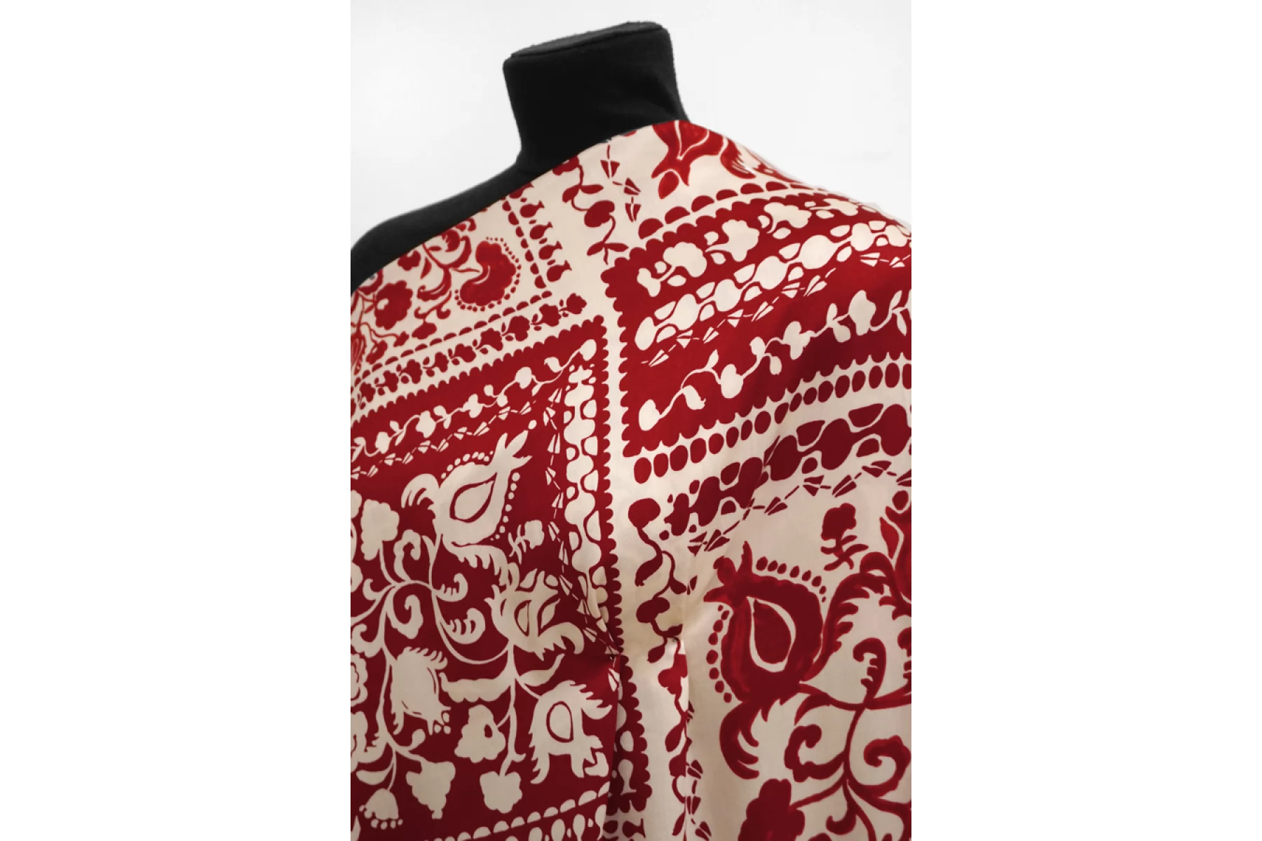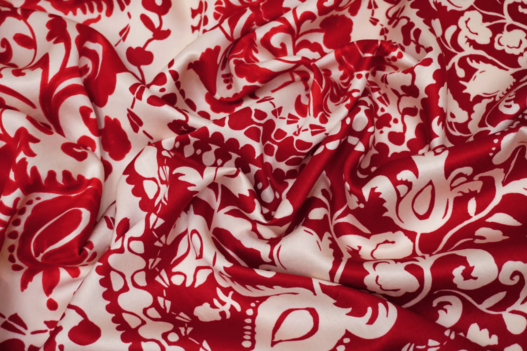 Плательный вискозный сатин с цветочным принтом красно-молочного цвета. У принта есть рапорт 60 см. Тактильно вискоза очень приятная, мягкая, гладкая. С красивым лоском. Легкая, красиво струится и хороша в своей пластике и складках. Слегка просвечивает контур силуэта на просвет. Не тянется, но немного пружинит за счет плетения. Немного сминается. Отлично подойдет на платья, блузки и юбки, а также одежду в бельевом стиле. При необходимости используйте подкладочный материал. Обязательно учитывайте усадку 5-10%. Шить изделия из данного материала рекомендуем тонкой иглой.