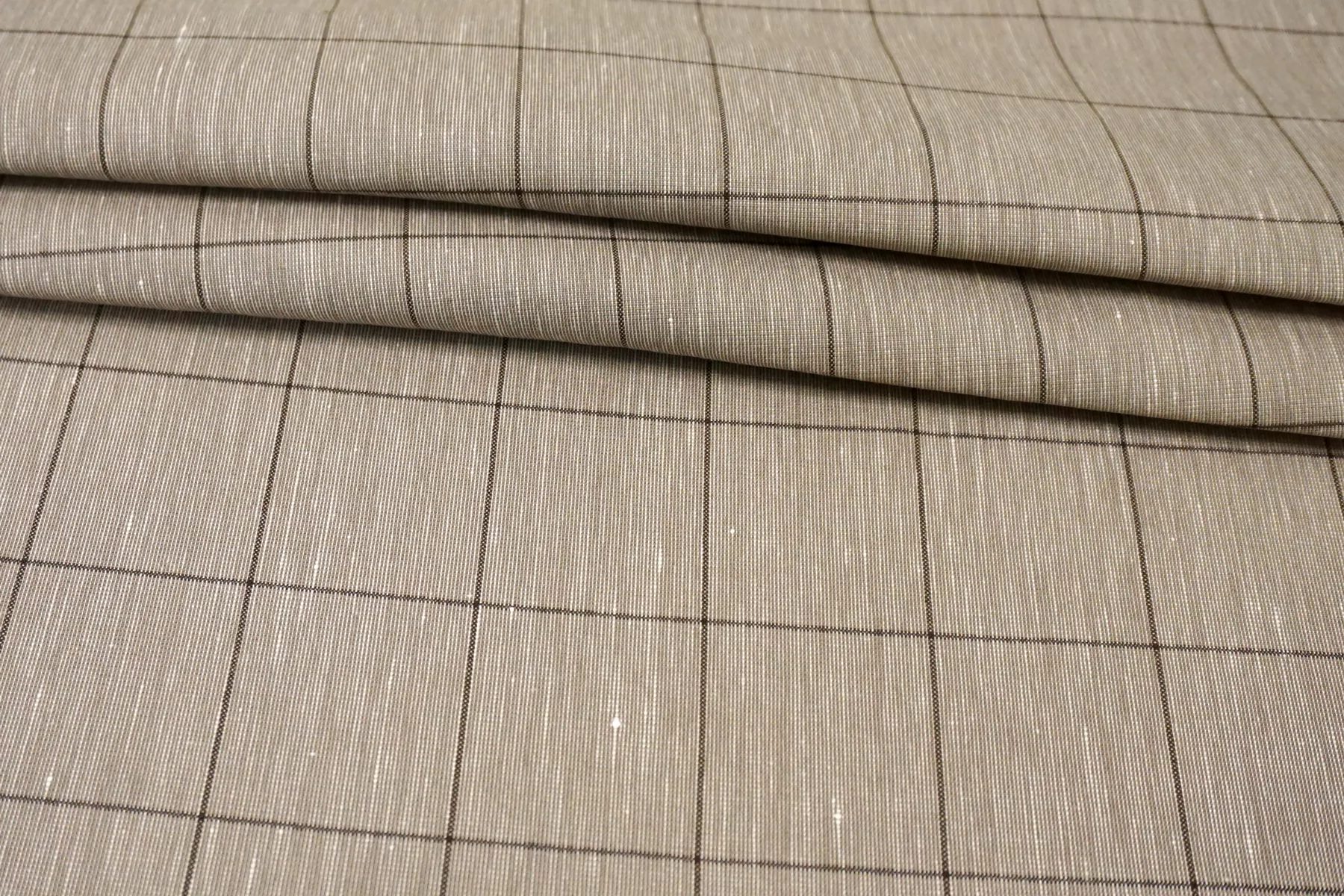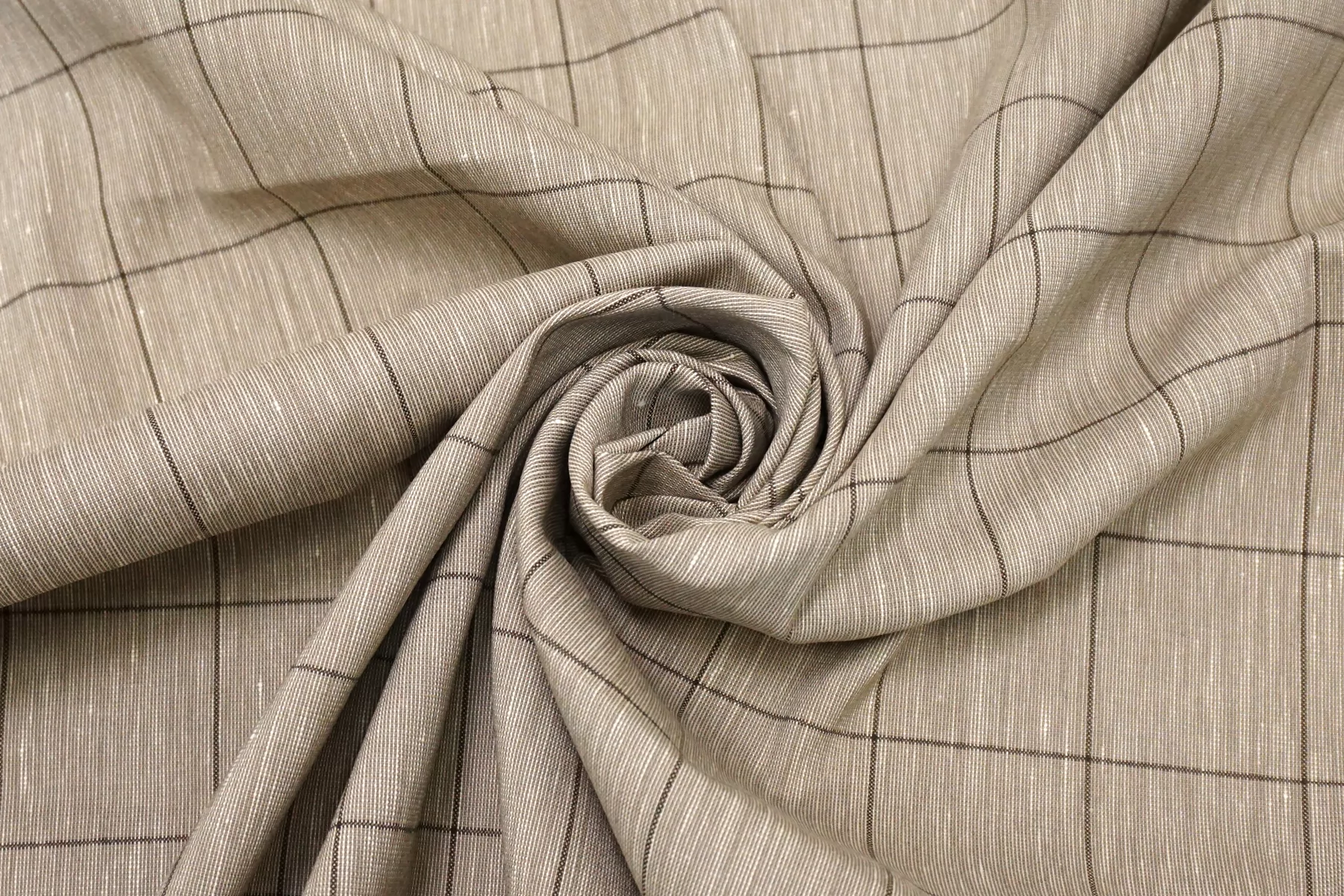 Вискоза со льном костюмно-плательная Бежевая в клетку FRM H16/3 F20 13022685