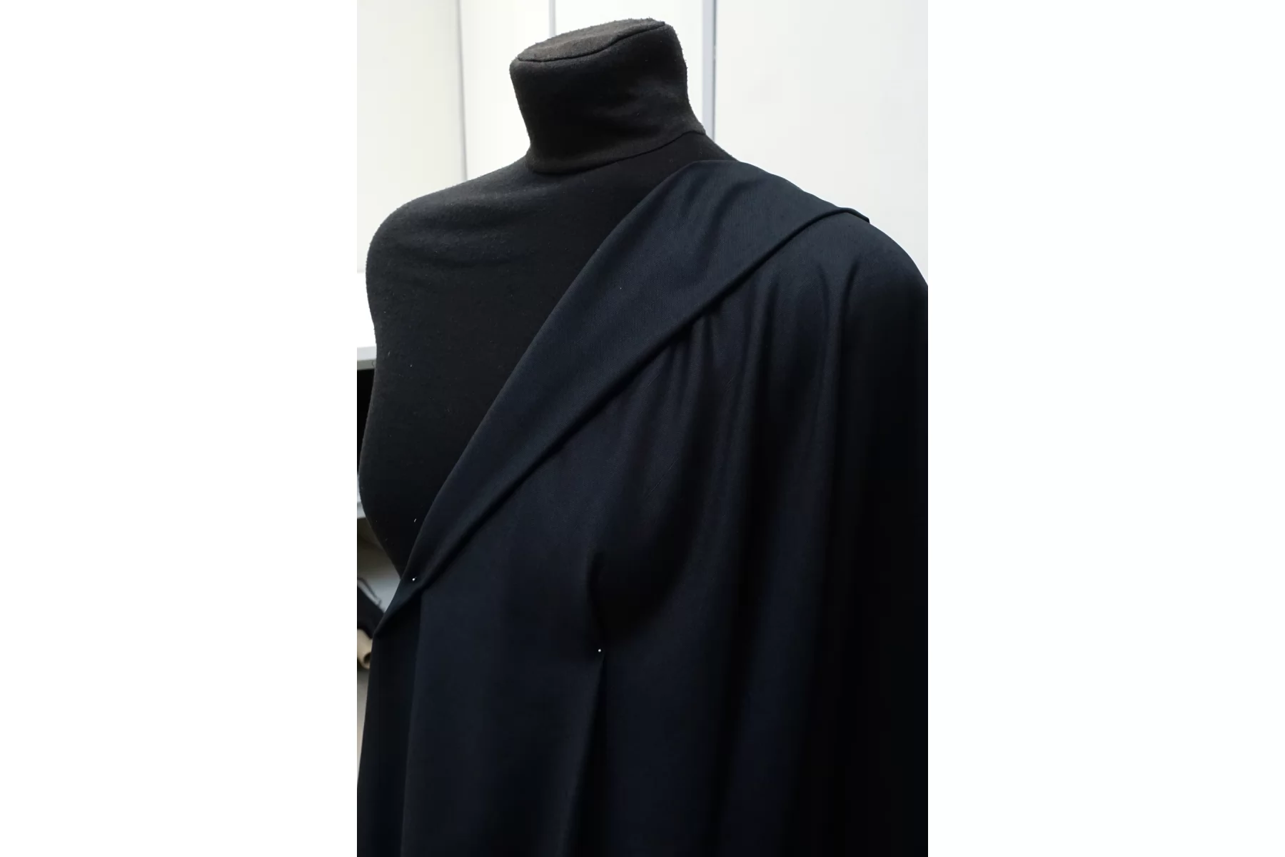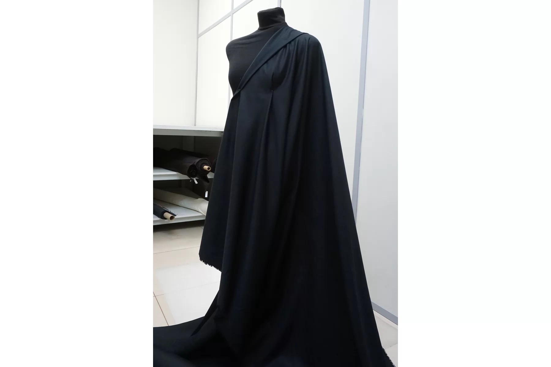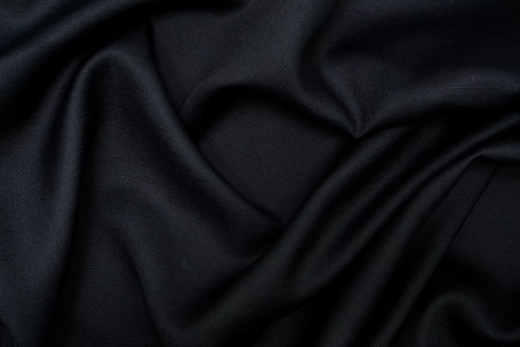 Прекрасна костюмно-плательная вискоза с добавкой льна, в ненасыщенном чёрном цвете с серовато-синеватым подтоном. С уплотнениями свойственные льну. Тактильно материал приятный, не колется. Плетение достаточно плотное, не рыхлое. Слегка просвечивает в один слой. Не тянется, сминается. Пластичный, форму держит умеренно. Шьем летние костюмы, кимоно, платье, юбку. Учитывайте усадку. При необходимости используйте подкладочную ткань.