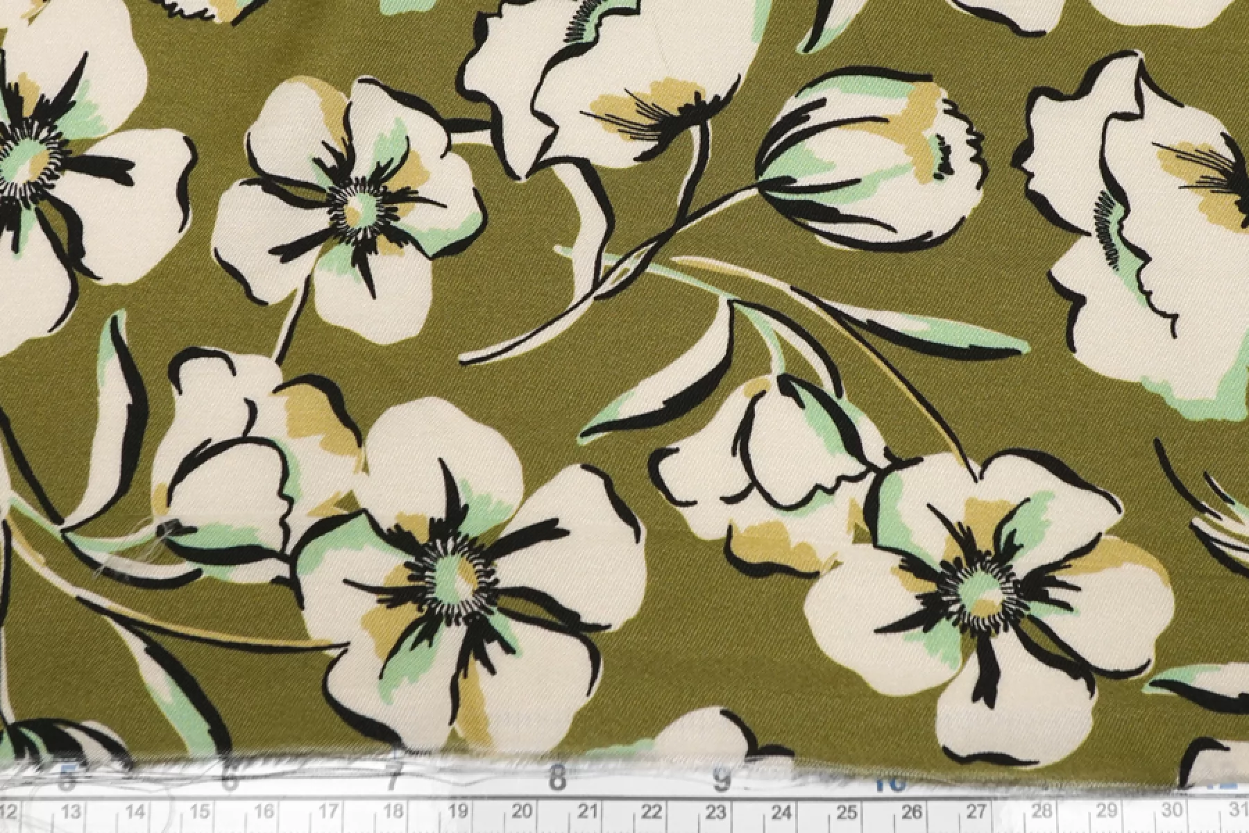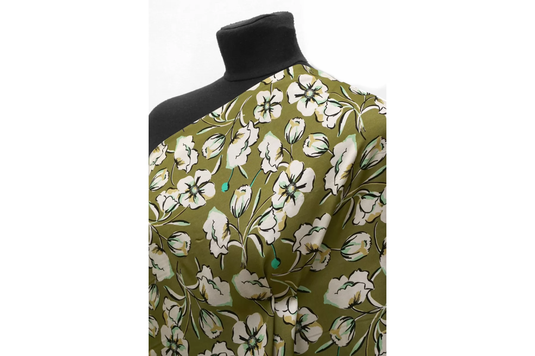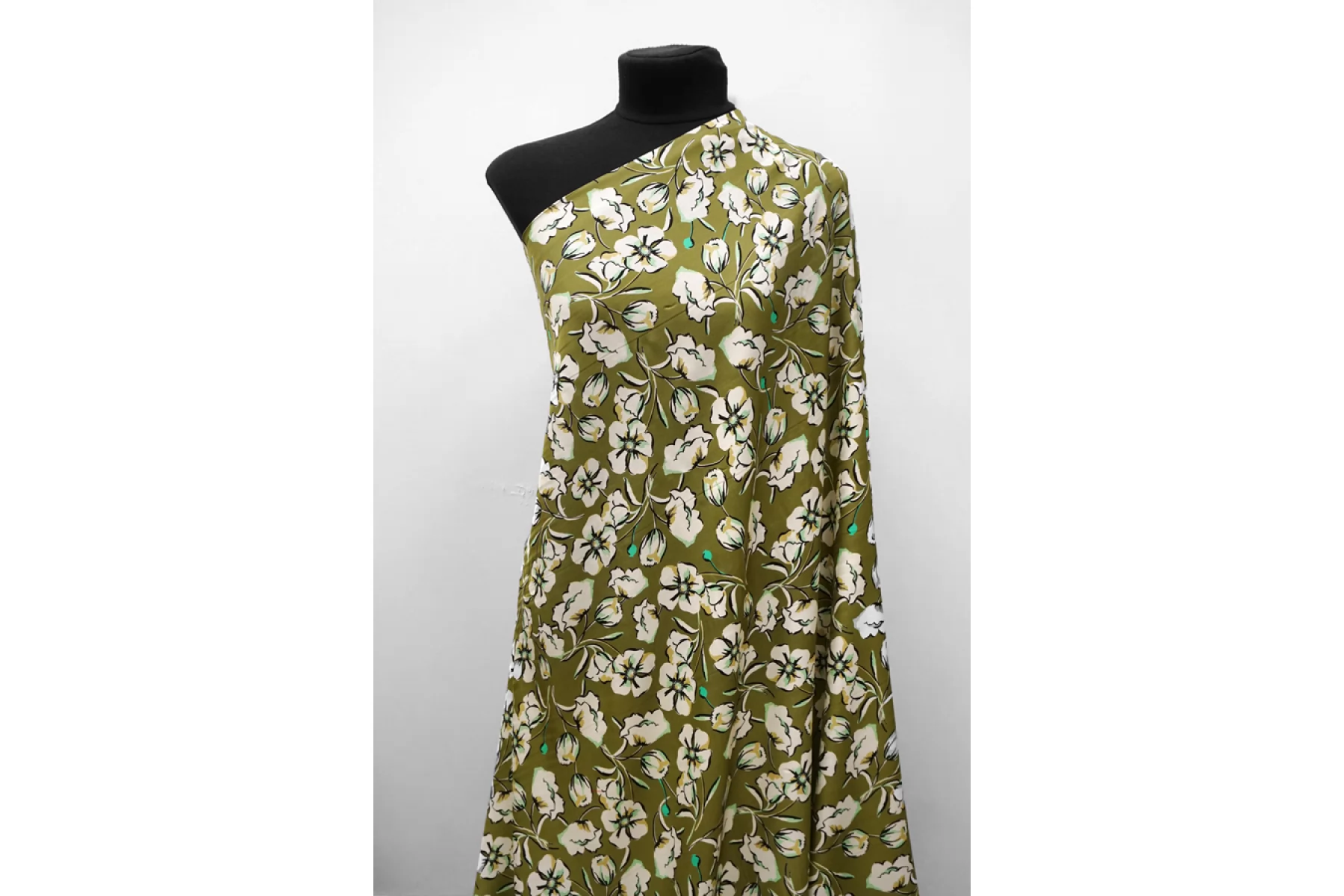 Вискоза твиловая MAX MARA Цветы на оливково-зелёном MM H21 H30 14042528