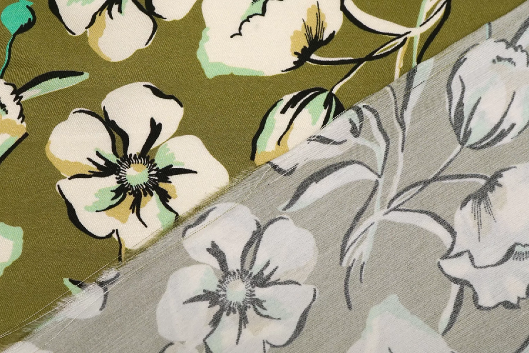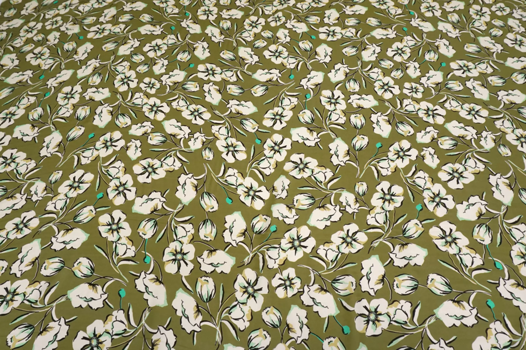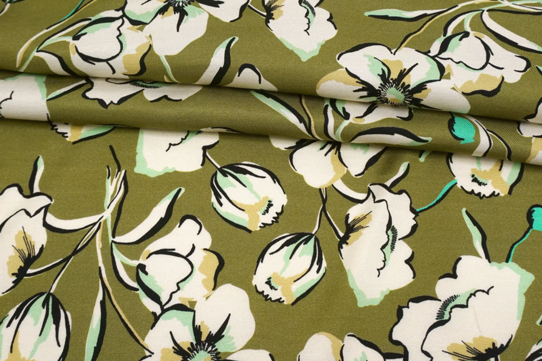 Вискоза твиловая MAX MARA Цветы на оливково-зелёном MM H21 H30 14042528