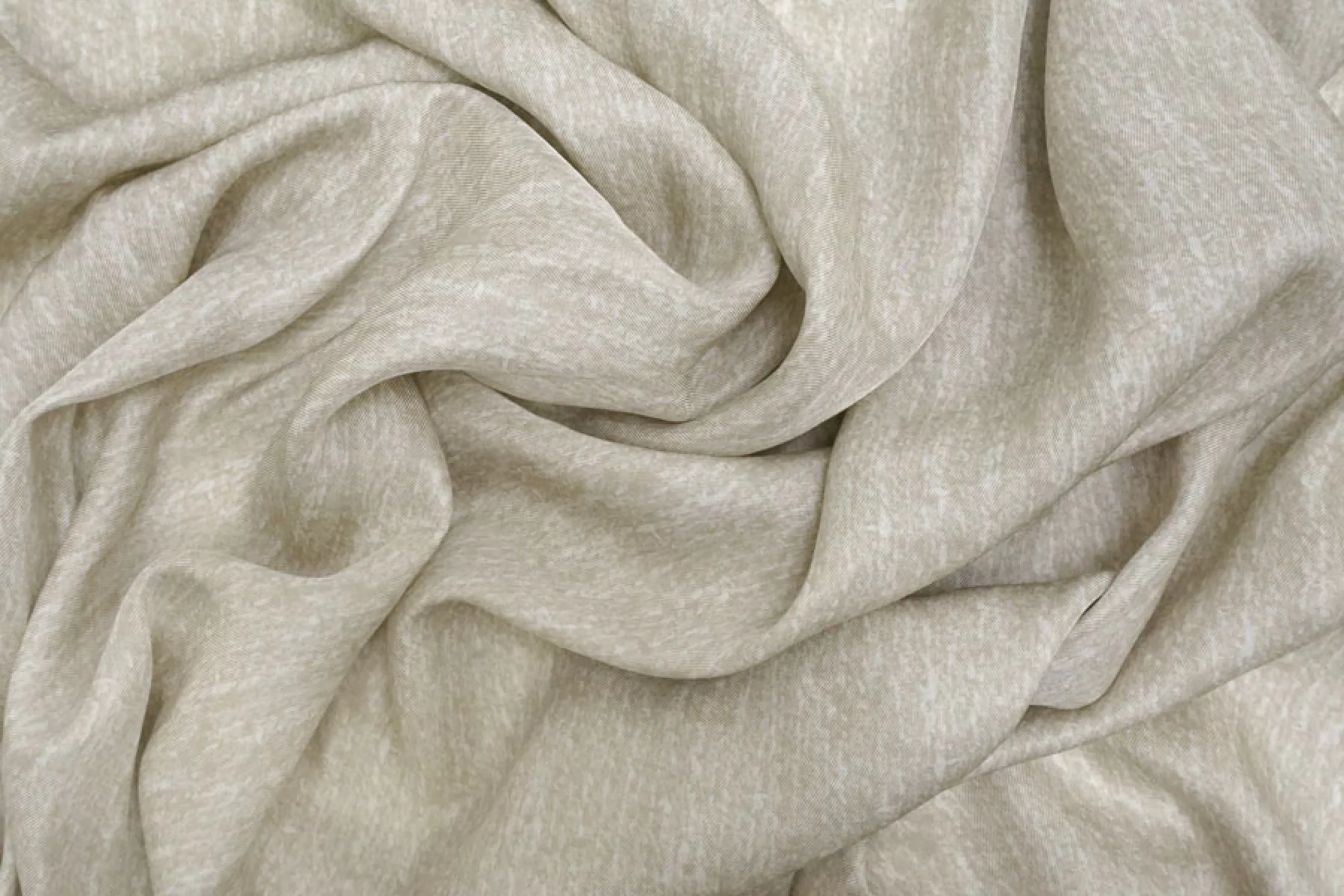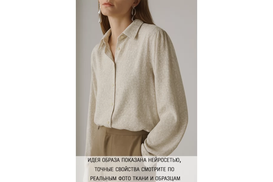 Красивая плательно-блузочная вискоза твилового (диагонального) плетения с бело-бежевым абстрактным принтом. Гладкая, мягкая, приятная тактильно. Пластичная. Немного просвечивает силуэт. Не тянется. Немного мнется. Красива в движении. Форму не держит. Прекрасно подойдет на платья, блузки, юбки и костюмы в пижамном стиле. При необходимости используйте подкладочный материал. Обязательно учитывайте усадку порядка 5-10%.