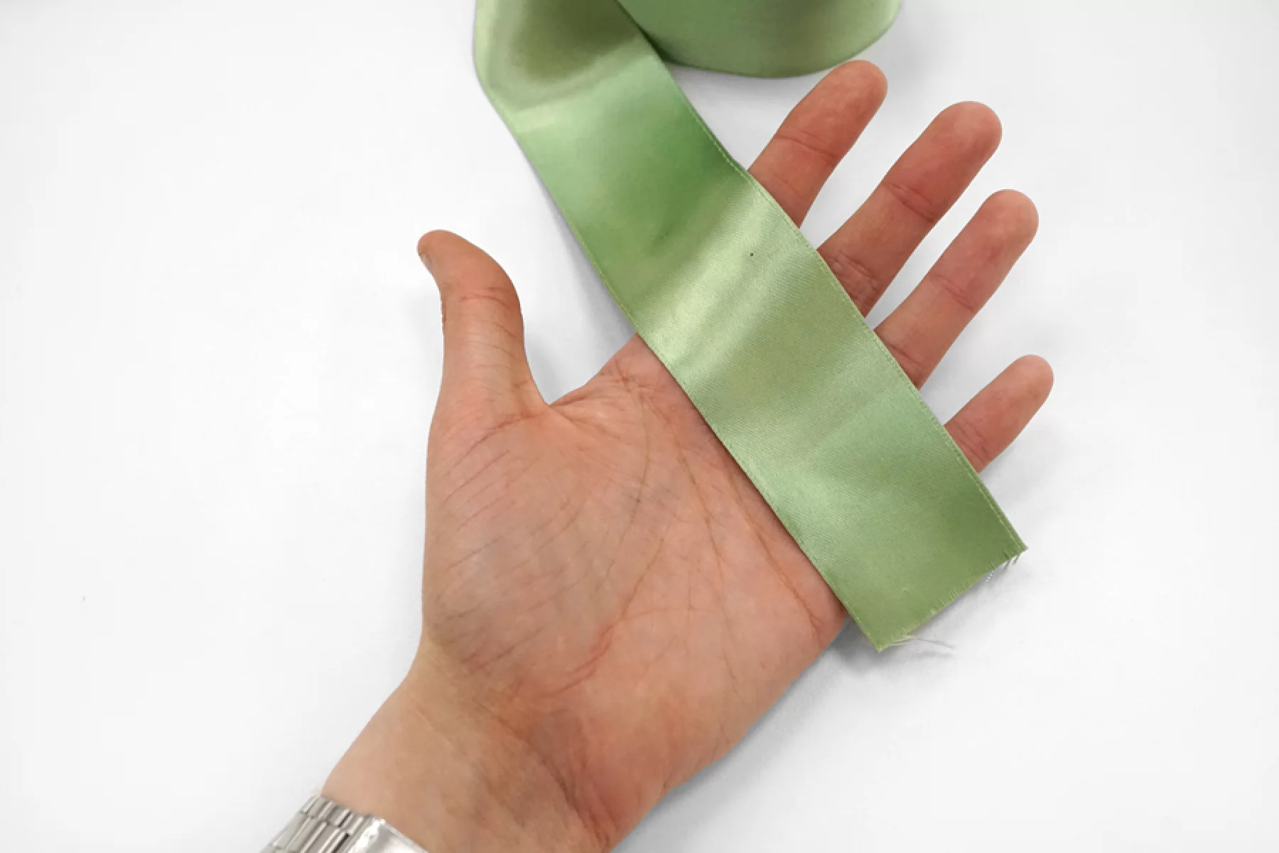 Вискозная атласная лента пастельно зеленая 4 см 5012285