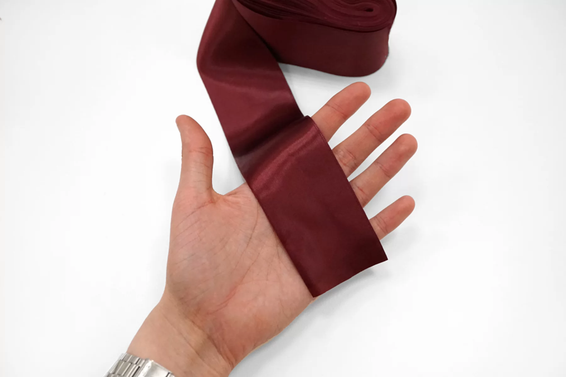 Лента вискозная атласная винного цвета, мягкая и приятная на ощупь. Используется для украшения и отделки одежды, рукоделия, в скрапбукинге, в изготовлении цветов и тд. Ширина 5 см.