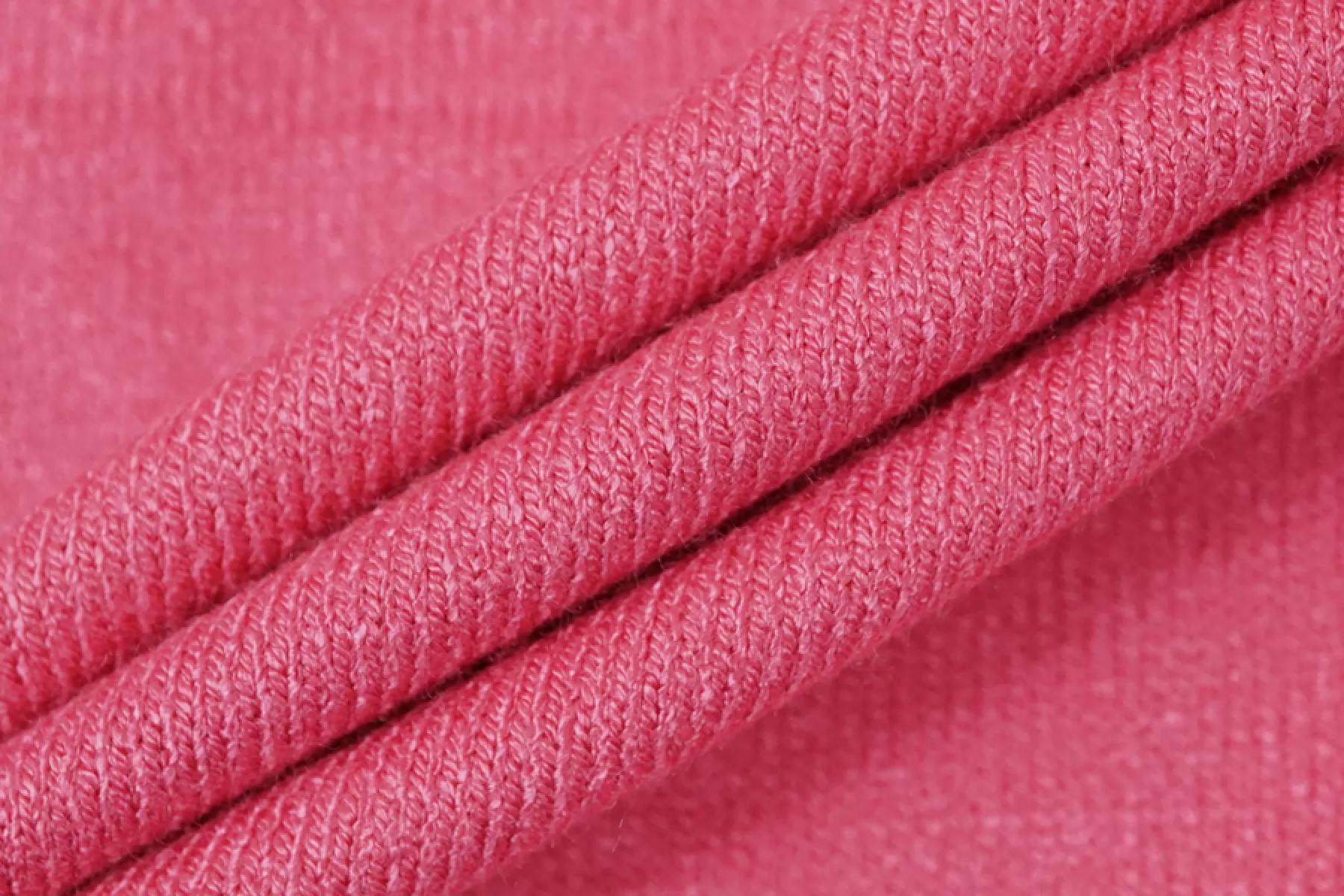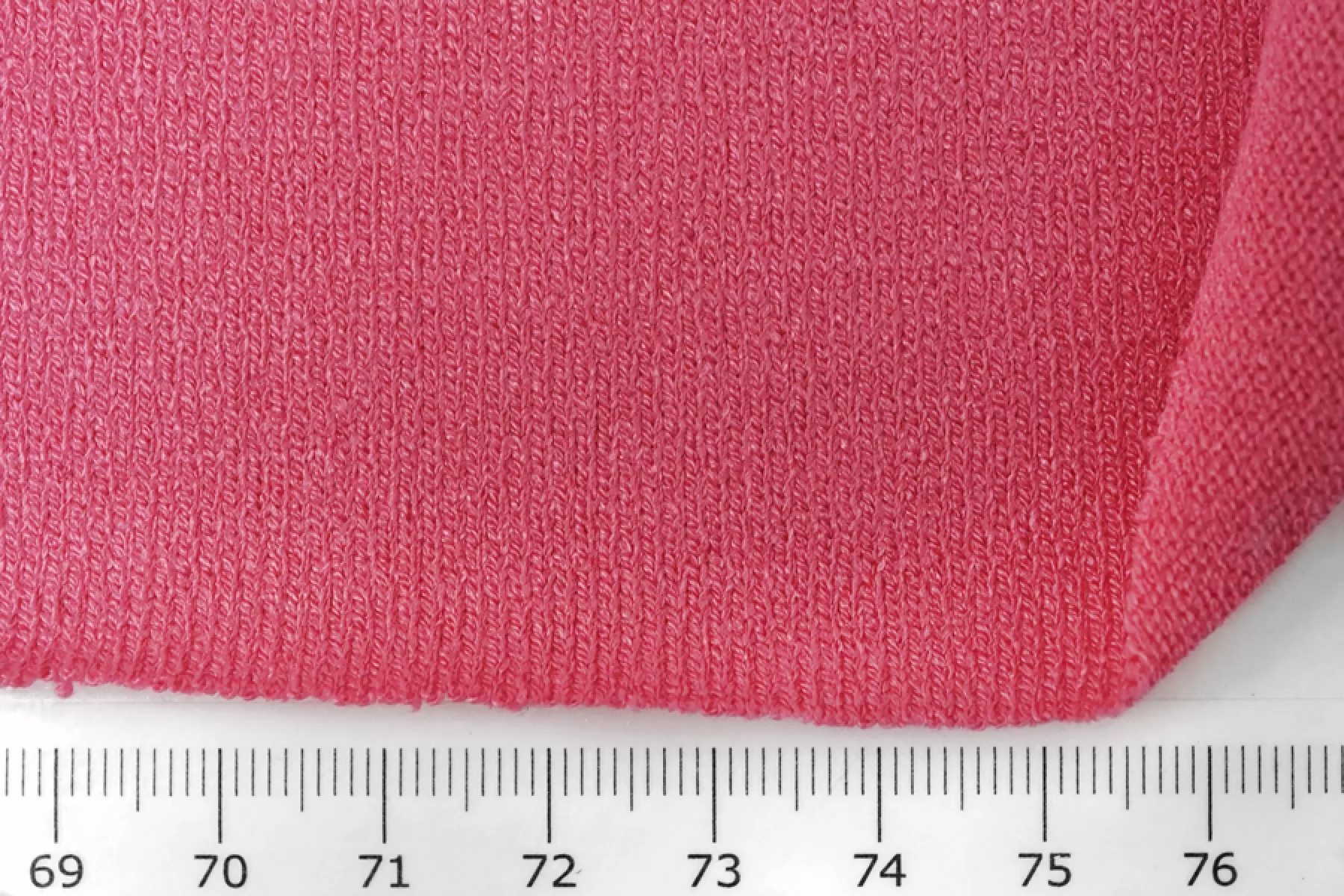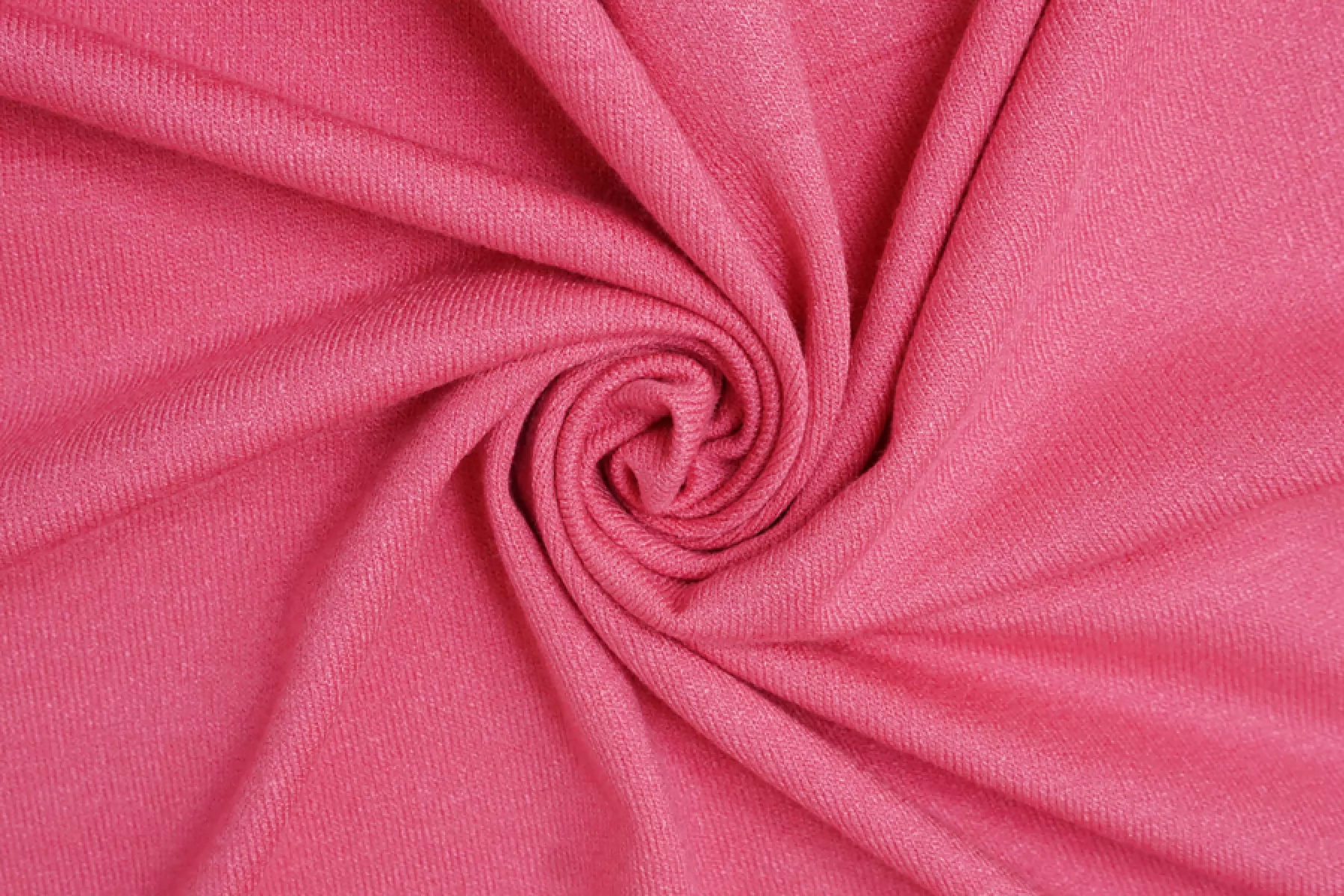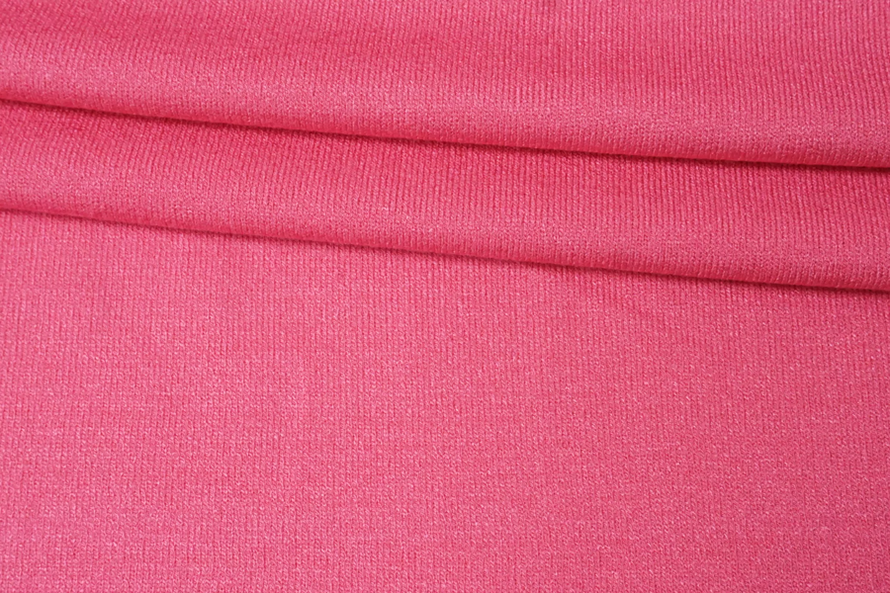 Мягкий вискозный трикотаж, кулирная гладь, в розовом оттенке. Тактильно очень приятный и пластичный. Плетение средней плотности. Хорошо растяжим за счет плетения. Обладает легким лоском. Форму не держит, но красив в складках. Просвечивает при растяжении. Сминается, но восстанавливается практически полностью. Шьем кофты, водолазки, тонкие и мягкие кардиганы, а также другие варианты. Обязательно учитывайте возможную усадку.