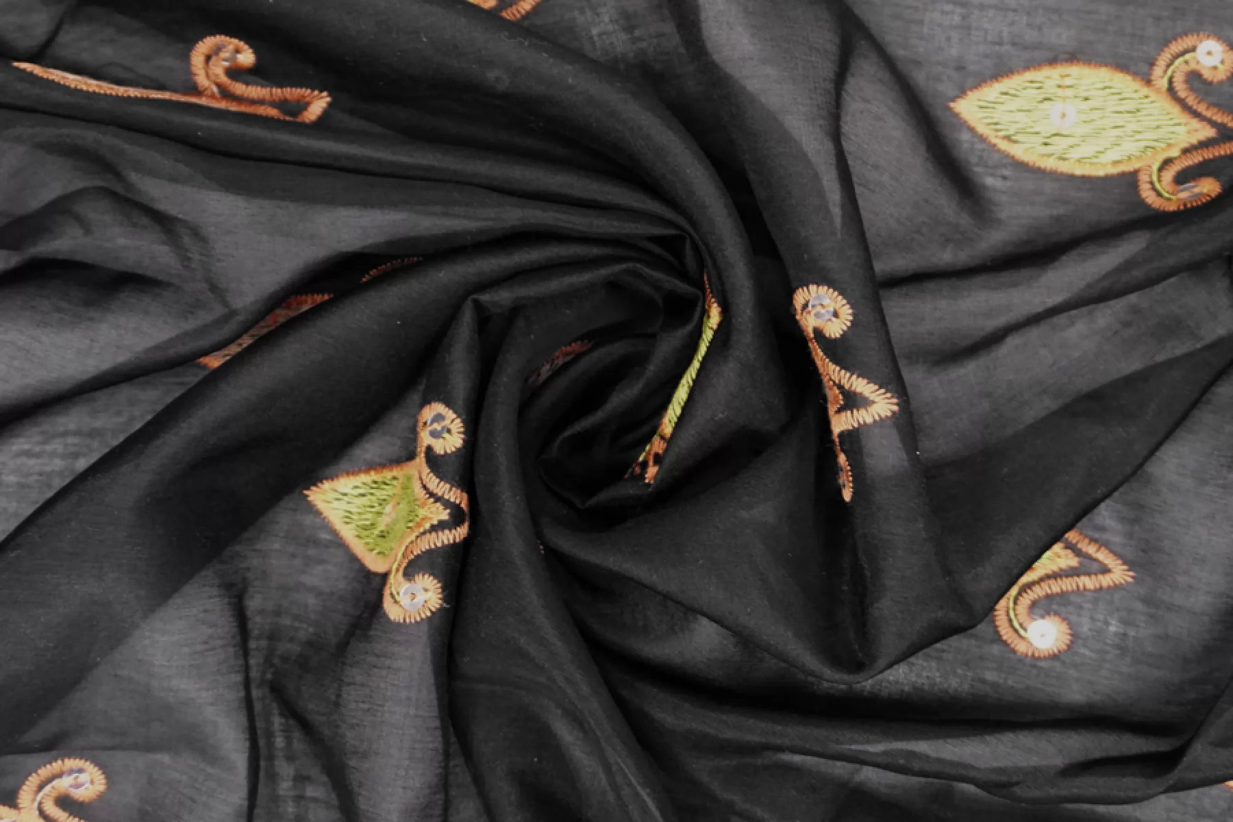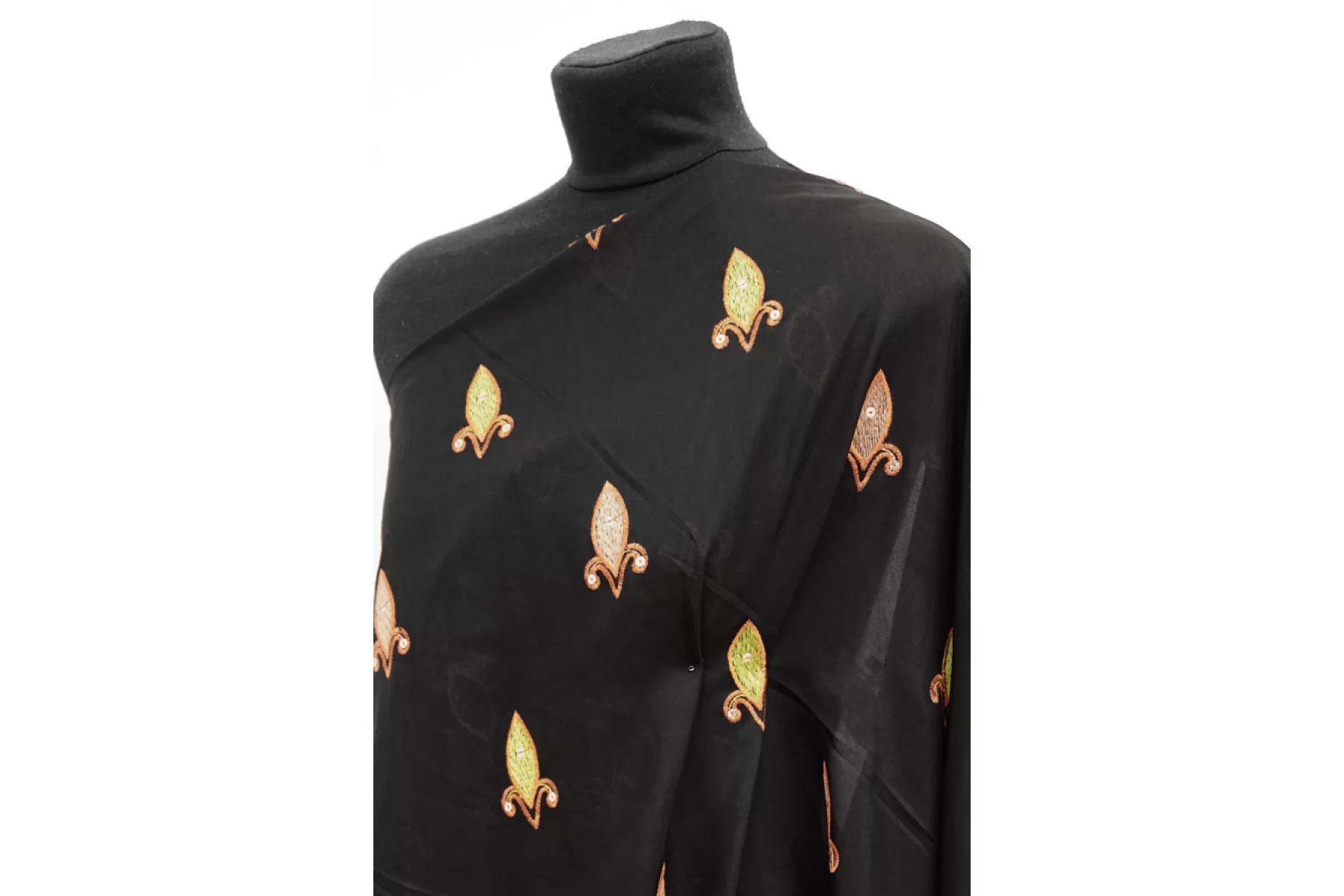 Характеристики: Состав 50% хлопок 50% шелк вышивка 100% полиэстер. Плотность 50 гр/м2. Ширина 130 см.