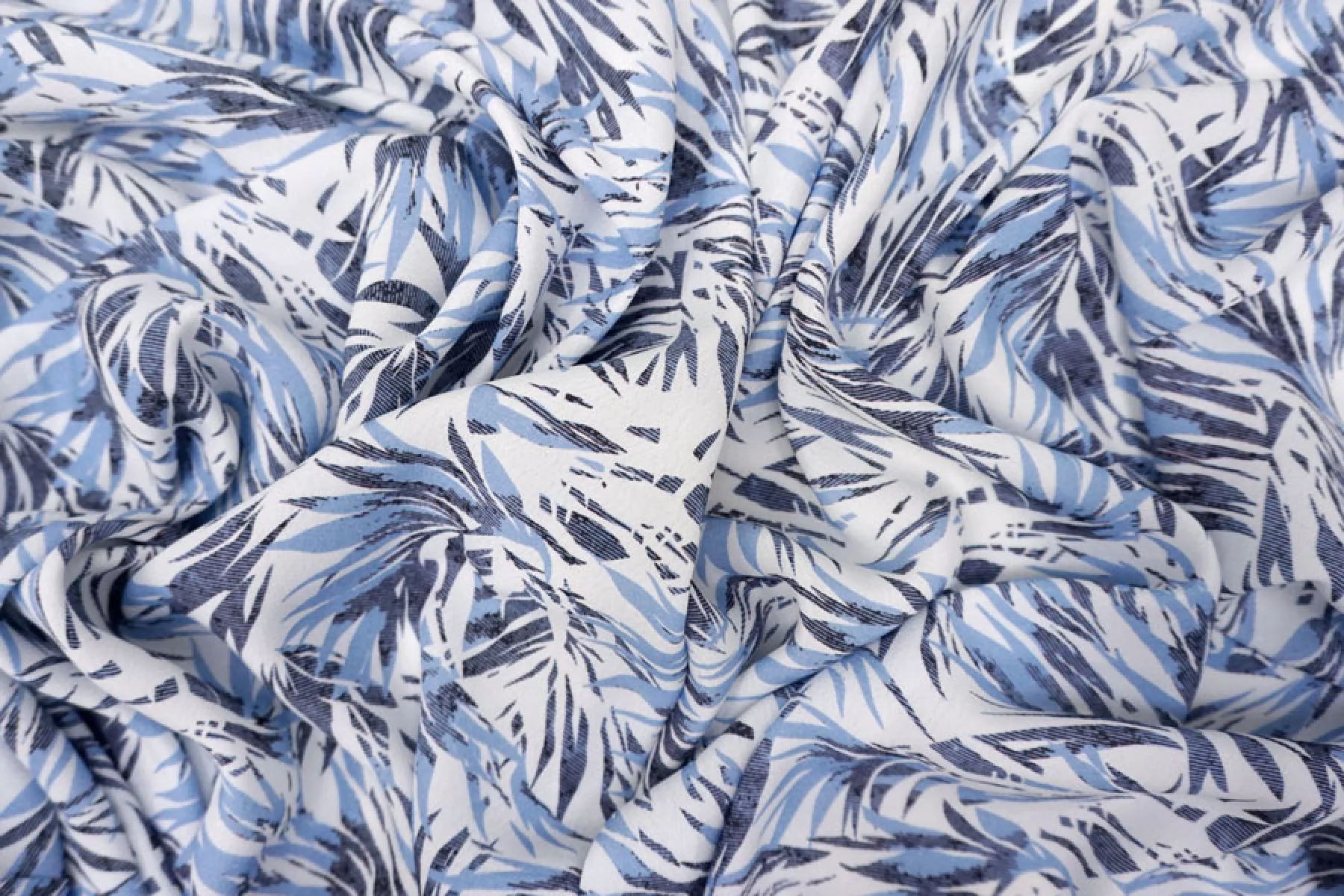 Креповая вискоза Листья Голубые IDT H21/8 Н50 15112466
