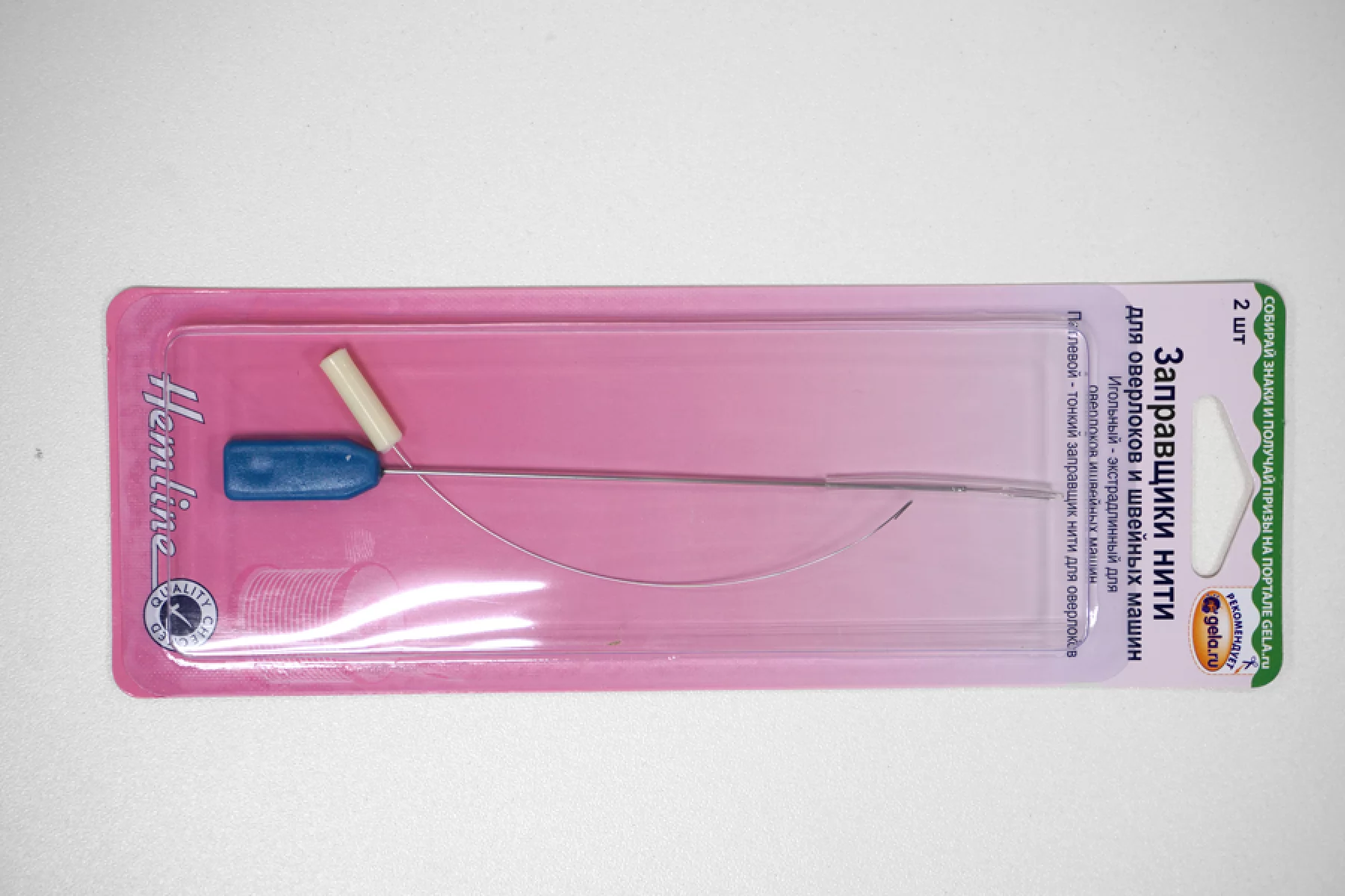 Игольный заправщик - экстра длинный для оверлоков и швейных машин. Петлевой заправщик - тонкий заправщик нити для оверлоков. На конце игольного заправщика - петля нитевдевателя, при помощи которого можно заправить нить в отверстие иглы швейной машины. У петлевого заправщика на кончике изогнутой проволоки петелька, которая удерживает нить и доставляет ее в труднодоступное место оверлока.