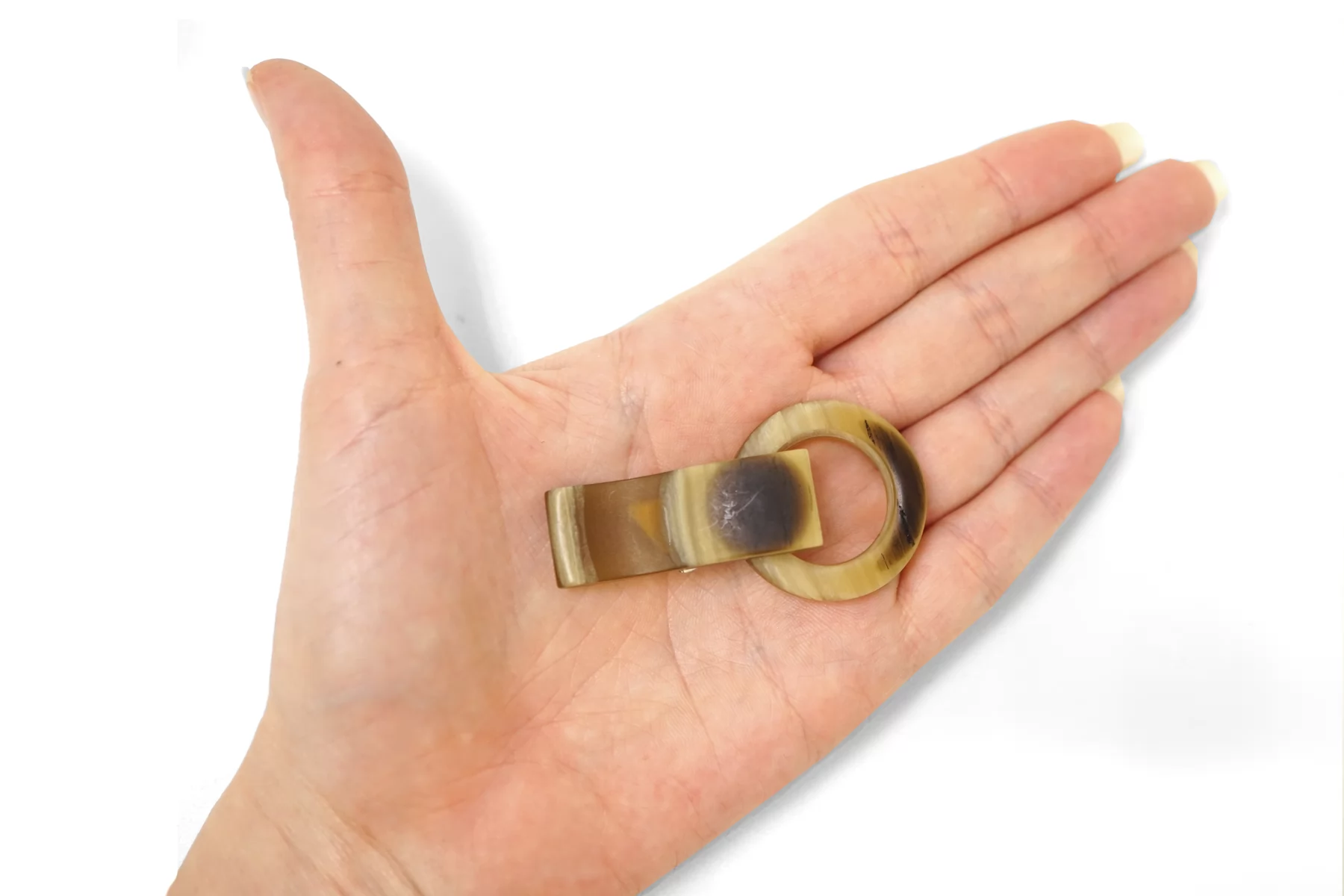 Застёжка шубная под рог. состоит из двух частей -кольцо и клипса.
