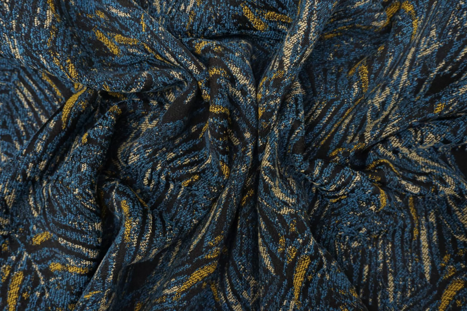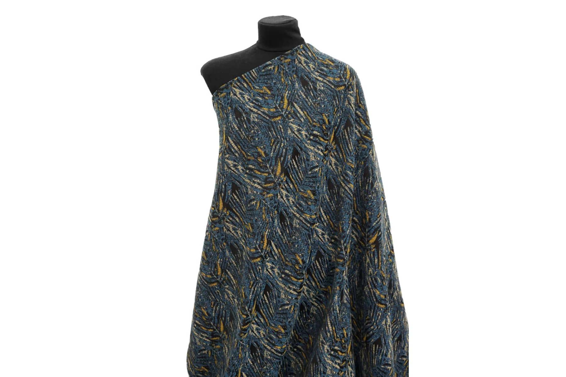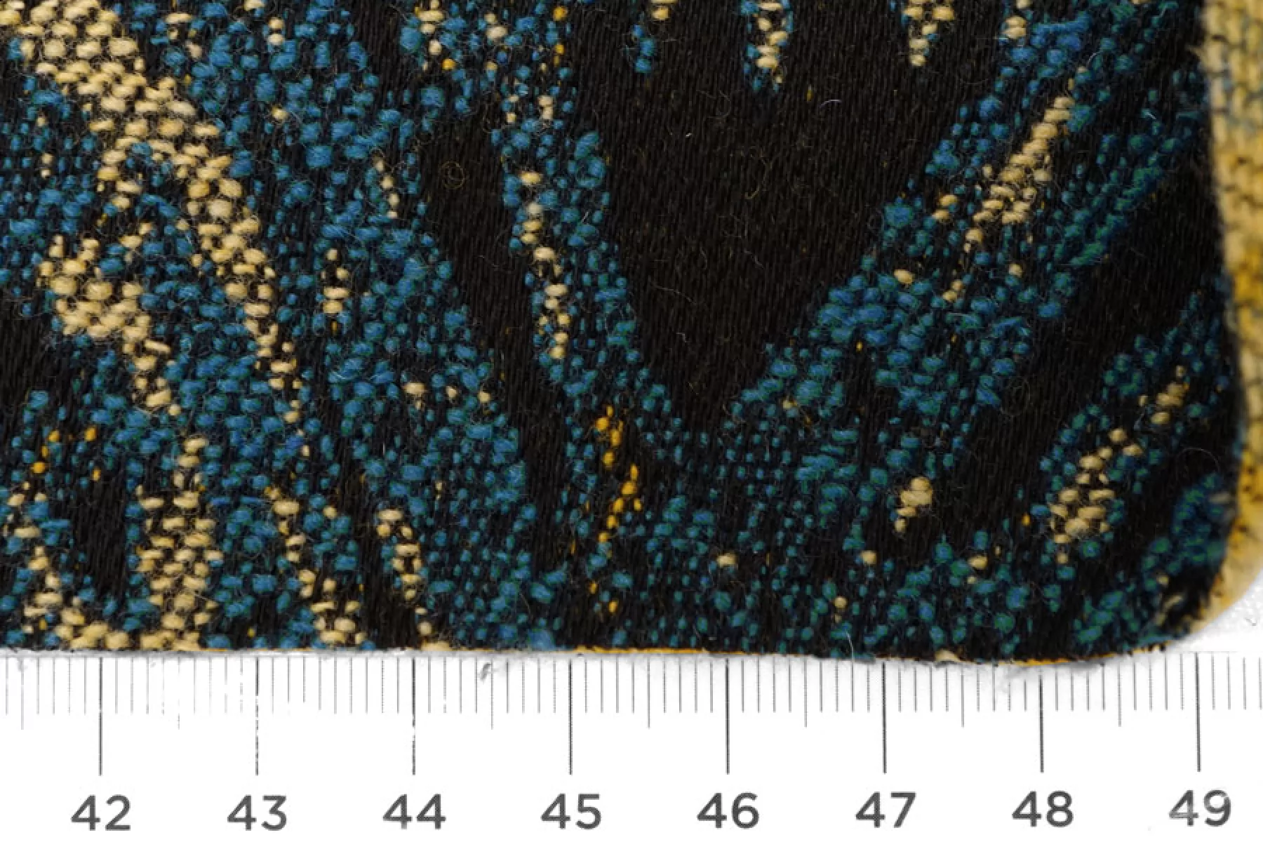 Шикарный шерстяной жаккардовый гобелен в бирюзовом и горчичном оттенке. С мягким начесом с обратной стороны. Практически не колется. Приятный шероховатый с лицевой стороны. Подойдет на костюмные варианты, платья и юбки. Не тянется. Форму держит. Смотрится очень стильно, особенно если сочетать с однотонными материалами. Уход деликатный.