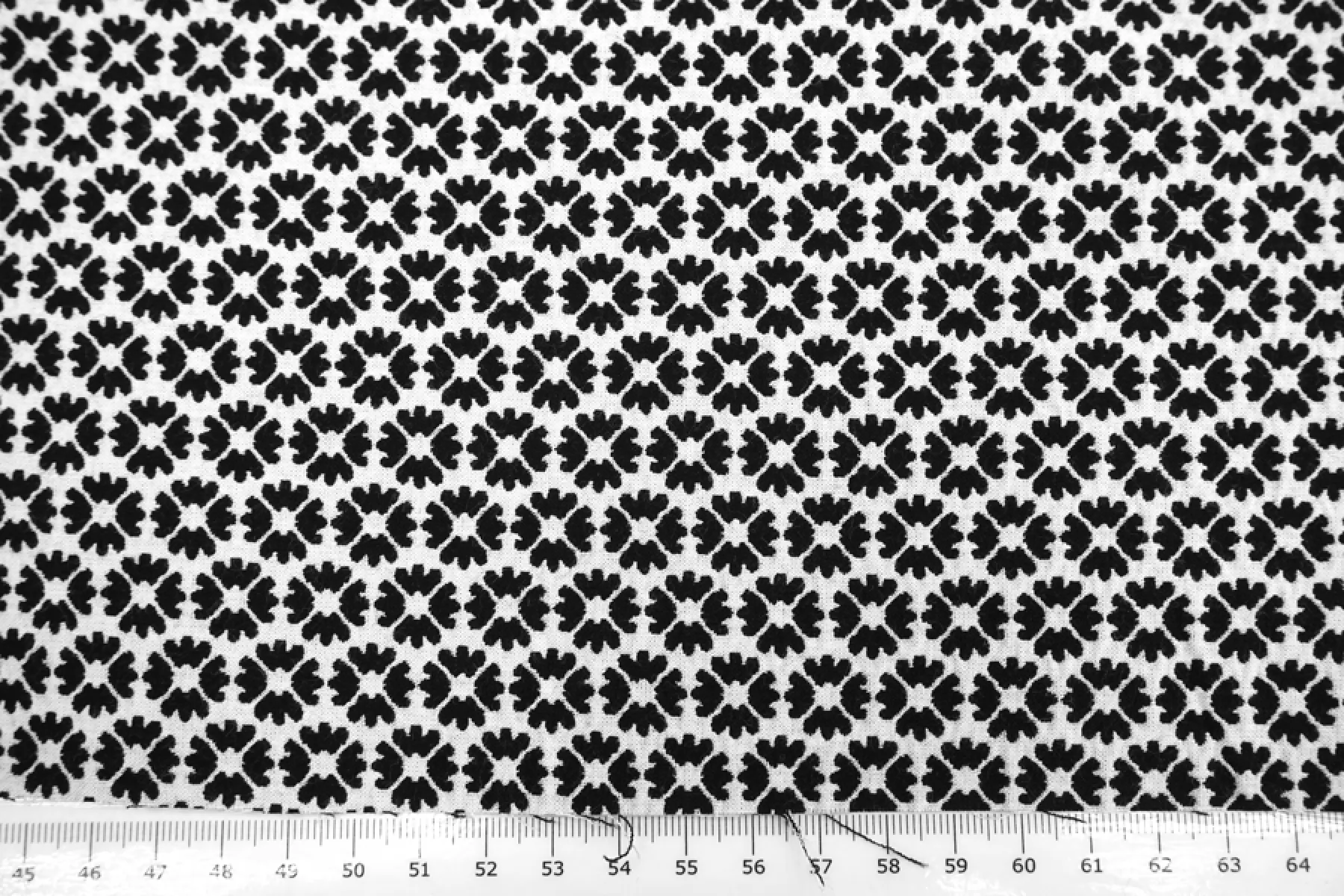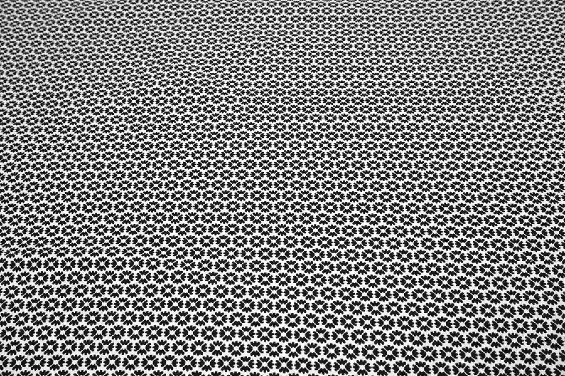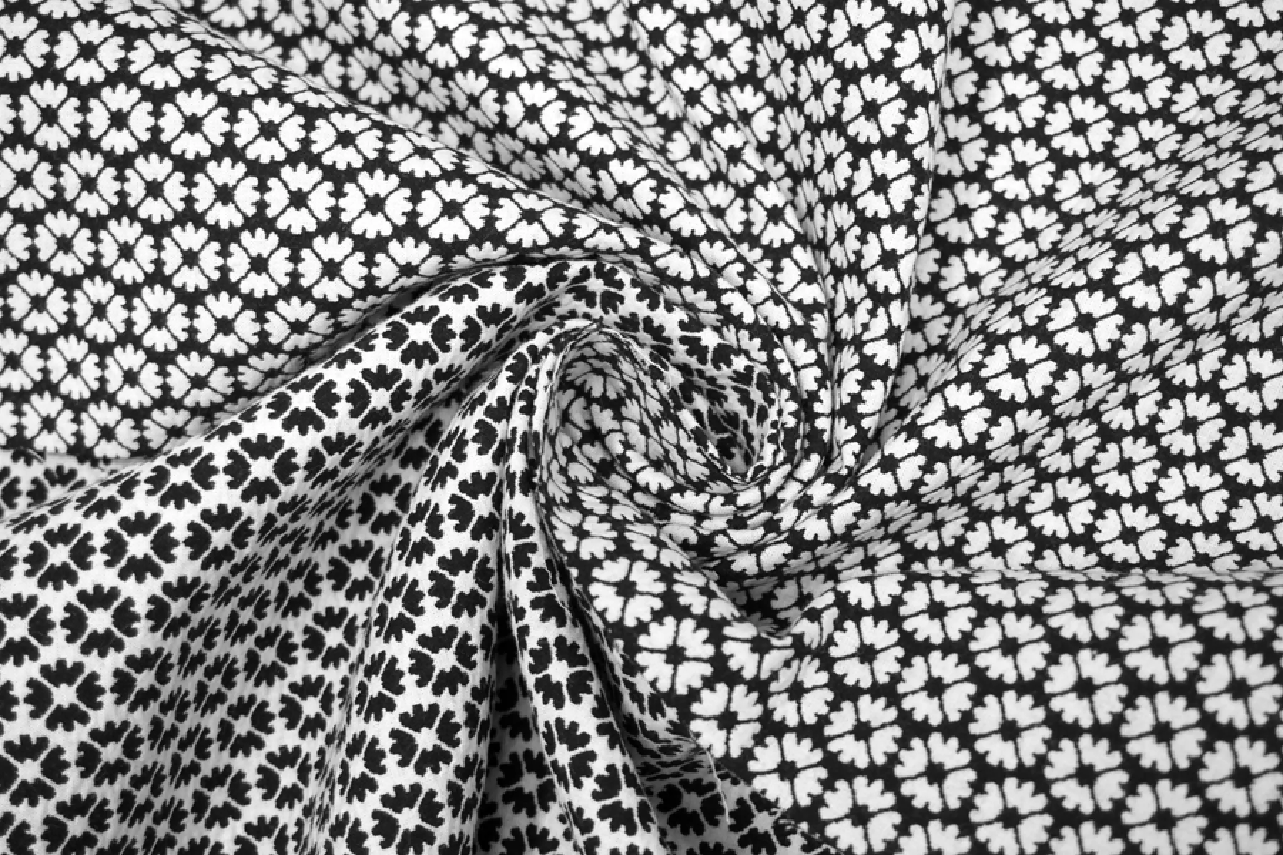 Костюмный хлопковый жаккард с цветочным узором в черно-белом цвете. Материал двусторонний: с одной стороны цветы черные на белом фоне, а с другой - белые на черном. Хорошо драпируется и держит форму. Не просвечивает, сминаемый, но быстро восстанавливается. Подойдет на платья, жакеты, брюки, юбки и костюмы.