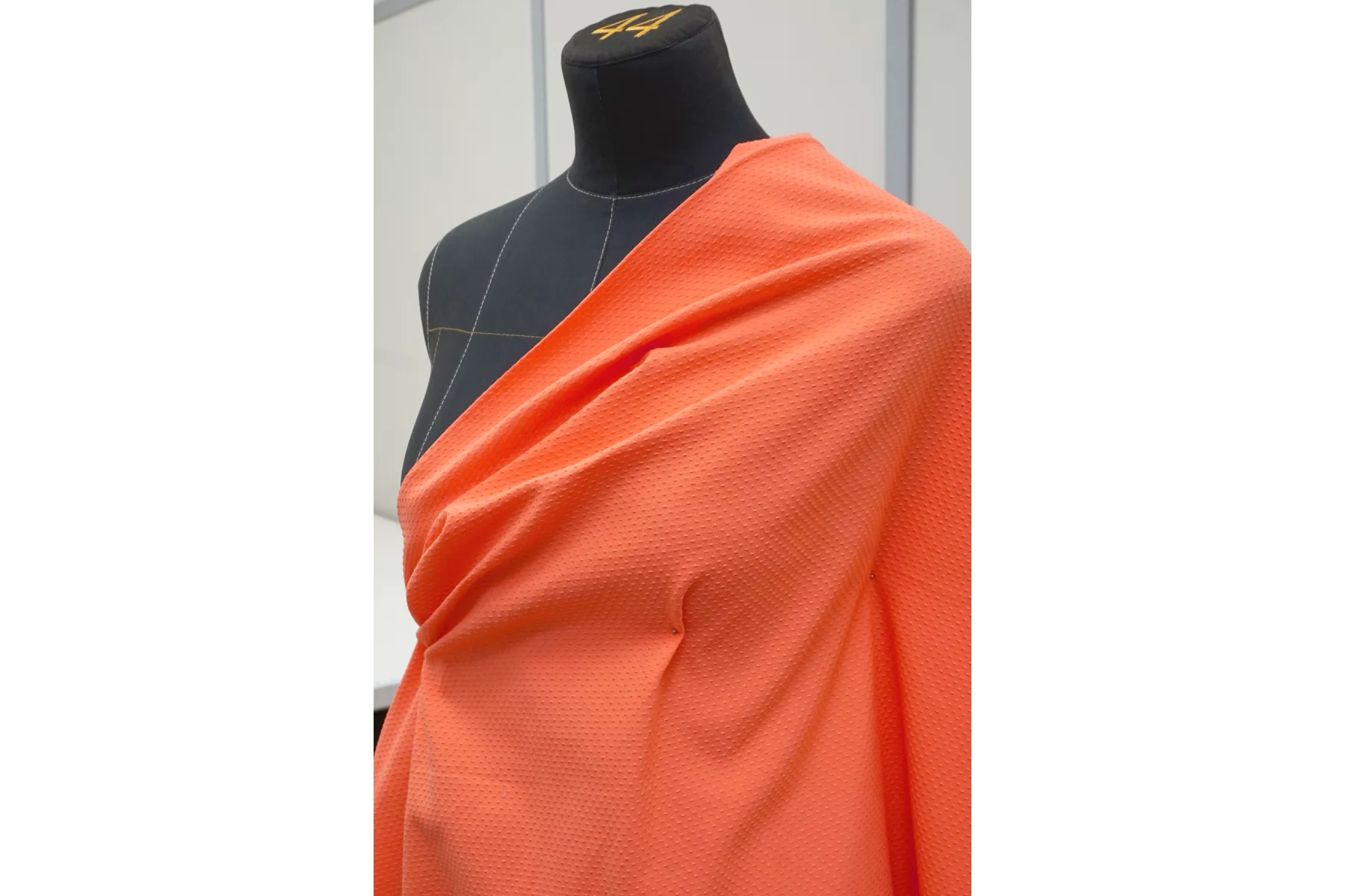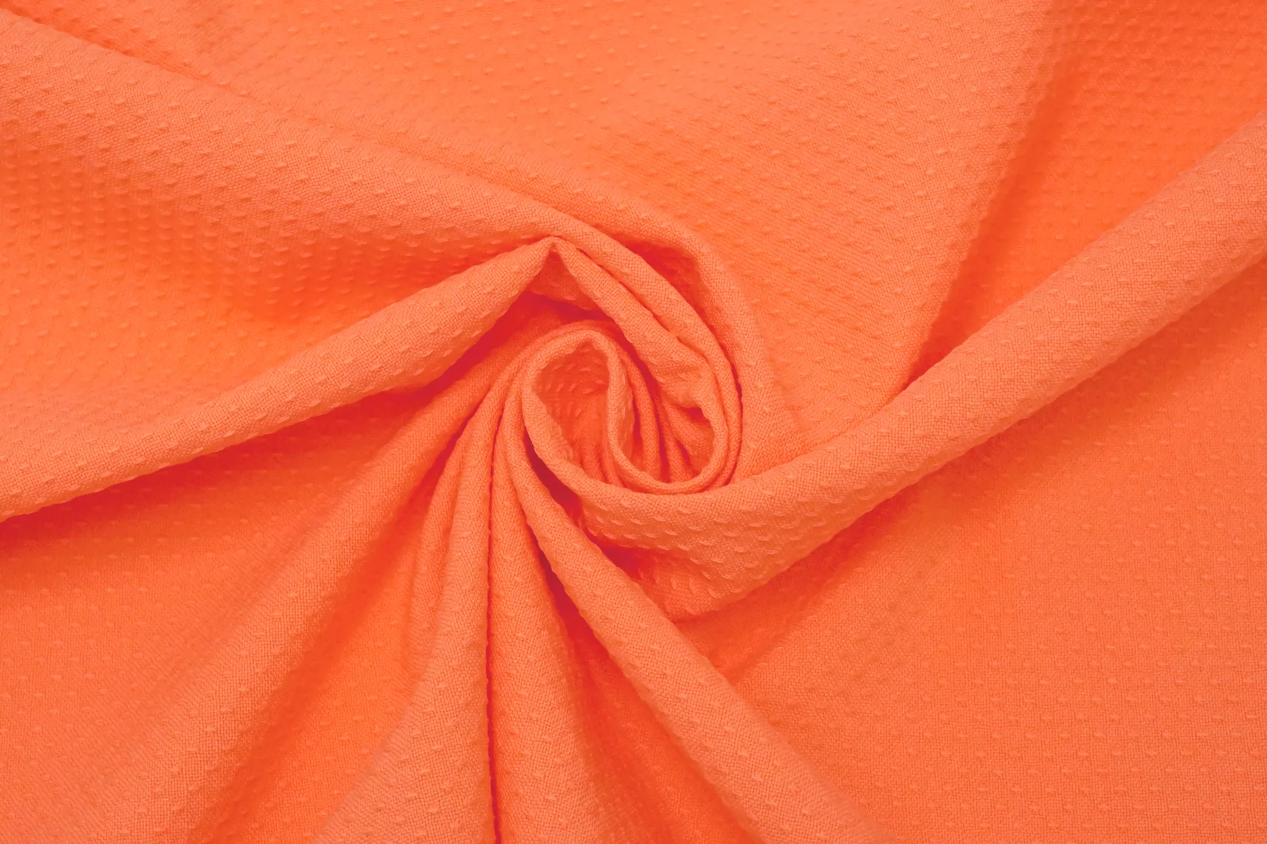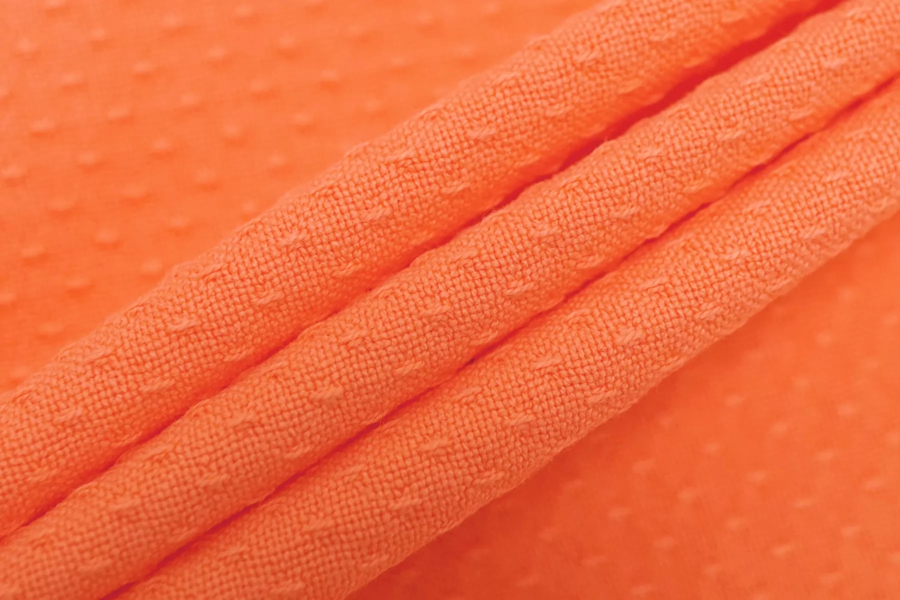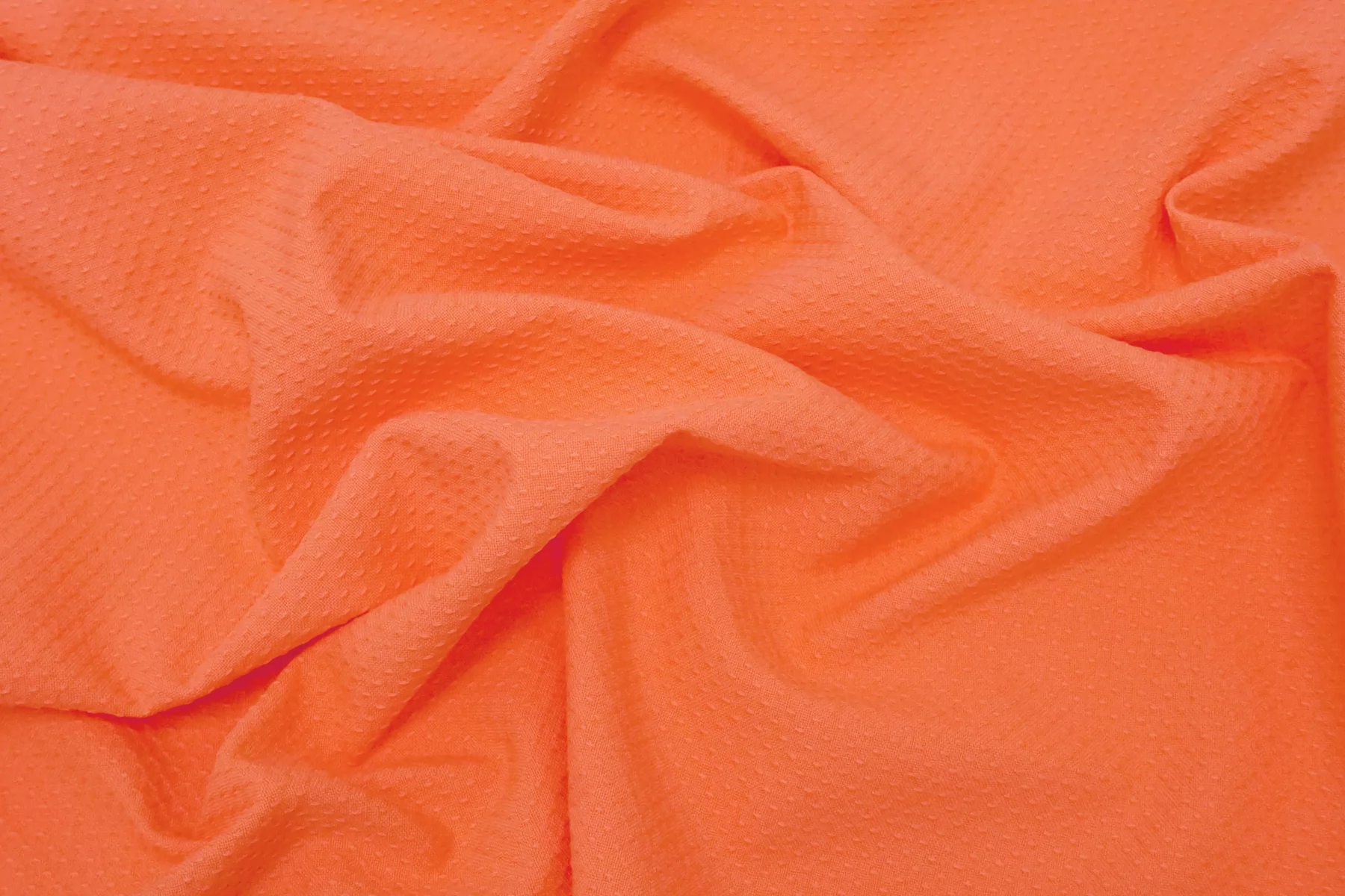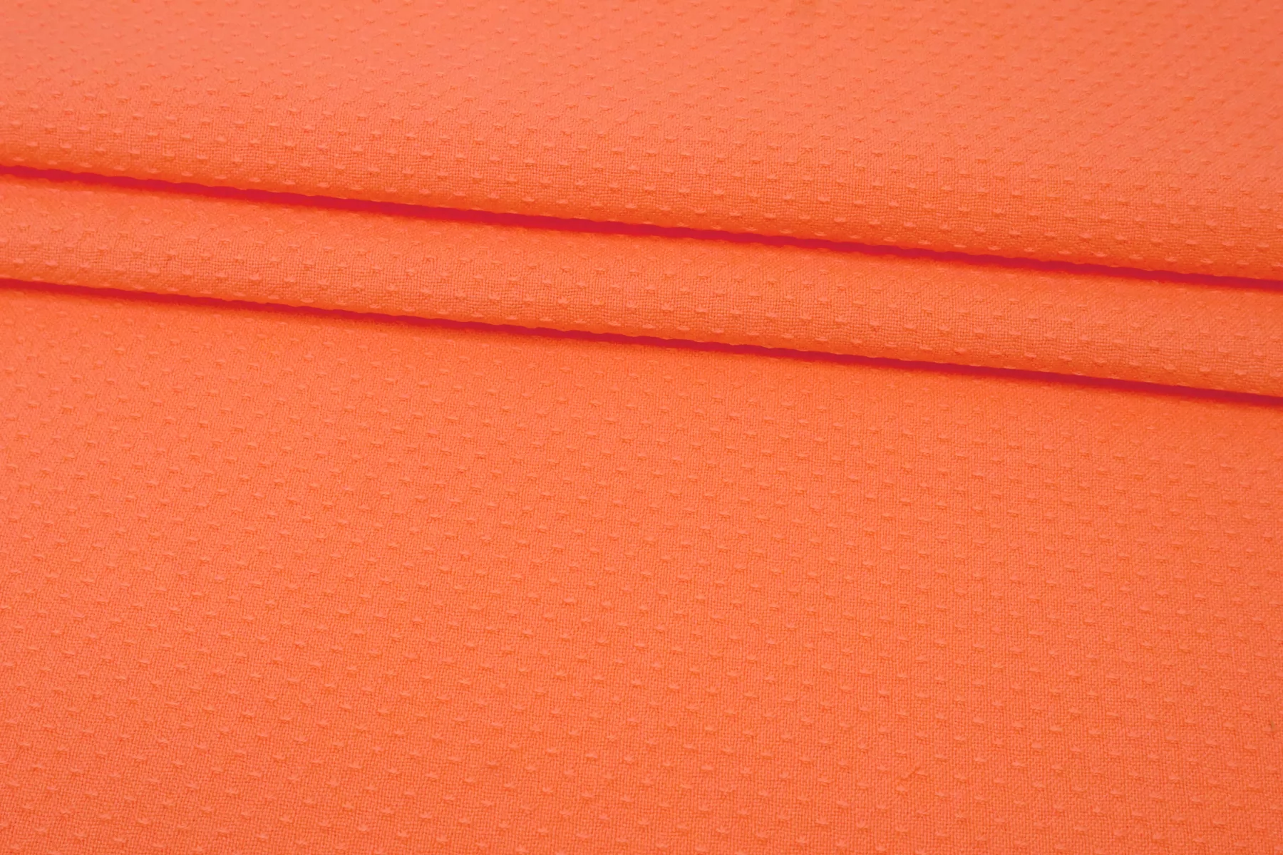 Жаккардовый хлопок в насыщенном, красивом кораллово-персиковом цвете. Материал костюмной плотности, пластичный но держит форму, тактильно рельефный. Немного мнется, тянется, не просвечивает. Отлично подойдет для пошива летних костюмов, жакетов в стиле шанель, платьев и юбок.