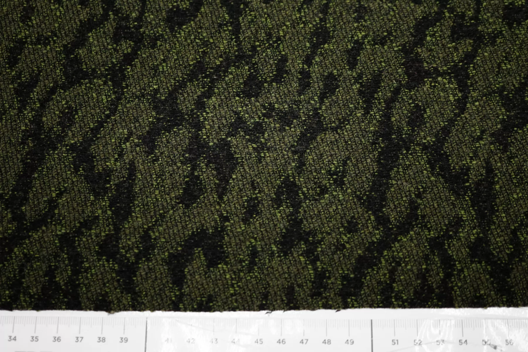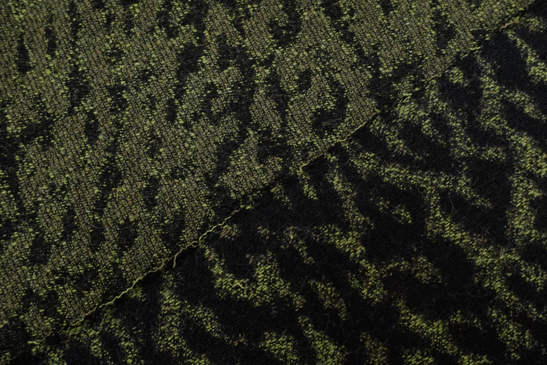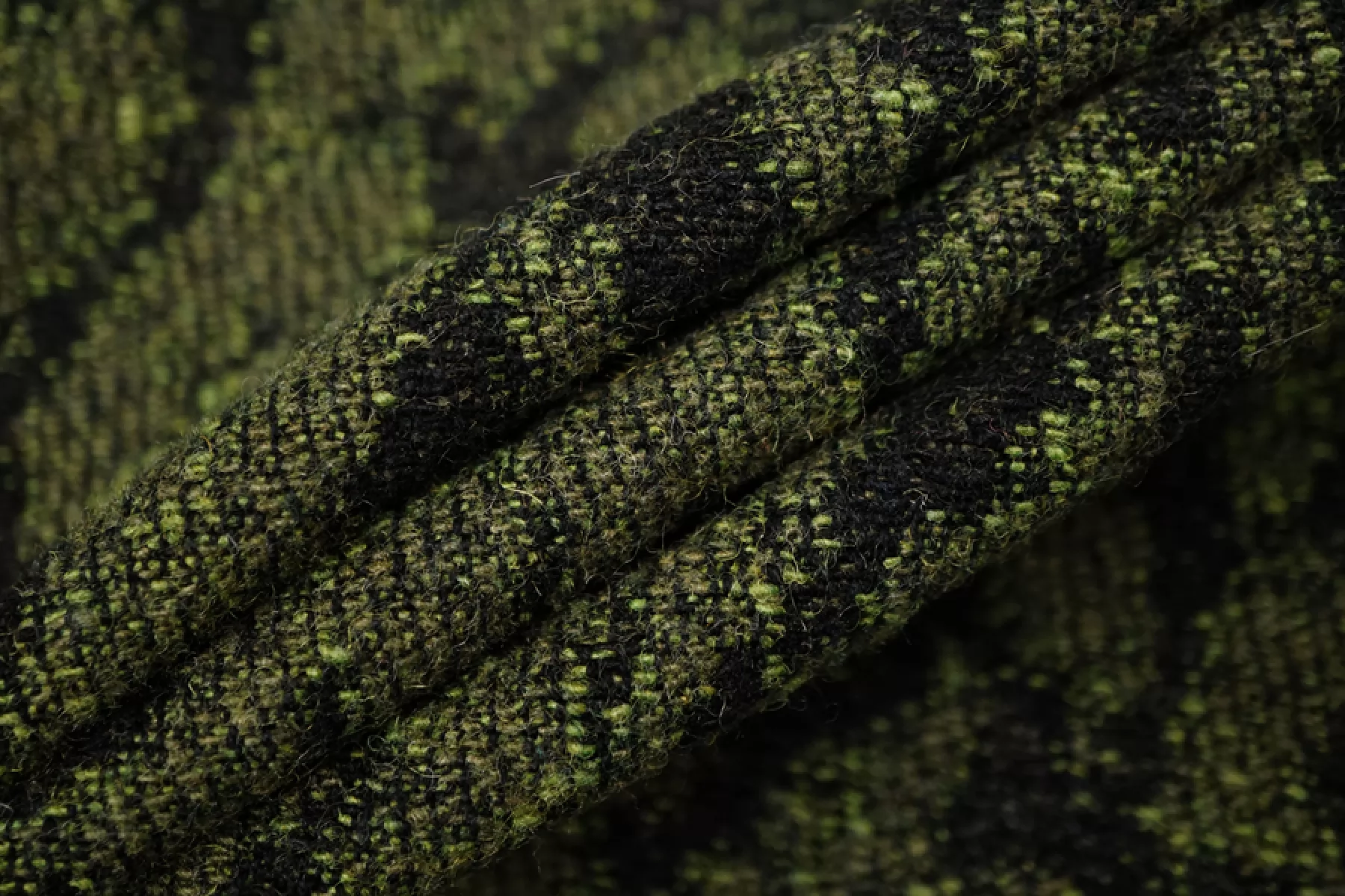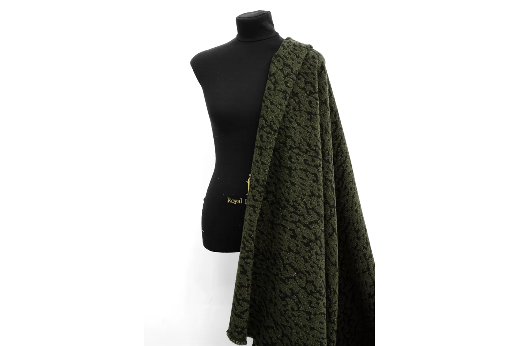 Интересный хлопковый жаккард с небольшой добавкой шерсти, леопардовый узор. Черные нити - хлопок, зеленые - шерсть с акрилом. Держит форму, не просвечивает, не тянется. Тактильно немного суховатый. Подойдет на костюмные варианты, теплые юбки, при желании можно сшить нестандартный бомбер.