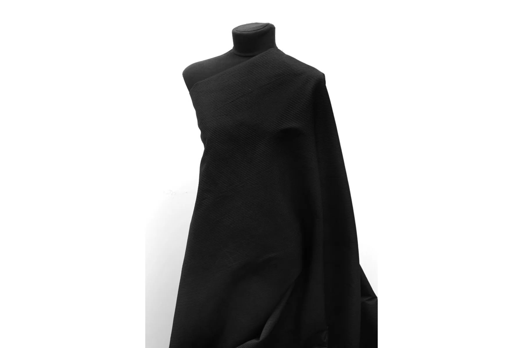 Красивый жаккард из хлопка с шелком костюмной плотности от TOM FORD в классическом черном цвете. Приятный, гладкий и фактурный наощупь. С красивым лоском. Ткань хорошо держит форму. Ткань плотная, не просвечивает. Не тянется. Совсем немножко сминается, но восстанавливается. Подойдет на всю плательно-костюмную группу. Уход деликатный