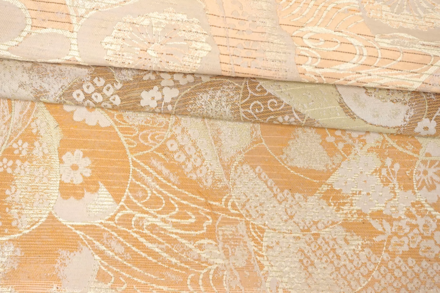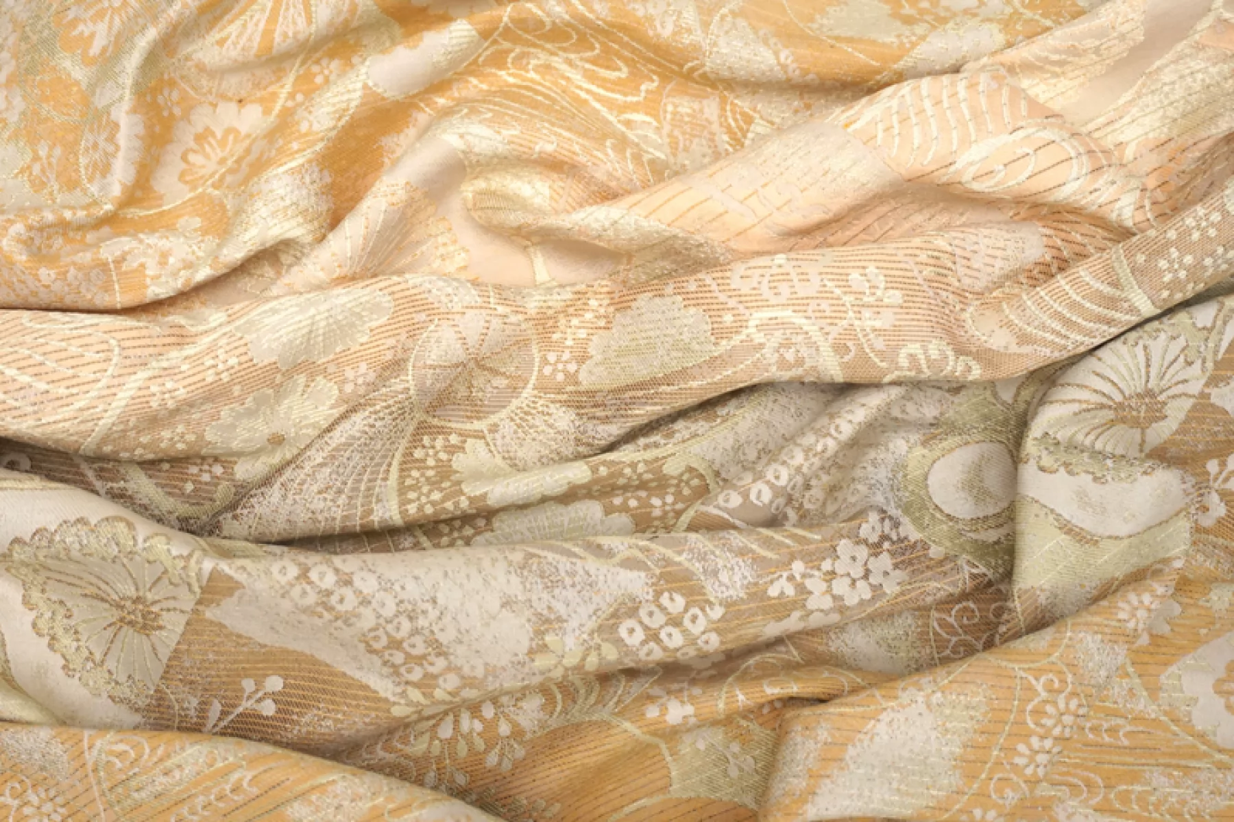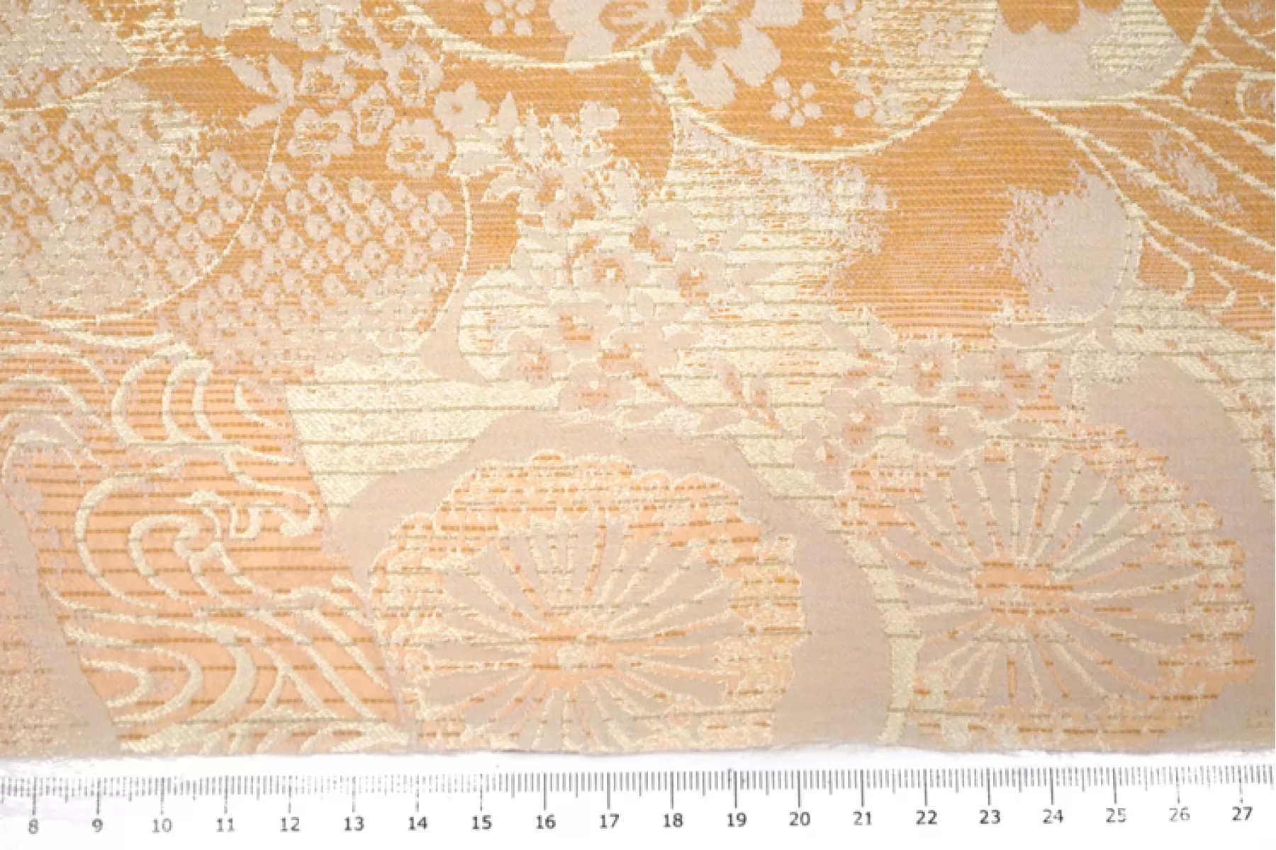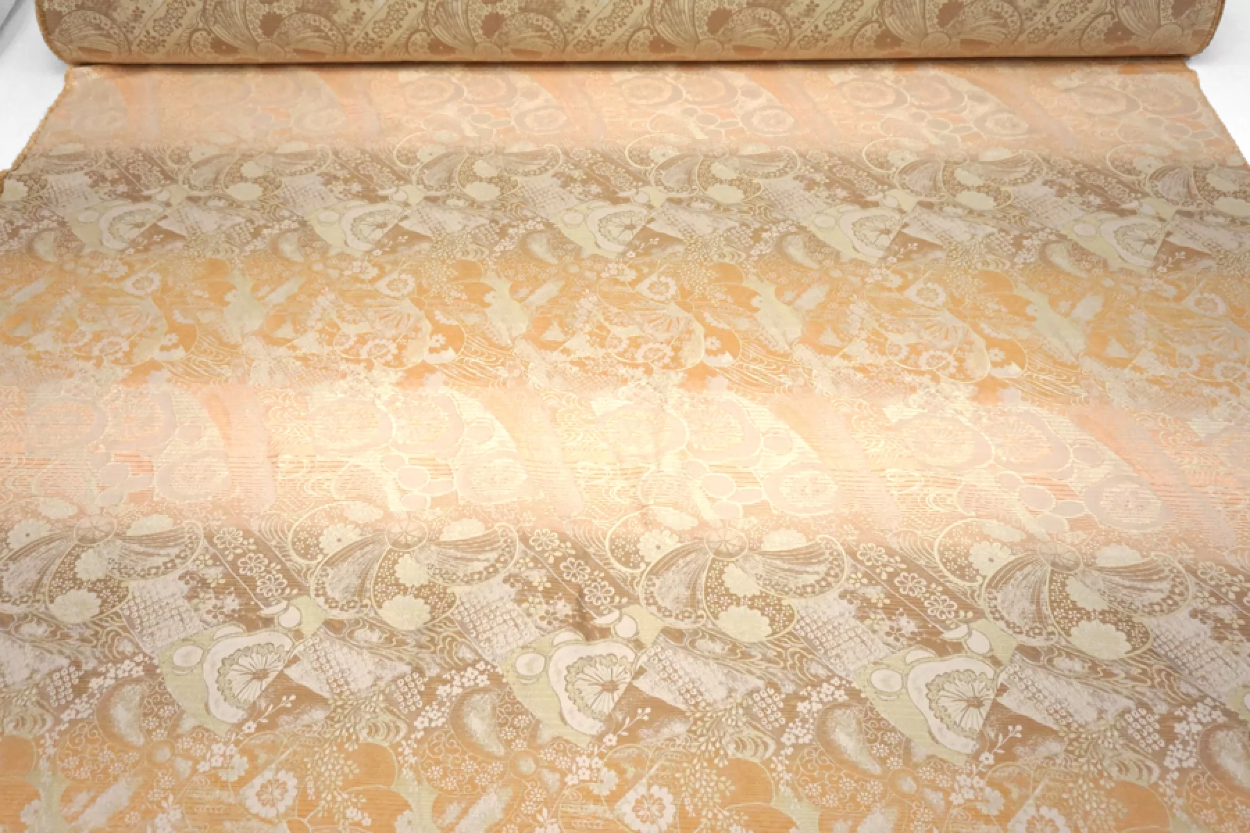 Очень красивый костюмный нарядный жаккард из полиэстера в песочно-коричневой цветовой гамме. У материала есть рапорт в градиенте вдоль длины - 56 см. Учитывайте при раскрое. Смотрится очень красиво! Материал обладает красивым лоском, цветочный узор выработан нитью светлого бежево-фисташкового оттенка. Плотность у материала очень хорошая, отлично держит форму. Не тянется и не просвечивает. Сминается, но восстанавливается. Красив в складке. Шикарный вариант на нарядные отрезные платья, жакеты, костюмные варианты, юбки и не только.