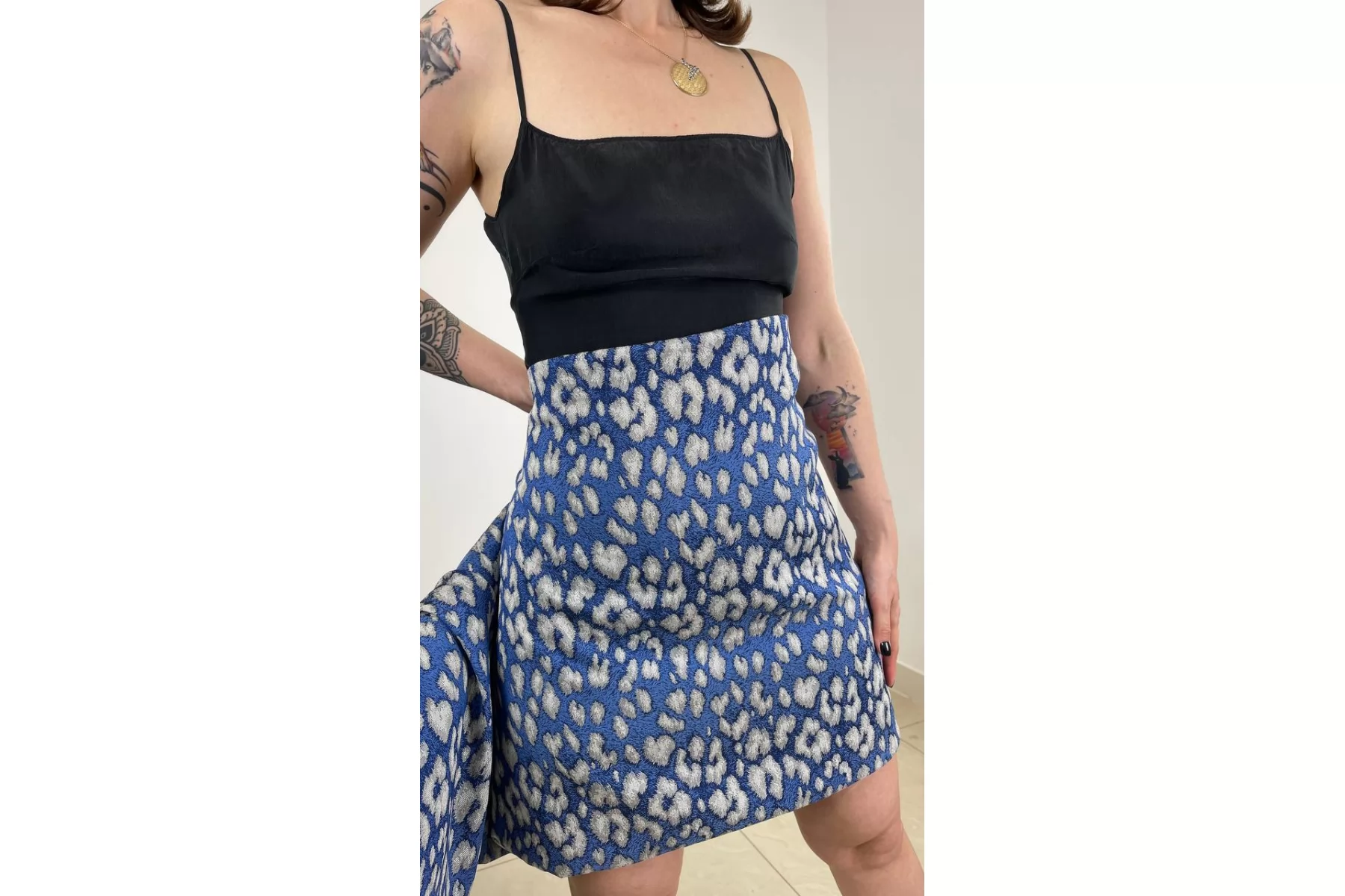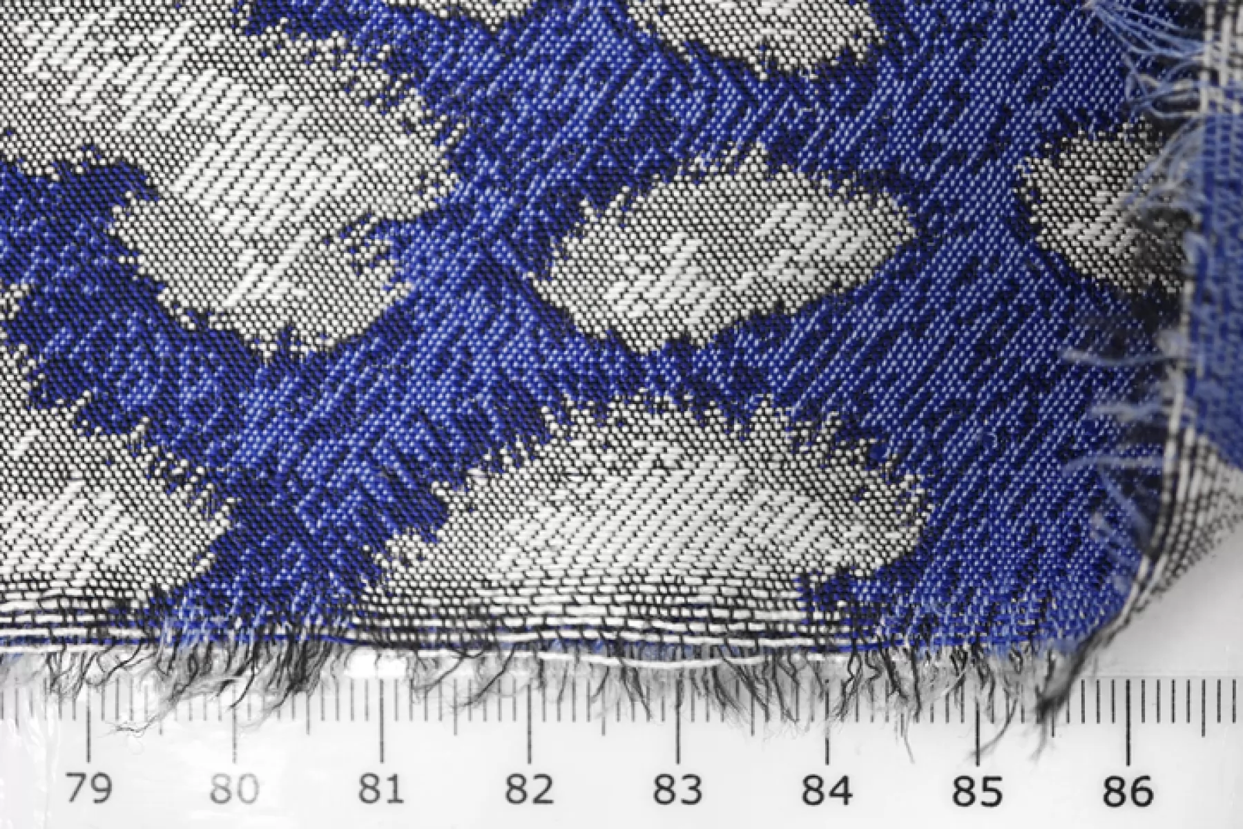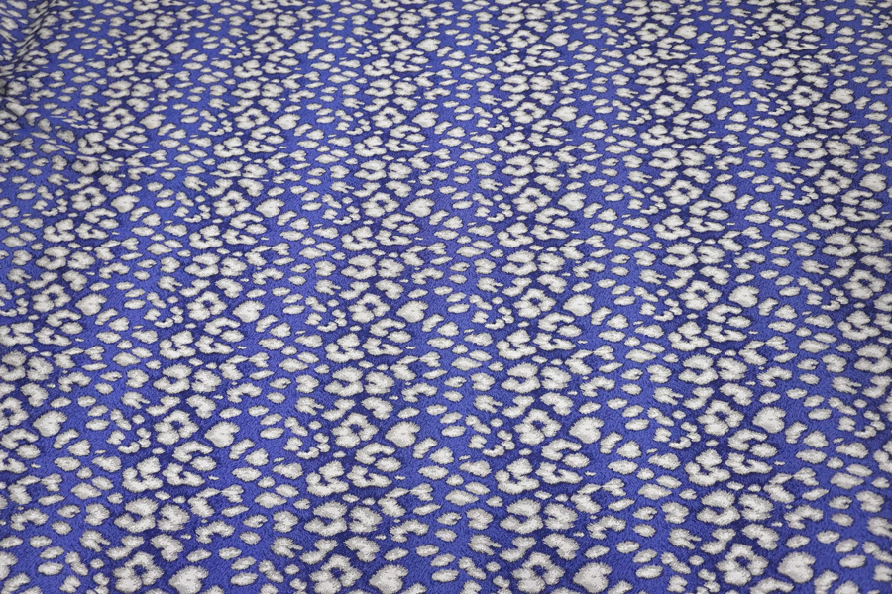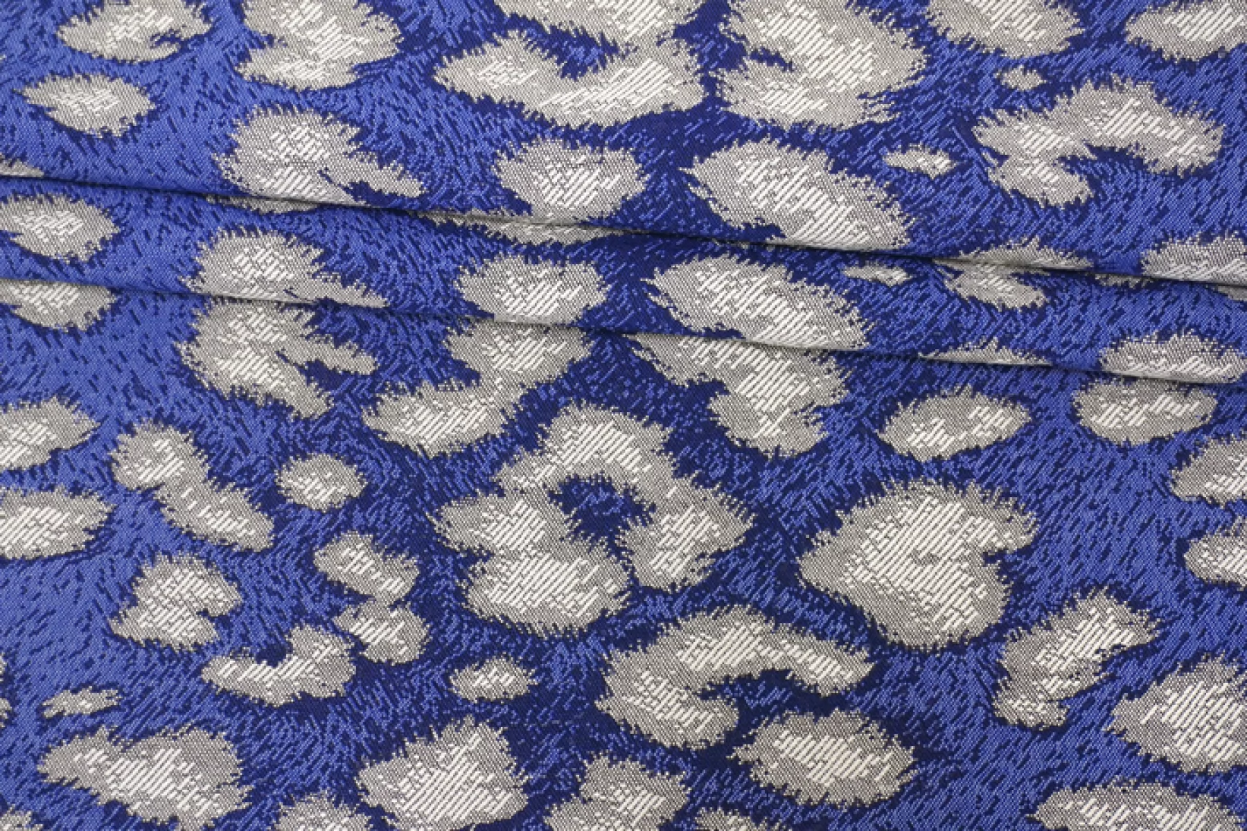 Классный плательный жаккард Roberto Cavalli из хлопка с полиэстером, с анималистичным узором в виде пятен леопарда серых тонов на сине-фиолетовом фоне светлого и темного оттенков. Шероховатый тактильно. Плотный. Не просвечивает. Не тянется. Не мнется. Отличный вариант на платья, жакеты, костюмы, бомберы, юбки и не только. Учитывайте усадку.