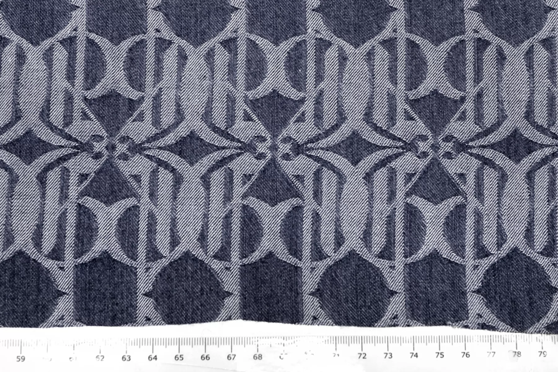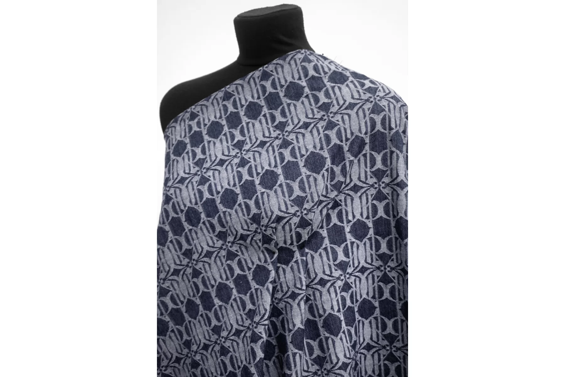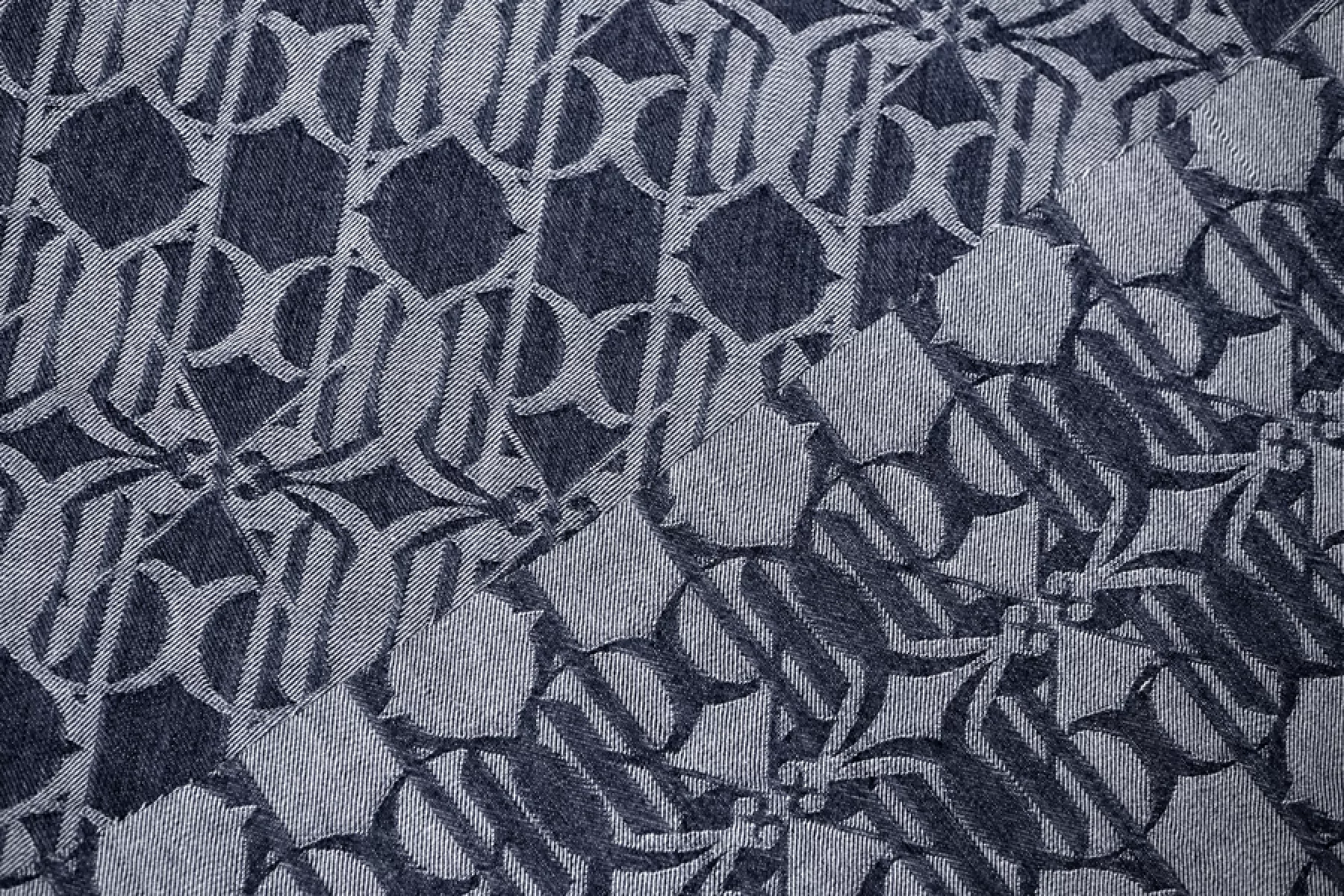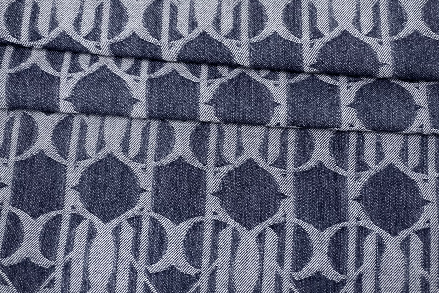 Красивый жаккардовый темно-синий джинс с абстрактным орнаментом, выработанным белой нитью. Тактильно мягкий и приятный, совсем слегка шероховата - ощущается плетение. Не просвечивает. Достаточно плотненький, при этом пластичный. Хорошо тянется за счет эластана. Неплохо держит форму и хорошо драпируется. Отличный вариант на пошив жакета, бомбера, юбки, платья и не только. Материал слегка красится, необходима предварительная стирка.