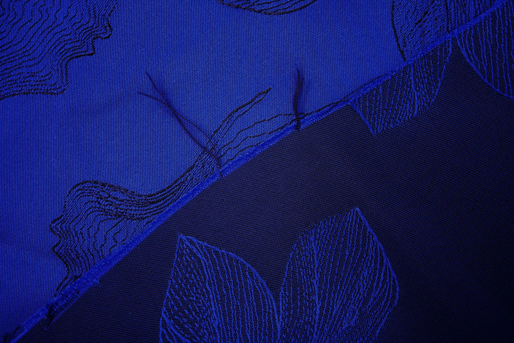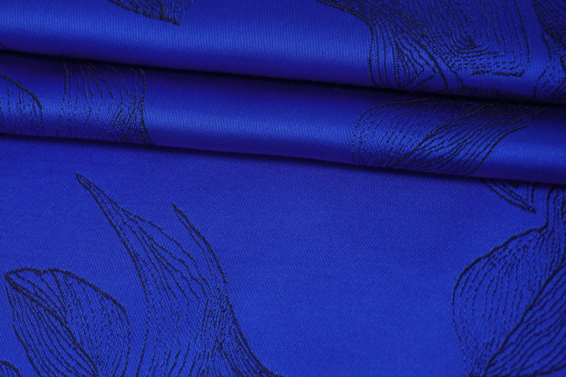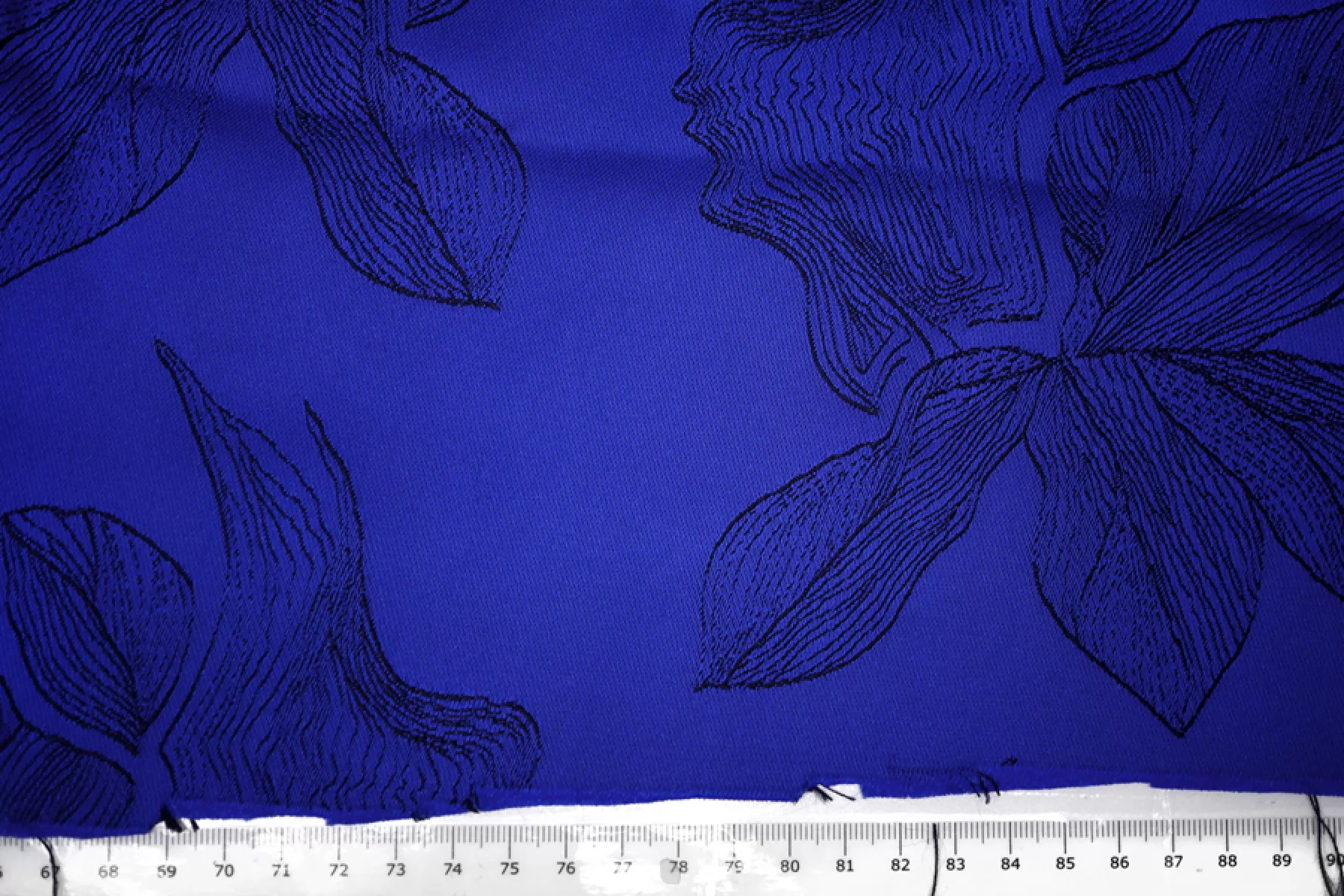 Прекрасная жаккардовая вискоза от FORTE FORTE синего оттенка с абстрактным цветочным рисунком черно-синей нитью. Очень приятная, мягкая, пластичная и скользящая. Обратная сторона шероховатая. Просвечивает силуэт, если смотреть на просвет. Не тянется. С приятным лоском. Слегка сминается. Красива в складках. Подойдет на платья, юбки, кимоно и одежду в пижамном стиле. Уход за материалом деликатный. При необходимости используйте подкладочный материал. Учитываем усадку порядка 5-10%.