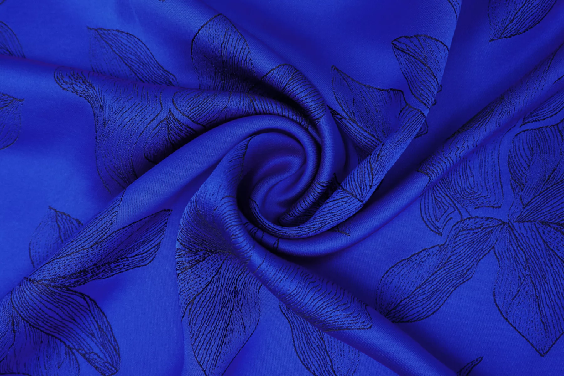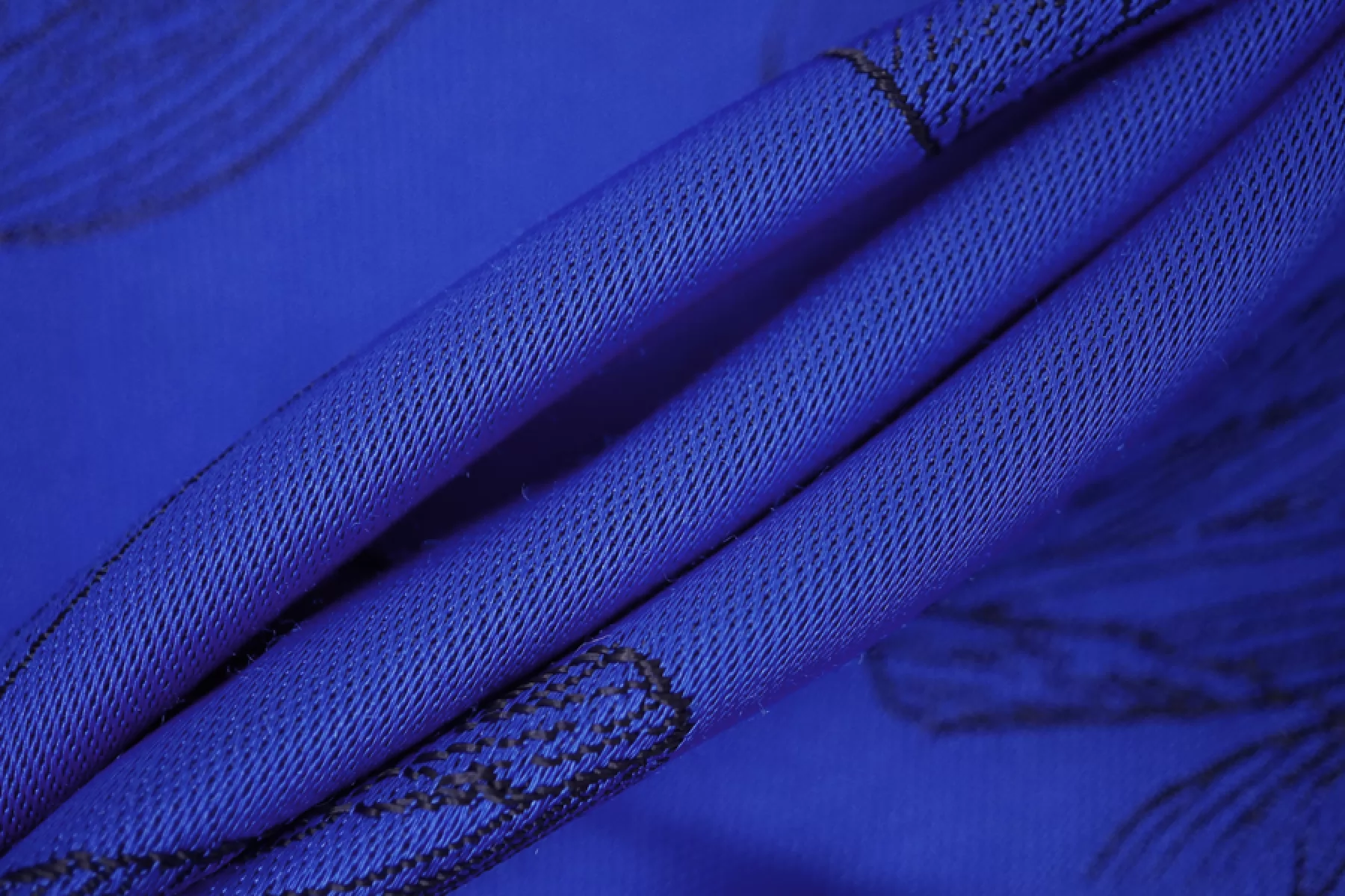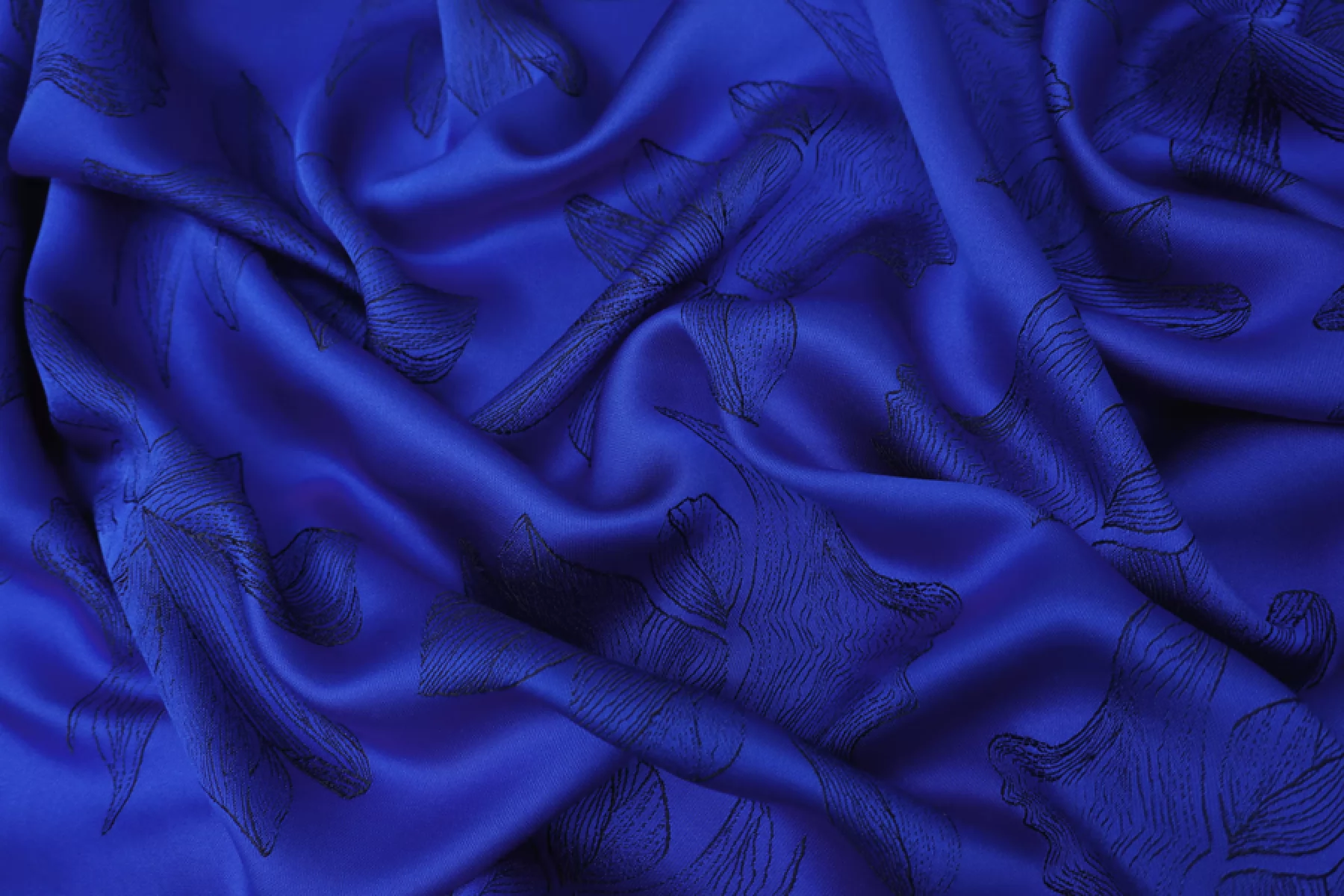 Прекрасная жаккардовая вискоза от FORTE FORTE синего оттенка с абстрактным цветочным рисунком черно-синей нитью. Очень приятная, мягкая, пластичная и скользящая. Обратная сторона шероховатая. Просвечивает силуэт, если смотреть на просвет. Не тянется. С приятным лоском. Слегка сминается. Красива в складках. Подойдет на платья, юбки, кимоно и одежду в пижамном стиле. Уход за материалом деликатный. При необходимости используйте подкладочный материал. Учитываем усадку порядка 5-10%.