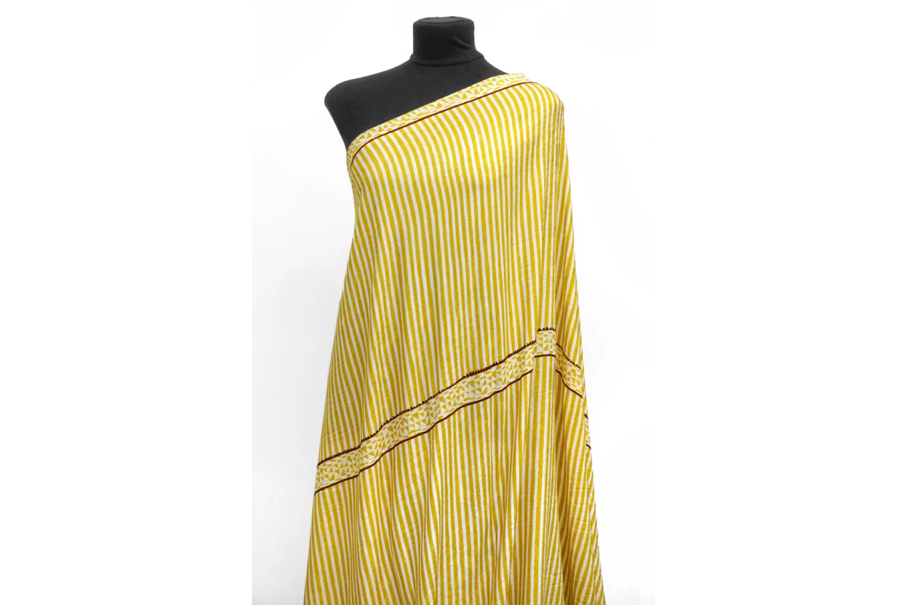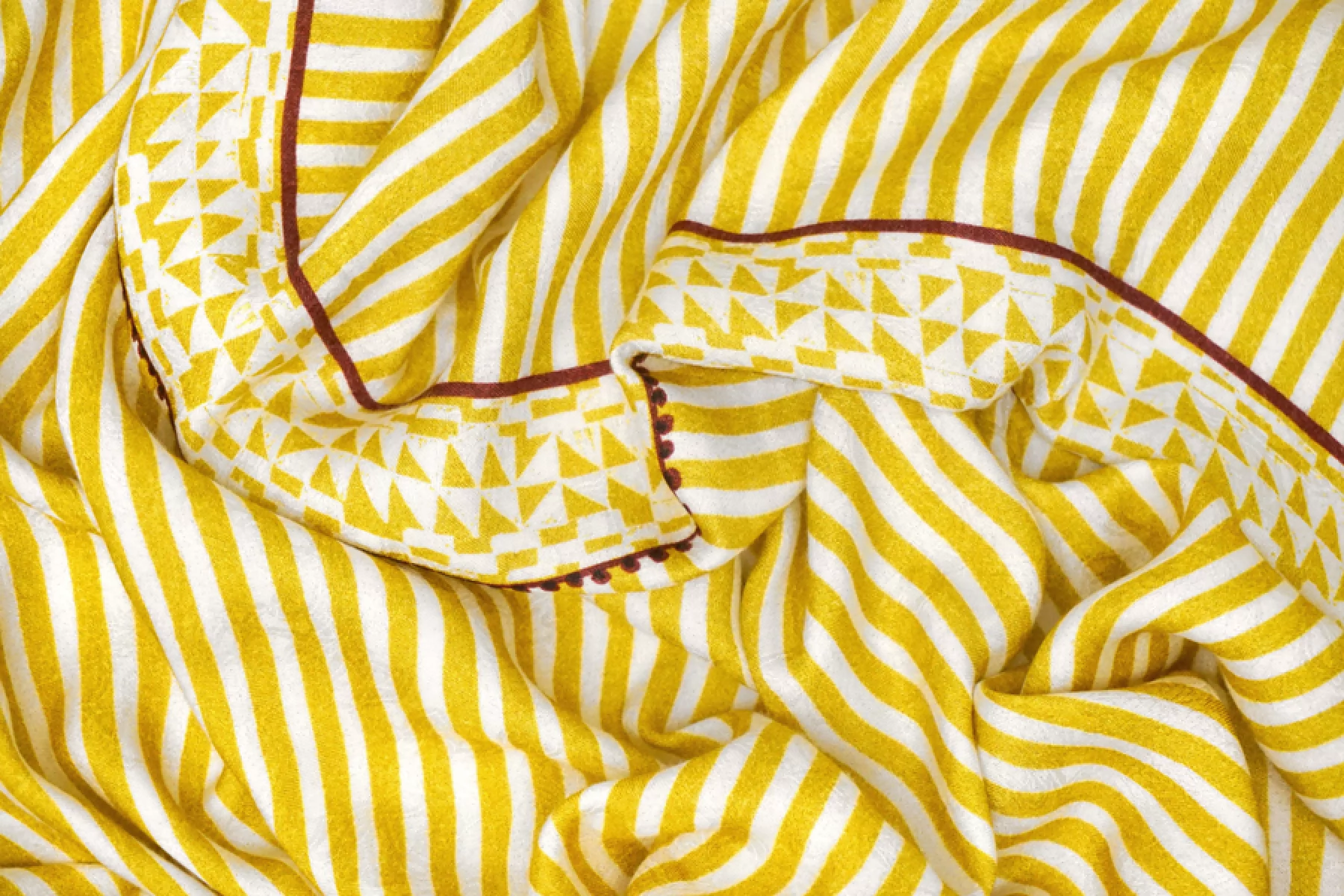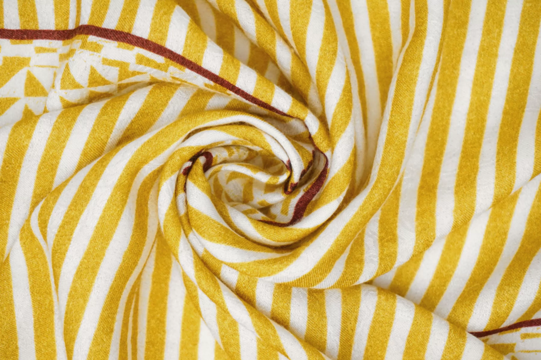 ВНИМАНИЕ! Ткань купонная, длина купона 46 см, цена за купон - 635 руб. Классная плательно-блузочная вискоза с жаккардовой цветочной выработкой по всему полотну с геометричным и в полоску принтом в оттенках молочного, горчичного (уходящий в горчично-зеленый) и темно-винного оттенков . Тактильно приятная, очень мягкая и пластичная. Практически не просвечивает, но может быть заметен силуэт темного на просвет. Не тянется. Форму не держит. Шьем платья, блузки, юбки, а также одежду в пижамном стиле. Обязательно учитывайте возможную усадку порядка 5-10%