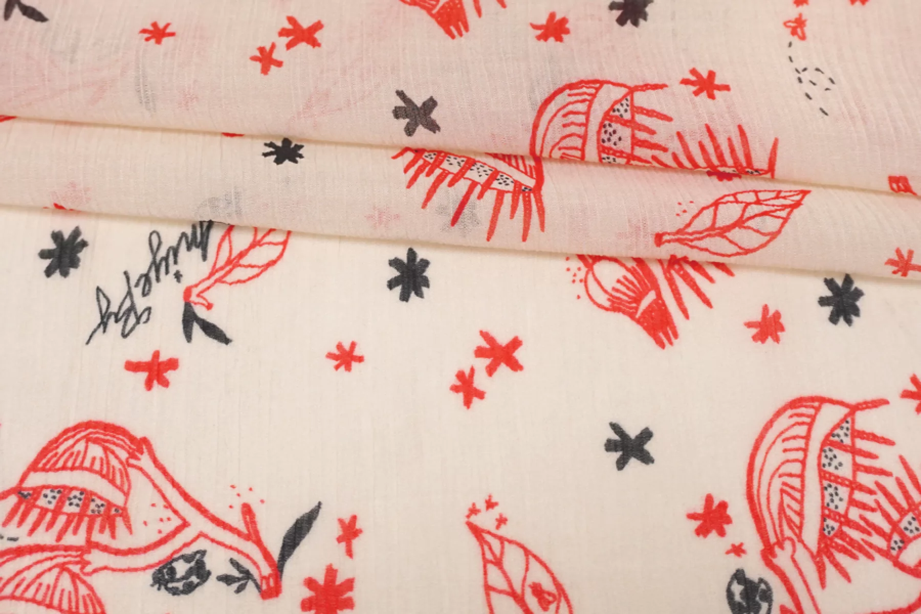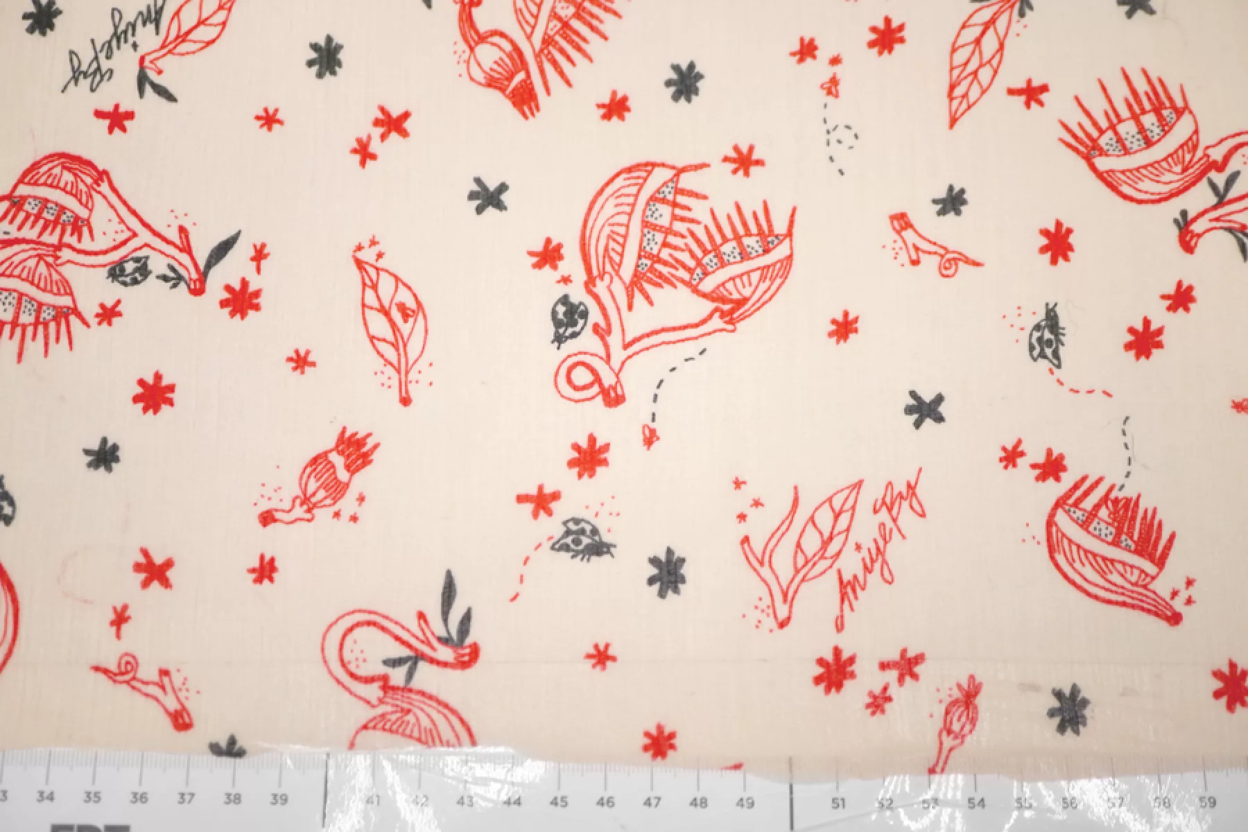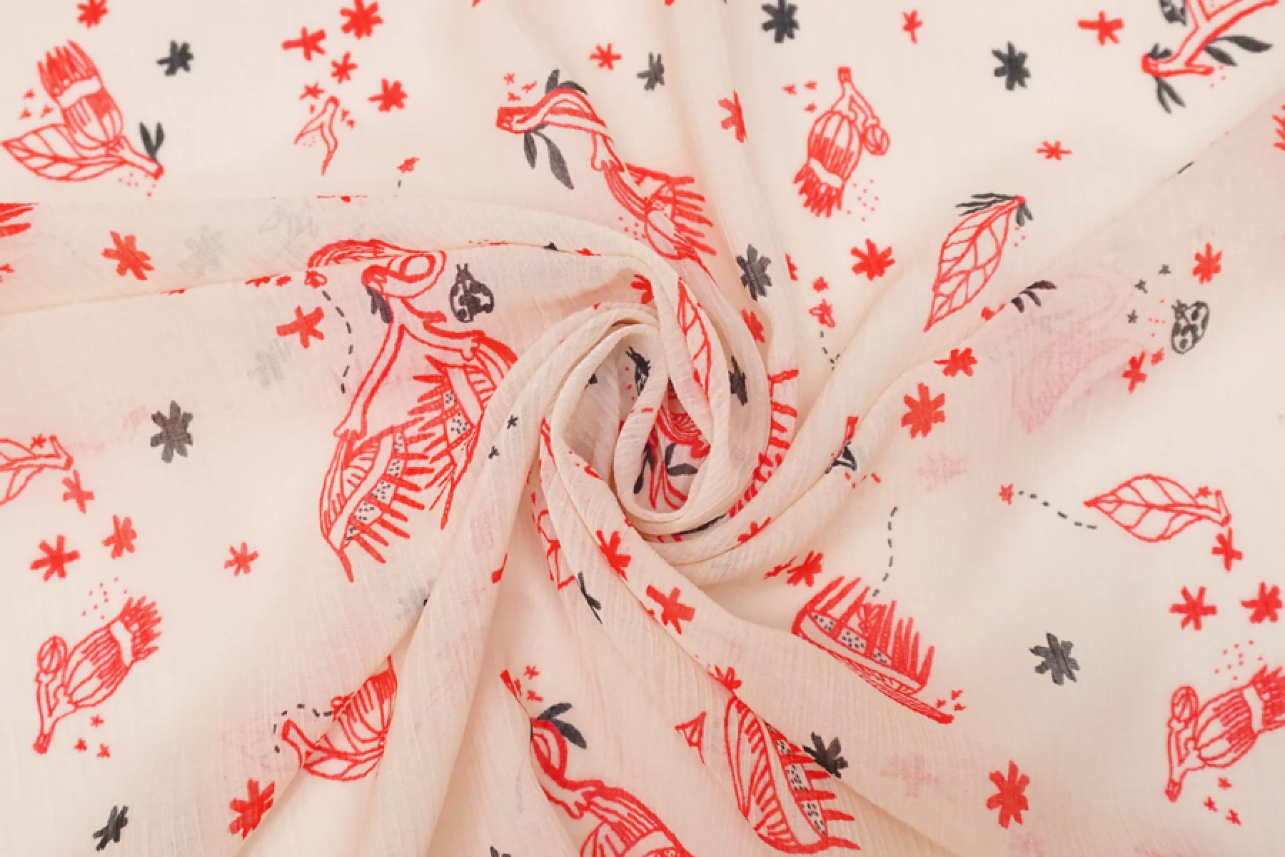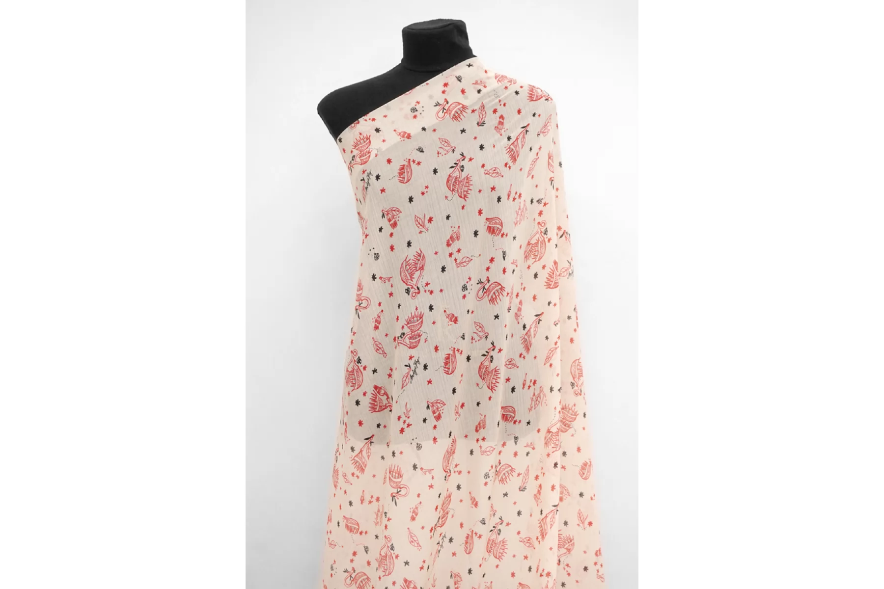 Шикарный жатый шелк с хлопком (похож на креш-шифон), от Aniye By, стилизованный цветочный принт на молочно-бежевом фоне. Тактильно очень мягкий, воздушный, легкий гладкий и приятный, ощущается шелк. Тянется, не мнется. Просвечивает. Форму не держит. Отлично подойдет на свободные рубашки, блузки, многослойные платья или юбки. Уход деликатный, шьем тонкими иглами.